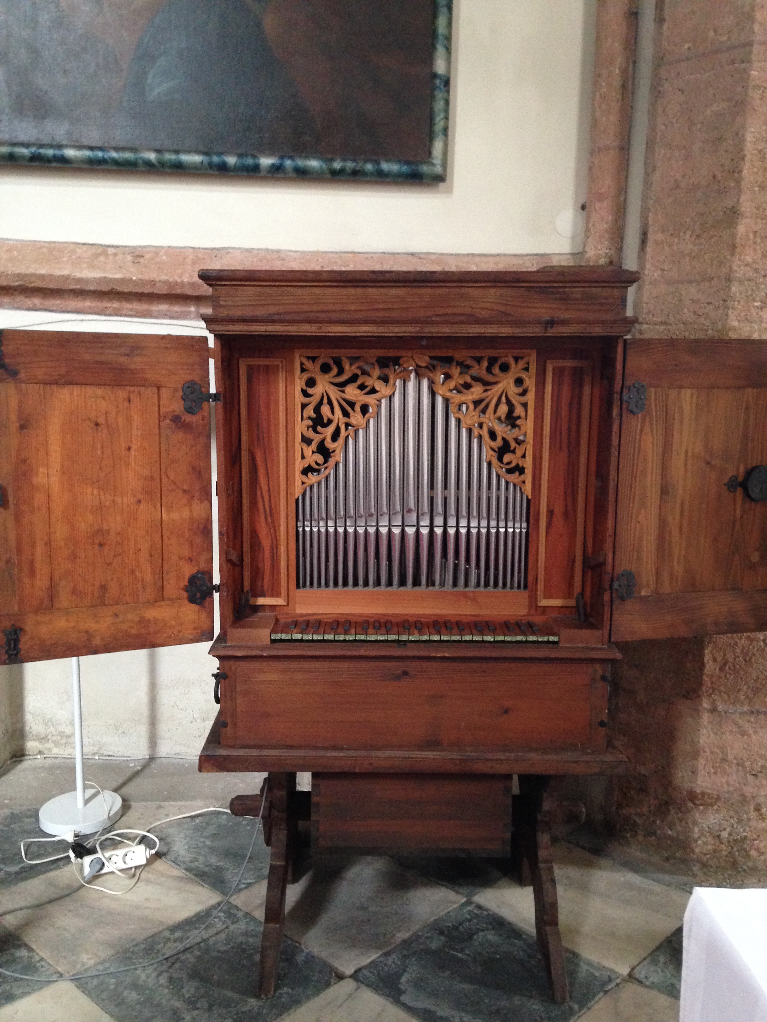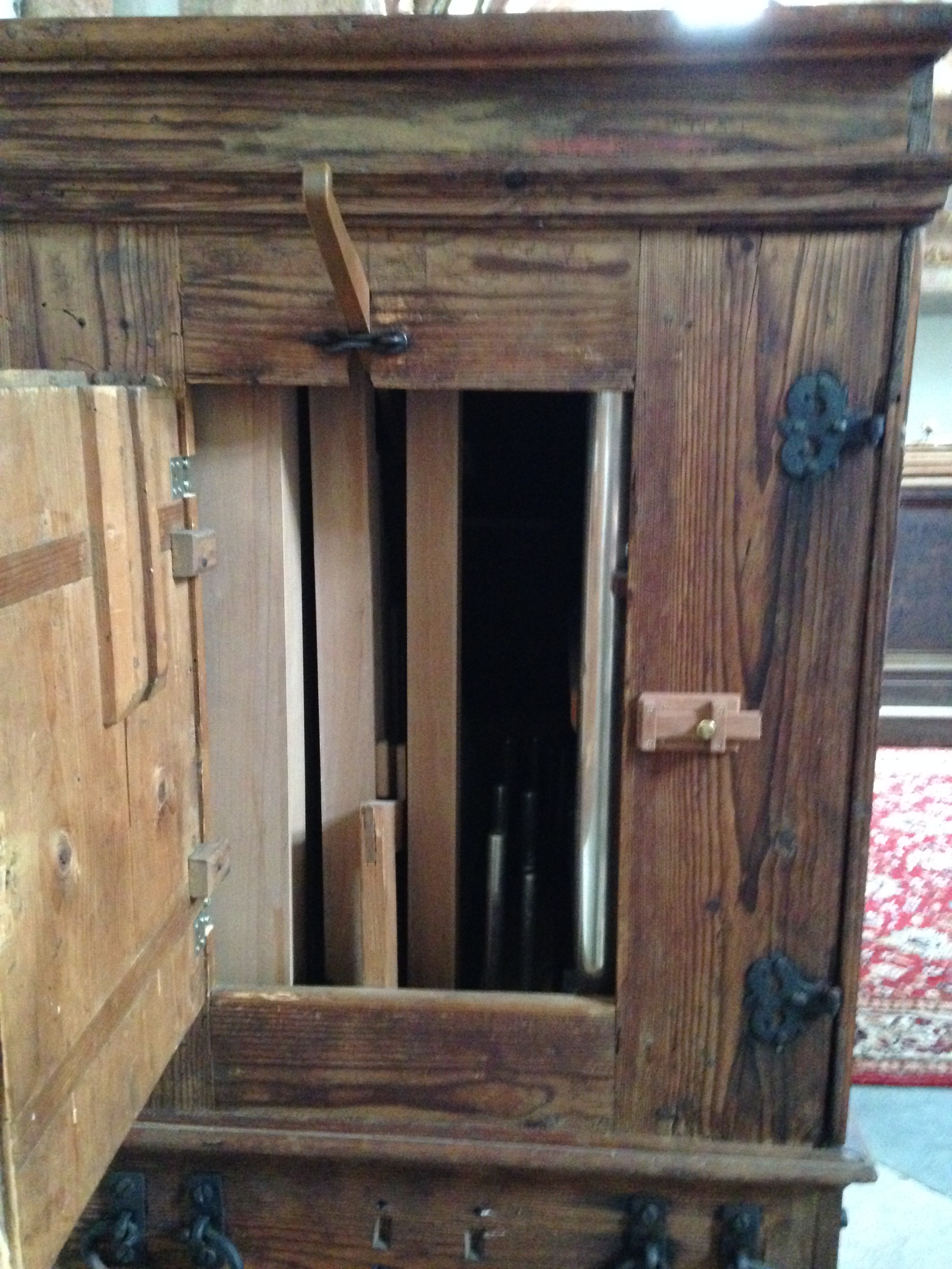 Lag wohl schon seit vielen Jahrzehnten auf dem Dachboden des Pfarrhauses und war als Orgel kaum mehr zu erkenne. Eine einzige Pfeife war noch vorhanden: das a' der Mixtur I 1/2'. Auf Grund dieser einen Pfeife war es nun möglich, die Mensuren und die Stimmtonhöhe der Orgel zu rekonstruieren.