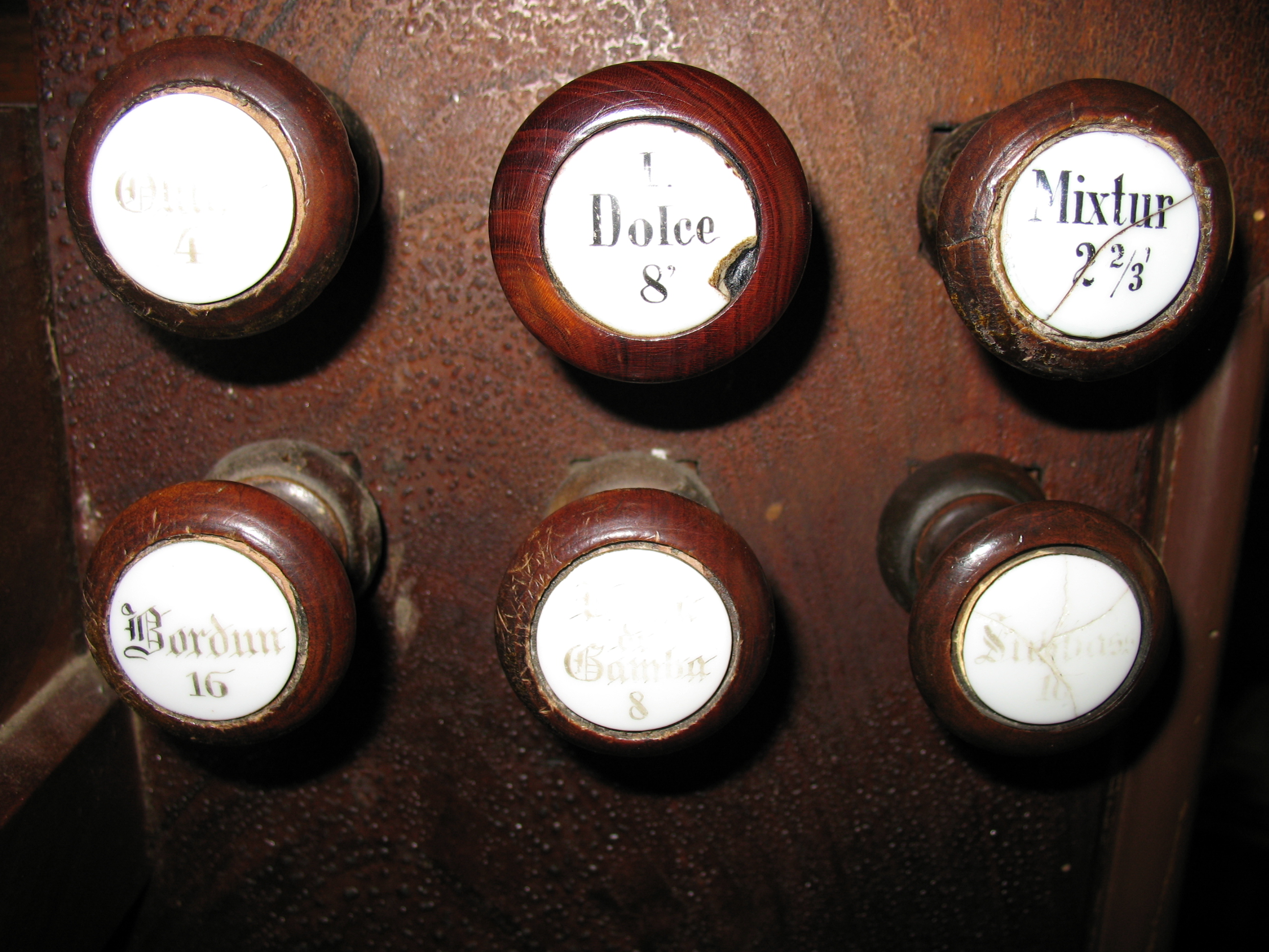 Dolce 8', Viola di Gamba 8', Oktav 4', Bordun 16', Mixtur 2 2/3', Subbass 16'