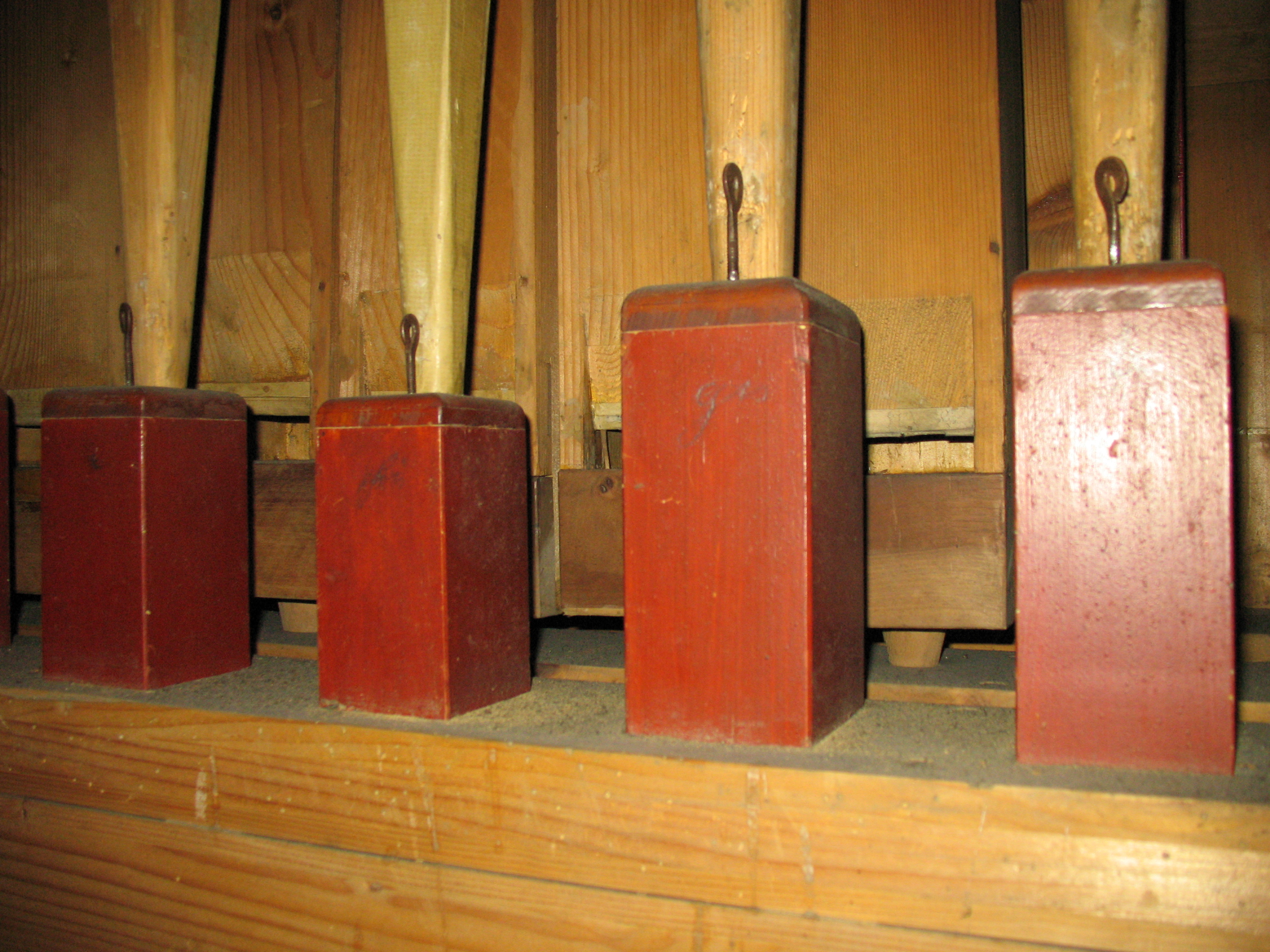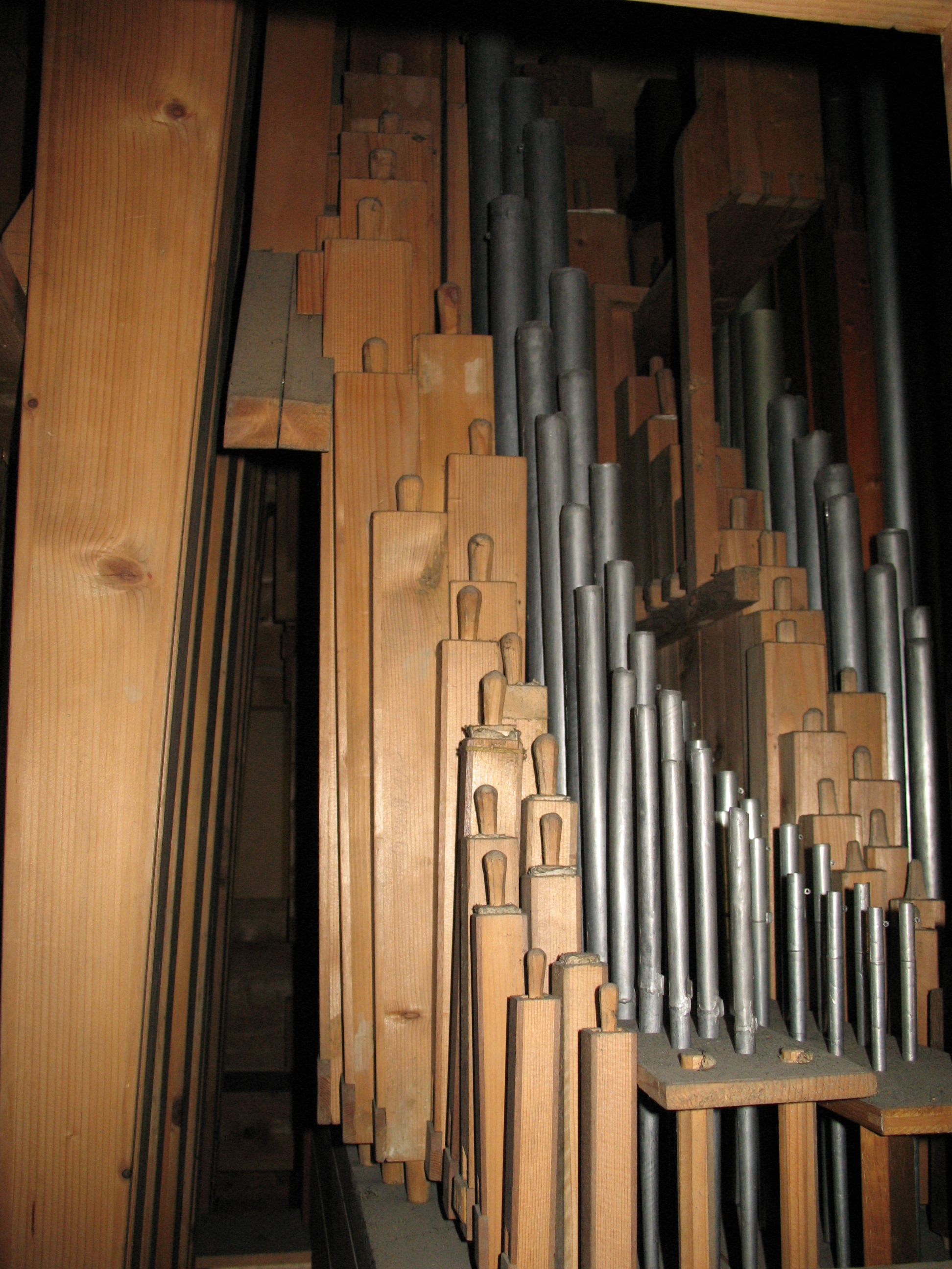 Windlade: eigene Ventile für angehängtes Pedal in der Manuallade; gekennzeichnet durch am unteren Ende umgebogene Führungsstifte; die restlichen Führungsstifte sind gerade; Ventillänge ca. 30 cm.