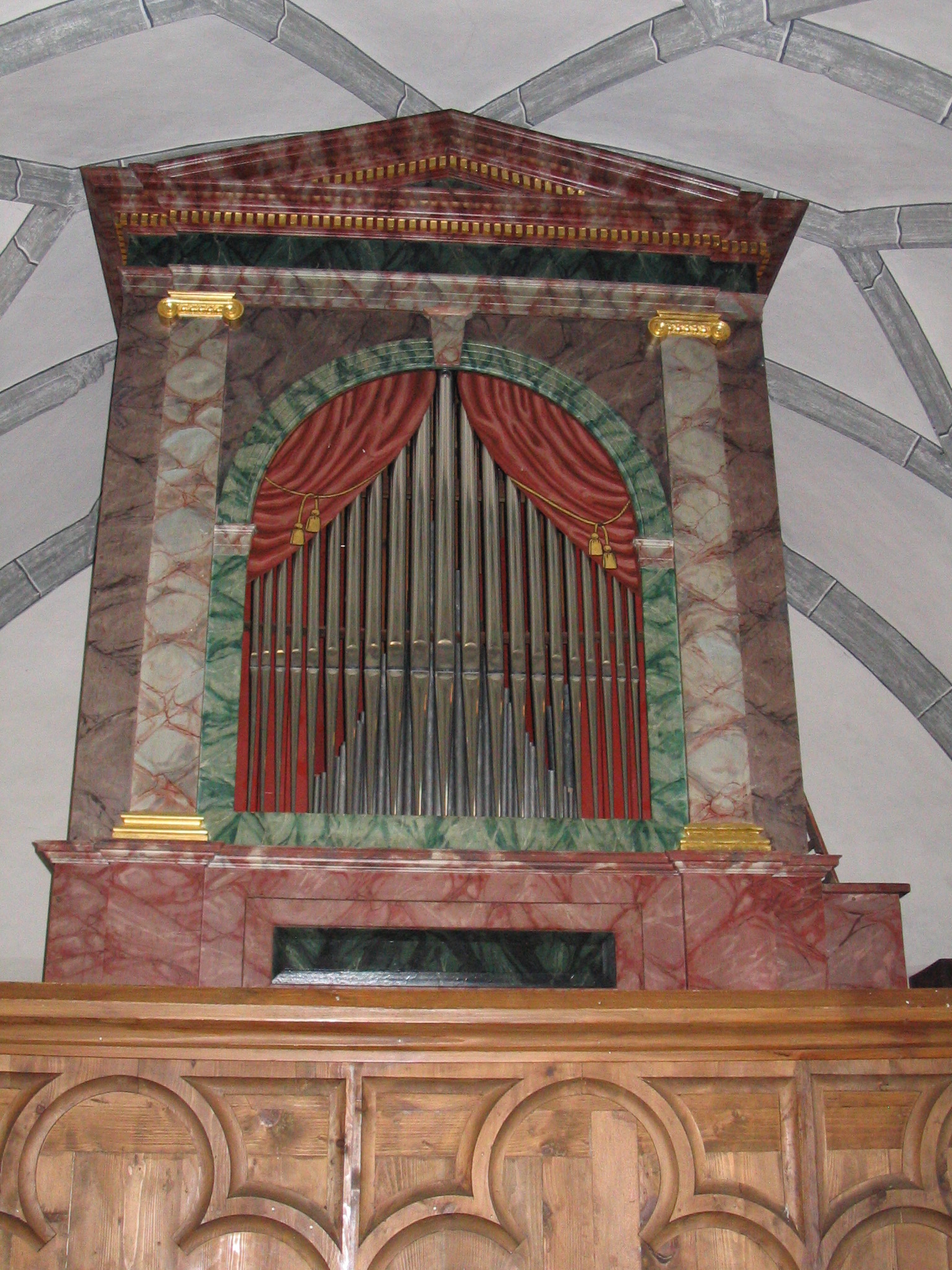 Principal 8', Gamba 8', Super Octav 2', Mixtur 1 1/3', Octav 4', Flöte 4', Flauto Dolce 8'
