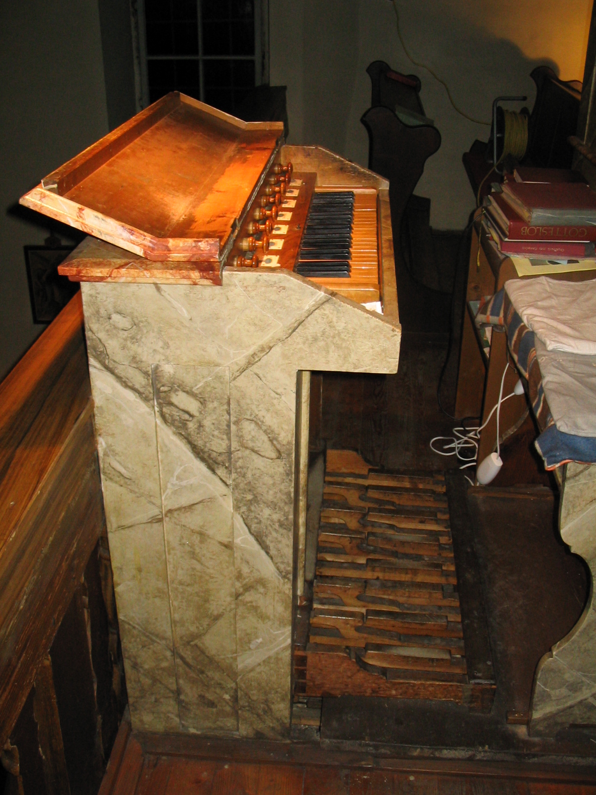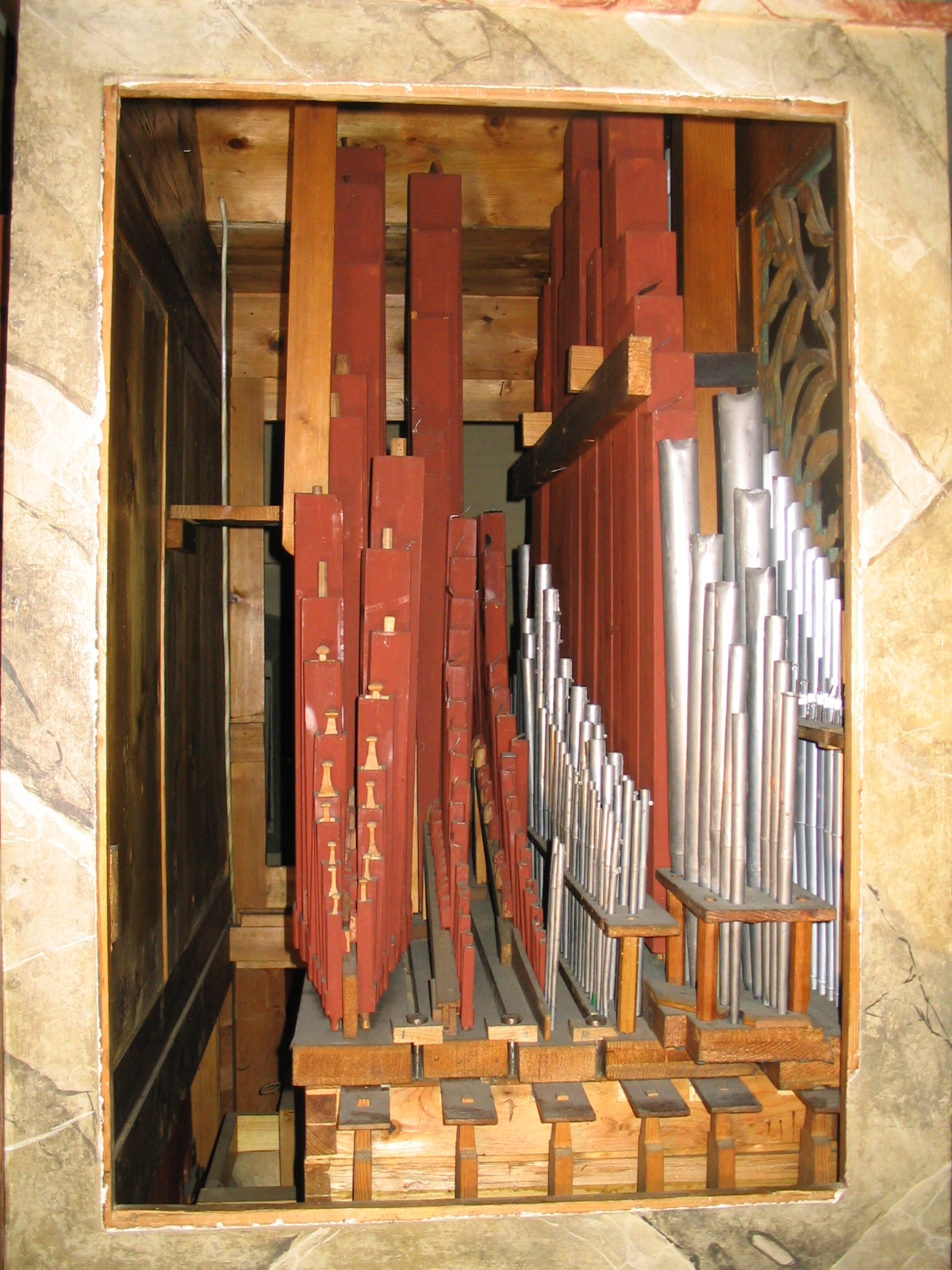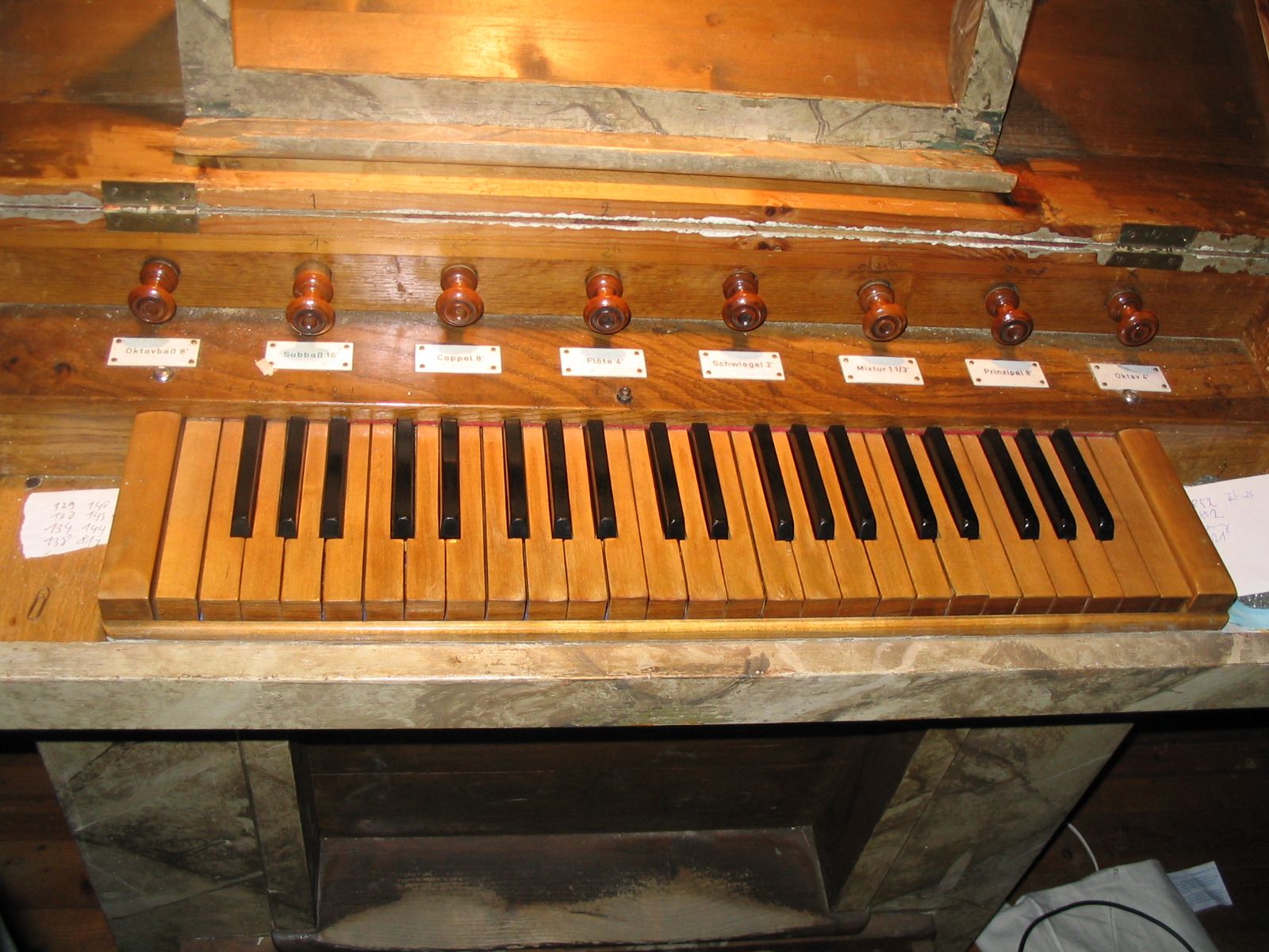 Oktav 4', Prinzipal 8', Mixtur 1 1/3', Schwiegel 2', Flöte 4', Coppel 8'