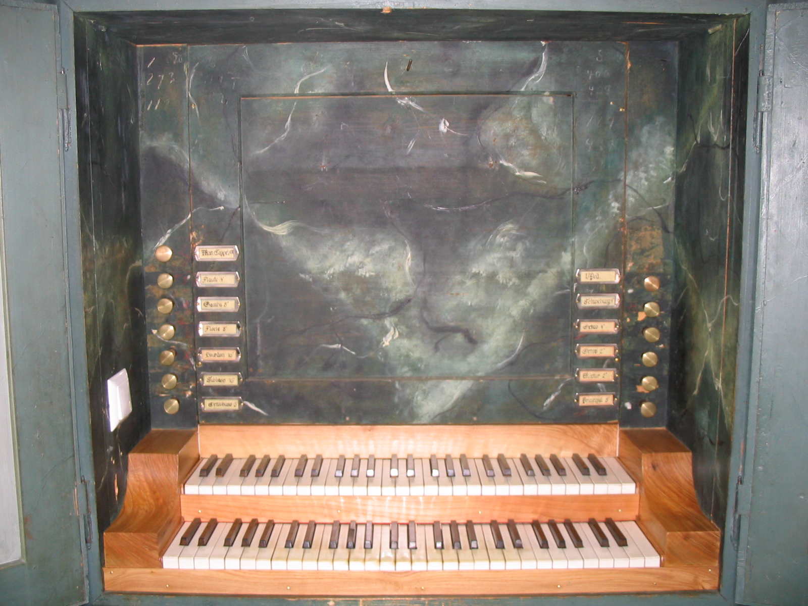 Principal 8', Mixtur, Octav 2', Octav 4', Flauto 4', Gamba 8', Floete 4', Schwebung 4', Bourdon 16'
