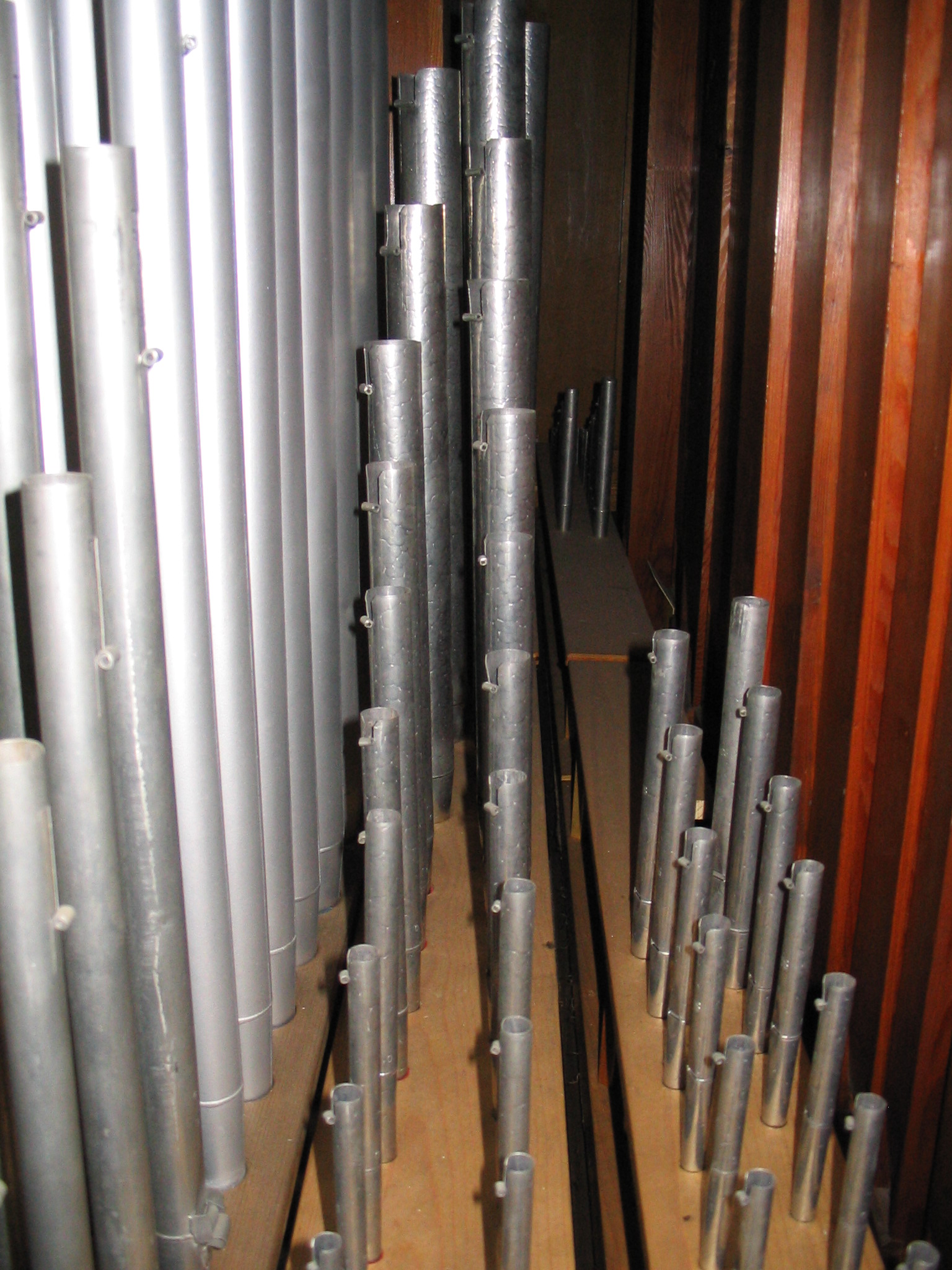 Ein grosses Mittelfeld mit 29 Pfeifen von innen (größte Pfeife) nach aussen hin verlaufend