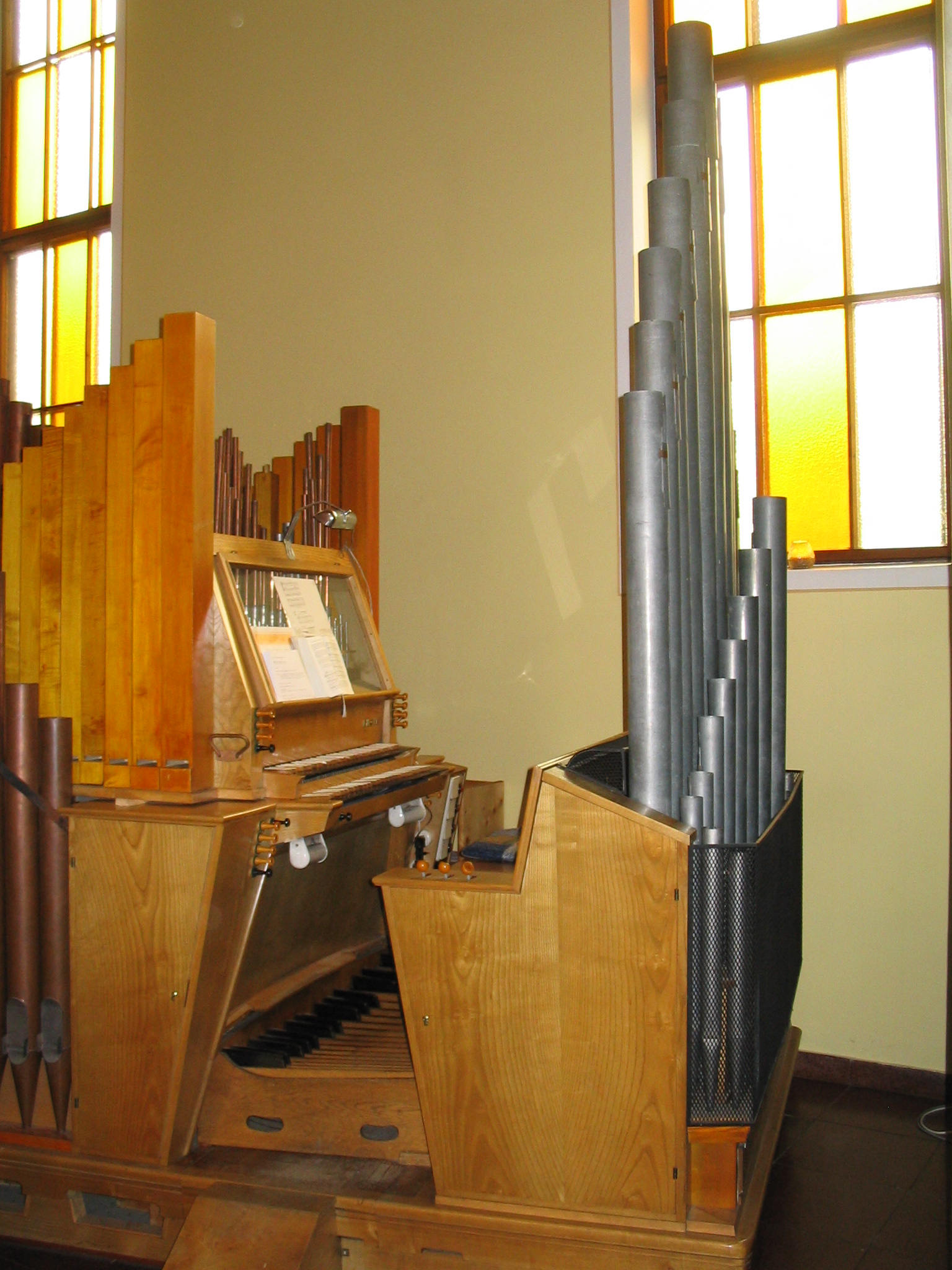 Diese Orgel ist eine "Serienorgel" der Firma Rieger von 1955, Modell 21/II.
