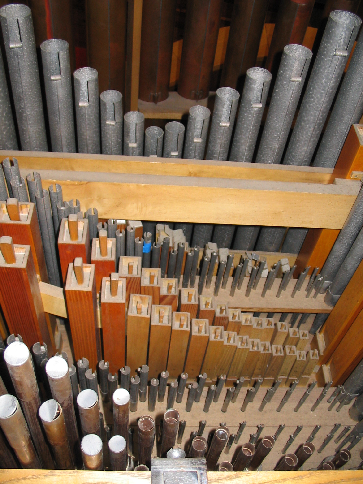 Einige Pfeifen sind waagrecht unter dem Spieltisch angebracht.