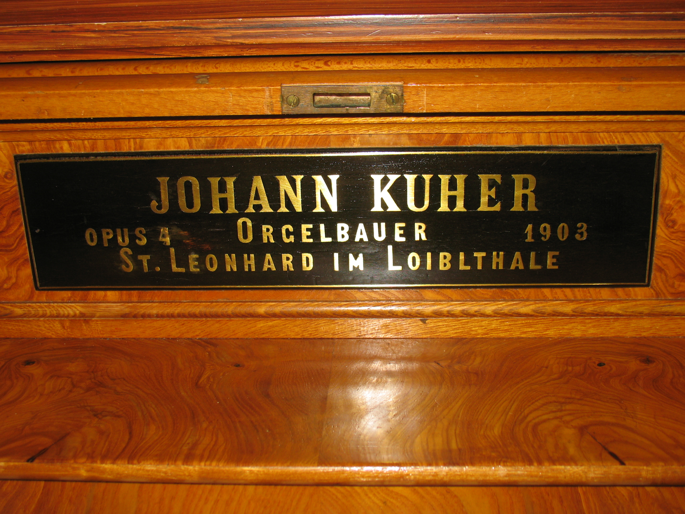 Die Orgel wurde im Jahr 1903 von Johann Kuher als Opus 4 erbaut.