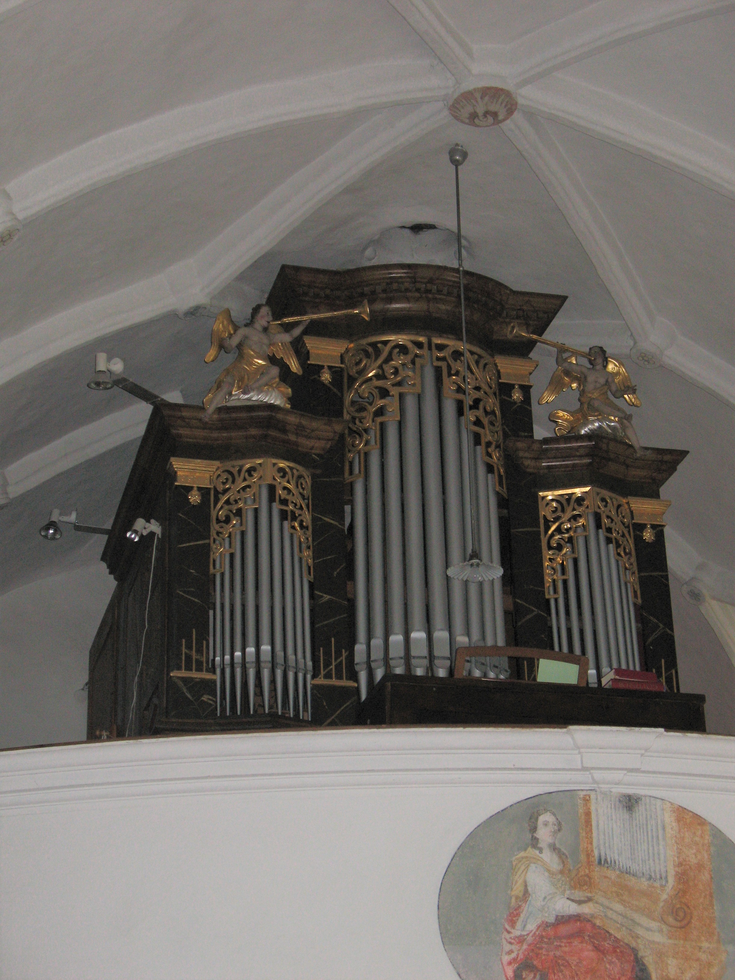 Die Orgel wurde im Jahre 1962 von der Firma Max Dreher aus Salzburg unter Verwendung des Gehäuses der alten Orgel gebaut. Links seitlich der beiden Manuale befindet sich ein Schild mit der Aufschrift: "Max Dreher Salzburg"