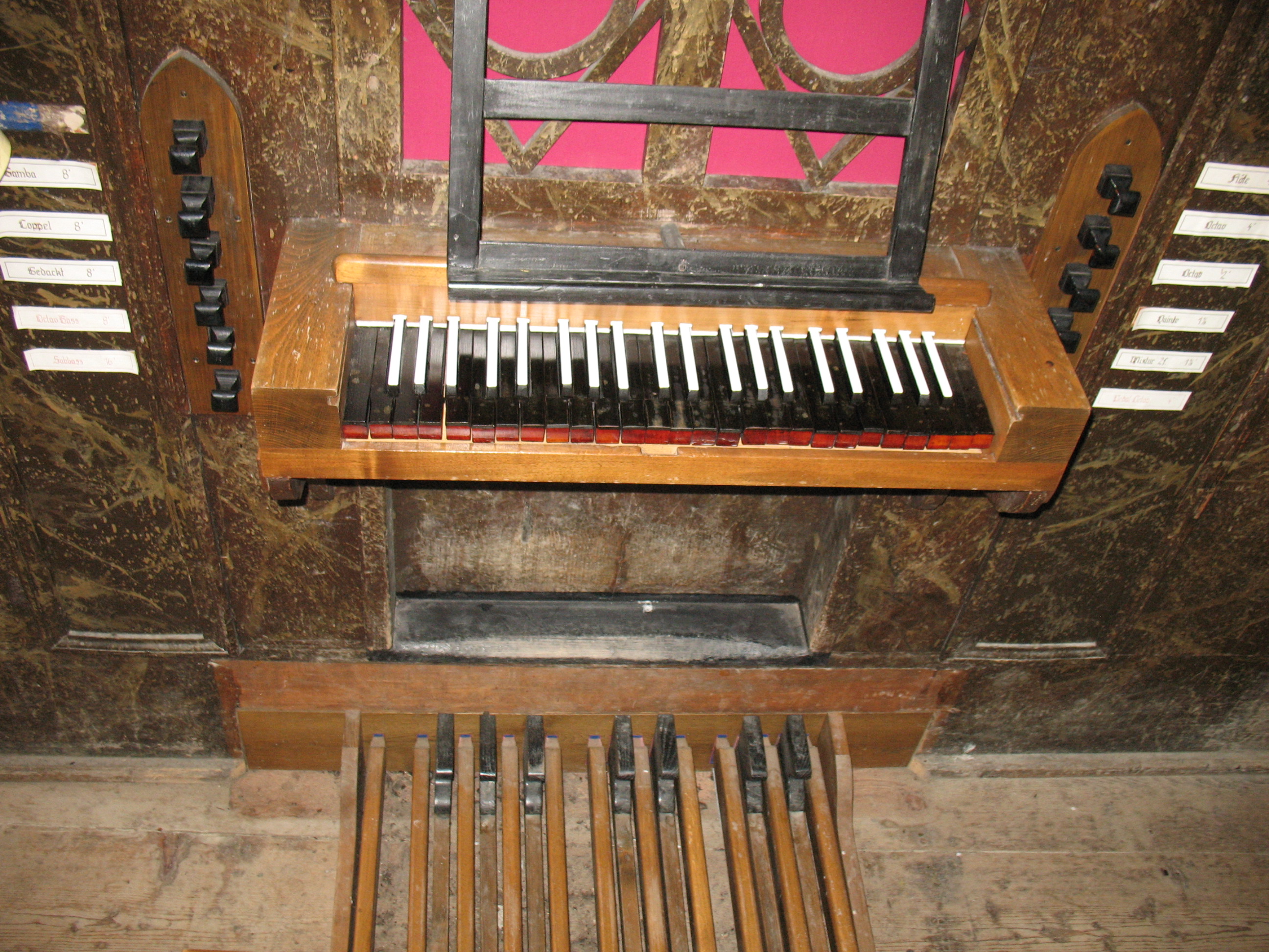 Traktur ist mechanisch, Tonkanzellenschleiflade; die Abstrakten aus Holz.
