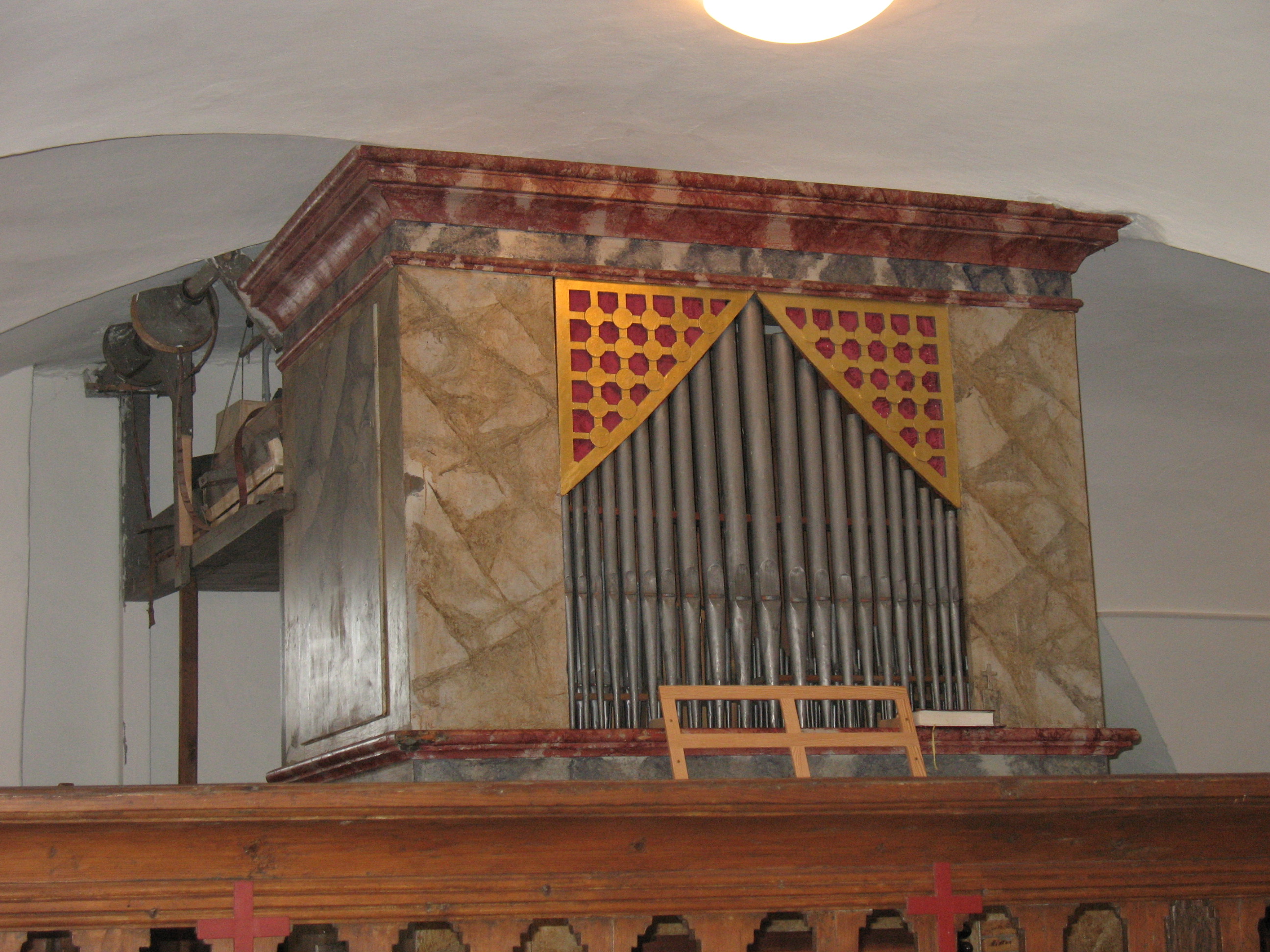 Anton Müller, Klagenfurt, 1827. Im Manualwindkasten befindet sich ein Papierstreifen mit der Signatur des Orgelbauers (mit dunkelbrauner Tinte geschrieben): "Verfertigt von Anton Müller Sohn des Nicolaus Müller Orgl und Instrumentenmacher zu Klagenfurt anno MCCCCXXVII"