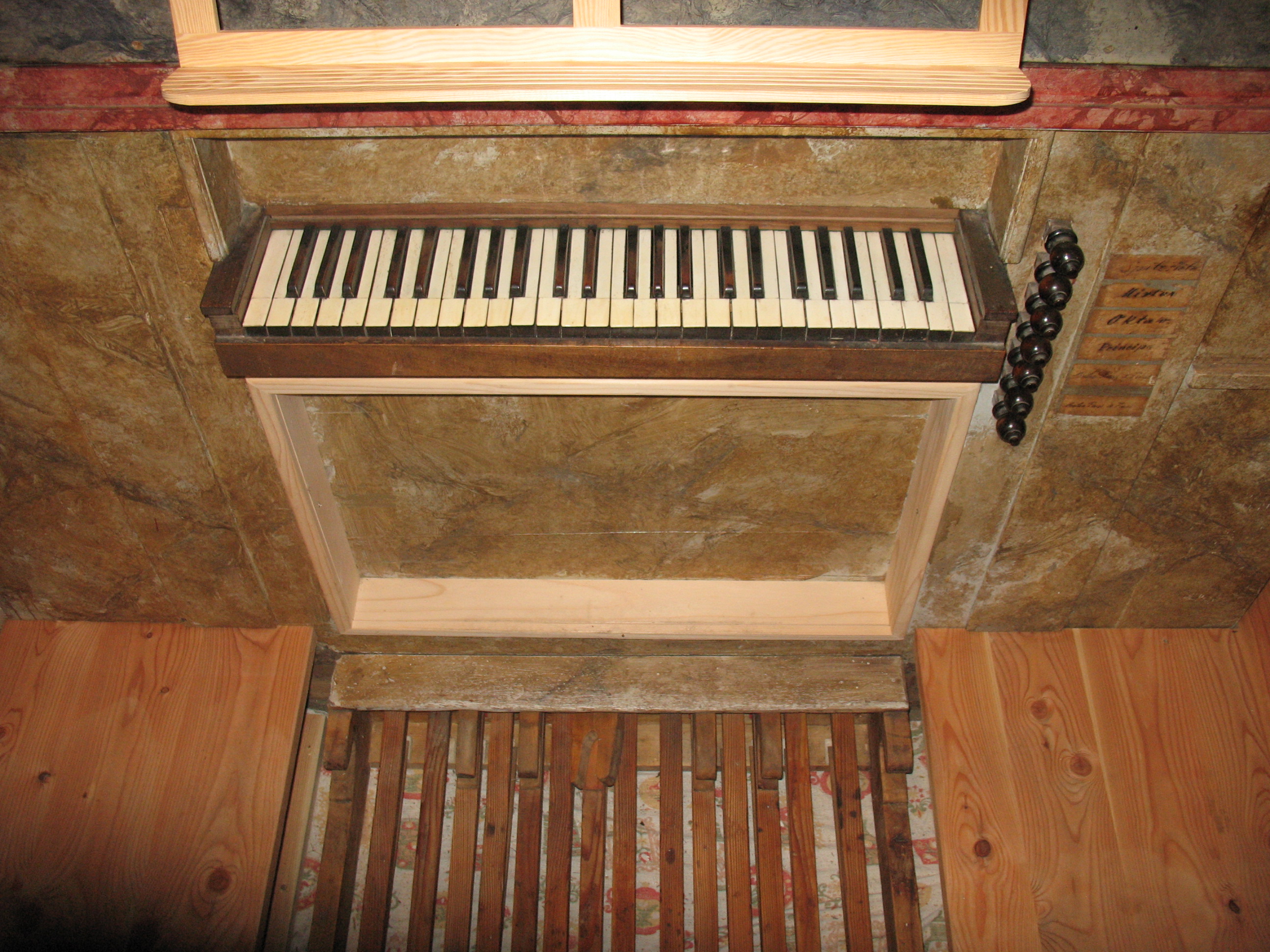Die Traktur ist mechanisch; die Abstrakten sind in Holz ausgeführt; Tonkanzellenschleiflade, Windkasten und Windkastenspünde (2) aus Fichte; Federn und Abzugdrähte und Führungsstifte aus Messing.