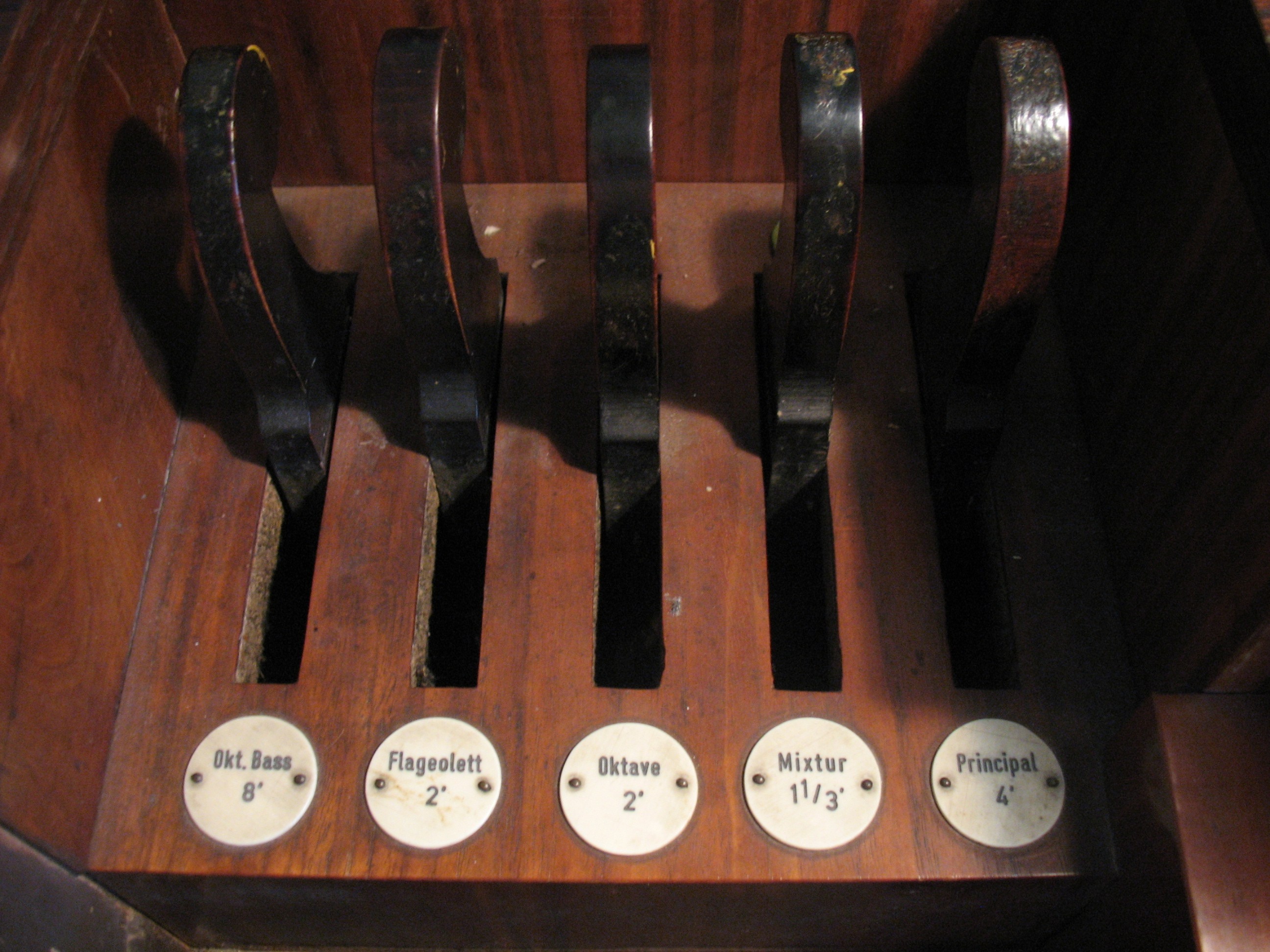 links: Okt. Bass 8', Flageolett 2', Oktave 2', Mixtur 1 1/3', Principal 4'