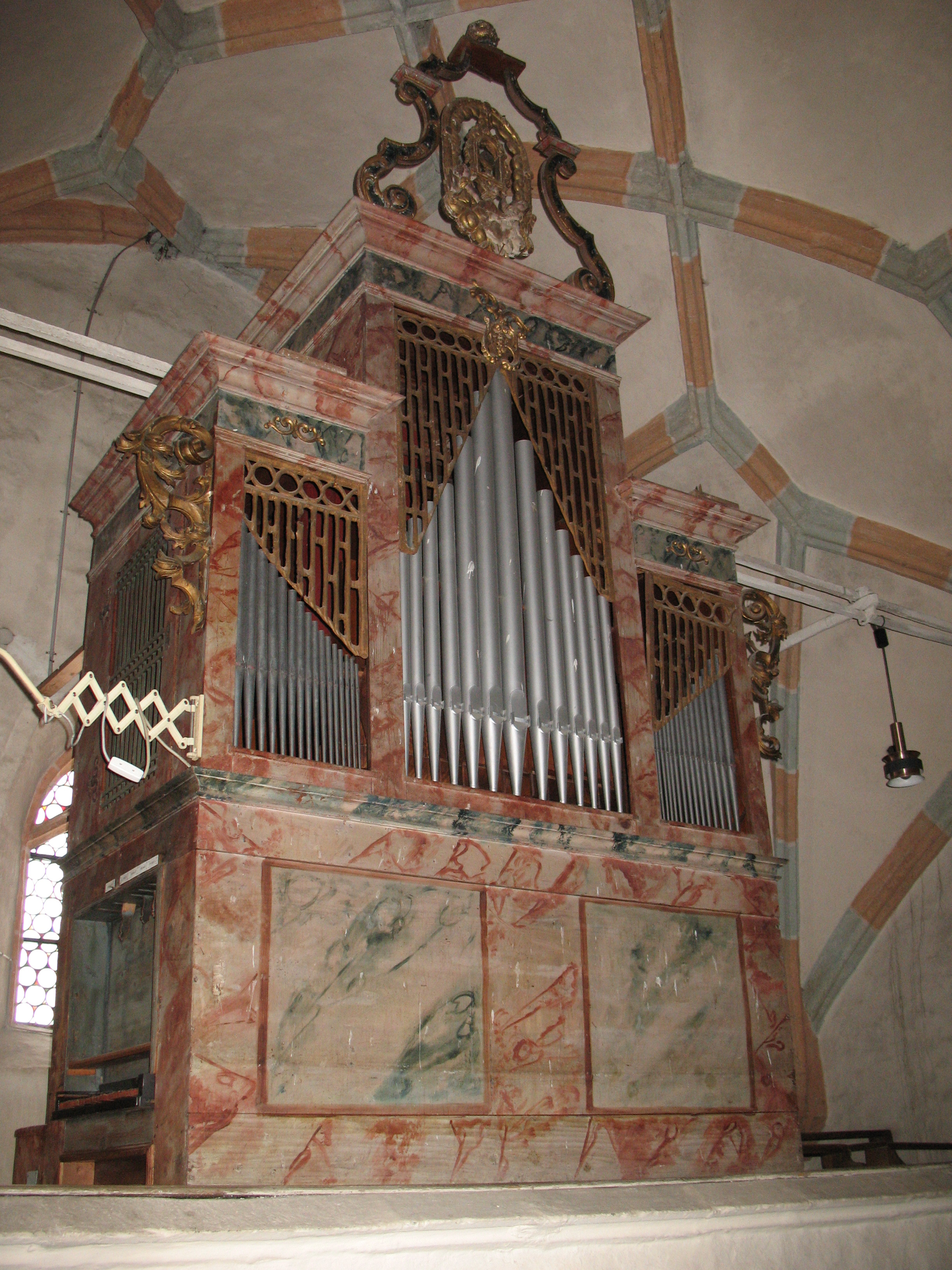 Orgel hat ähnliche Verzierungen wie die Orgel von St. Jakob (??), die von Grafenauer stammt.