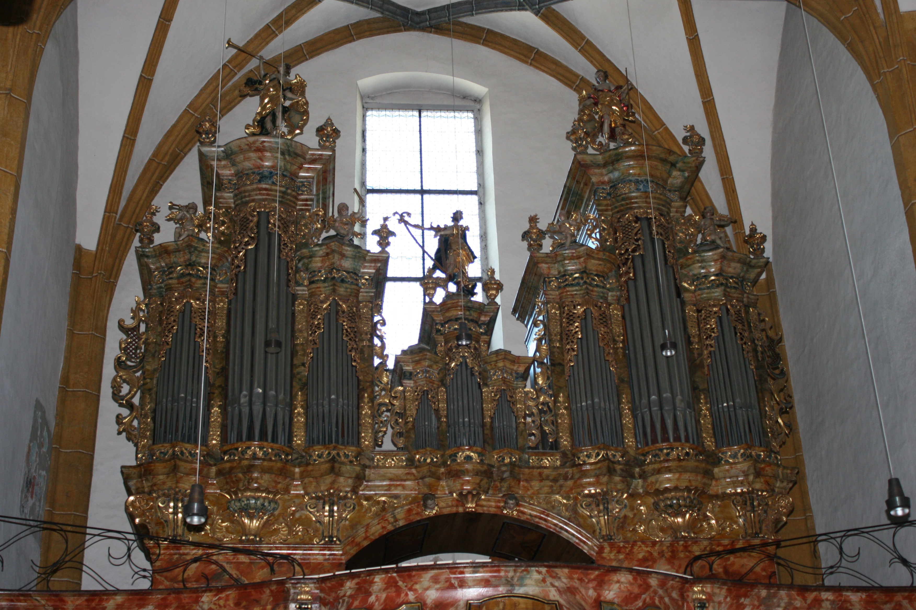 Die Orgel wurde im Jahre 1743 von Cyriacus Werner erbaut. Im Gehäuse befindet sich die Inschrift: "Diese Orgel hat machen lassen der hochbiedrigste in Gott geistliche Herr Matthias Wallbraun, dermahlen wohl meritirter Stattpfarrer und hochfürstlicher Consistory-Director zu Straßburg. Durch Johann Cyriacus Werner, Stattorgelmacher in der landesfürstlichen Hautstatt Grätz in Steiermarkh. 1743 den 16. July"
