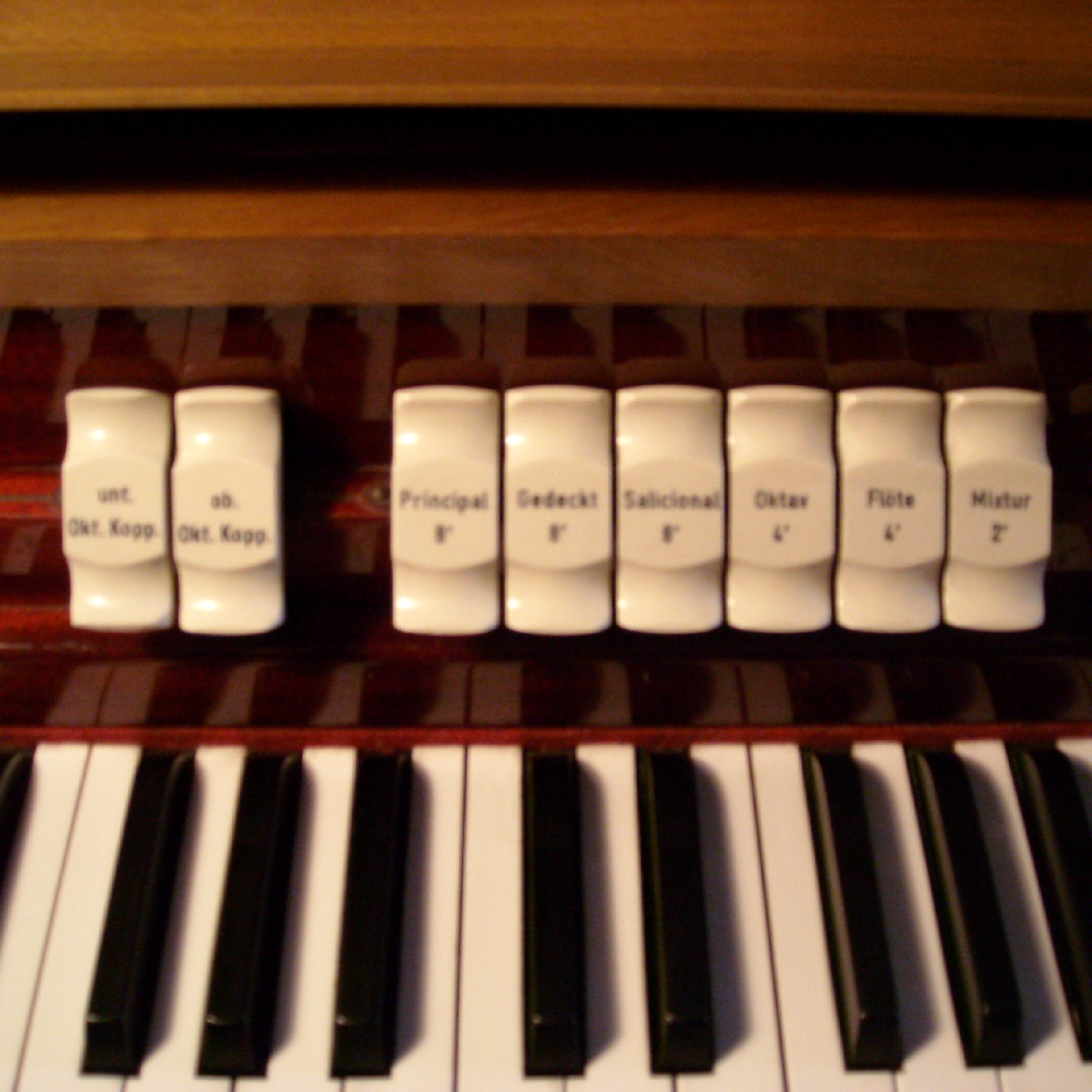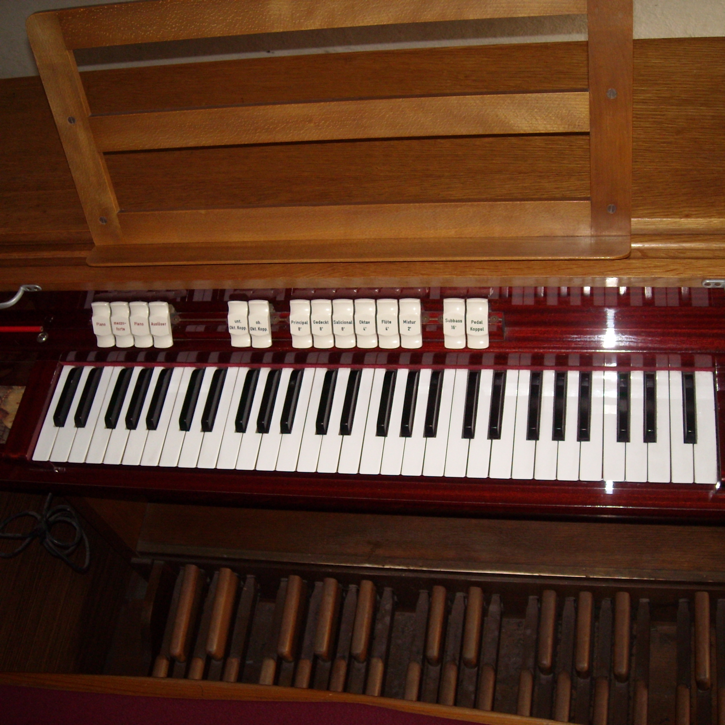 | Spielhilfen | alle Spielhilfen sind als Wippen zu schalten Piano, Mezzoforte und Pleno als feste Kombination ausgeführt |