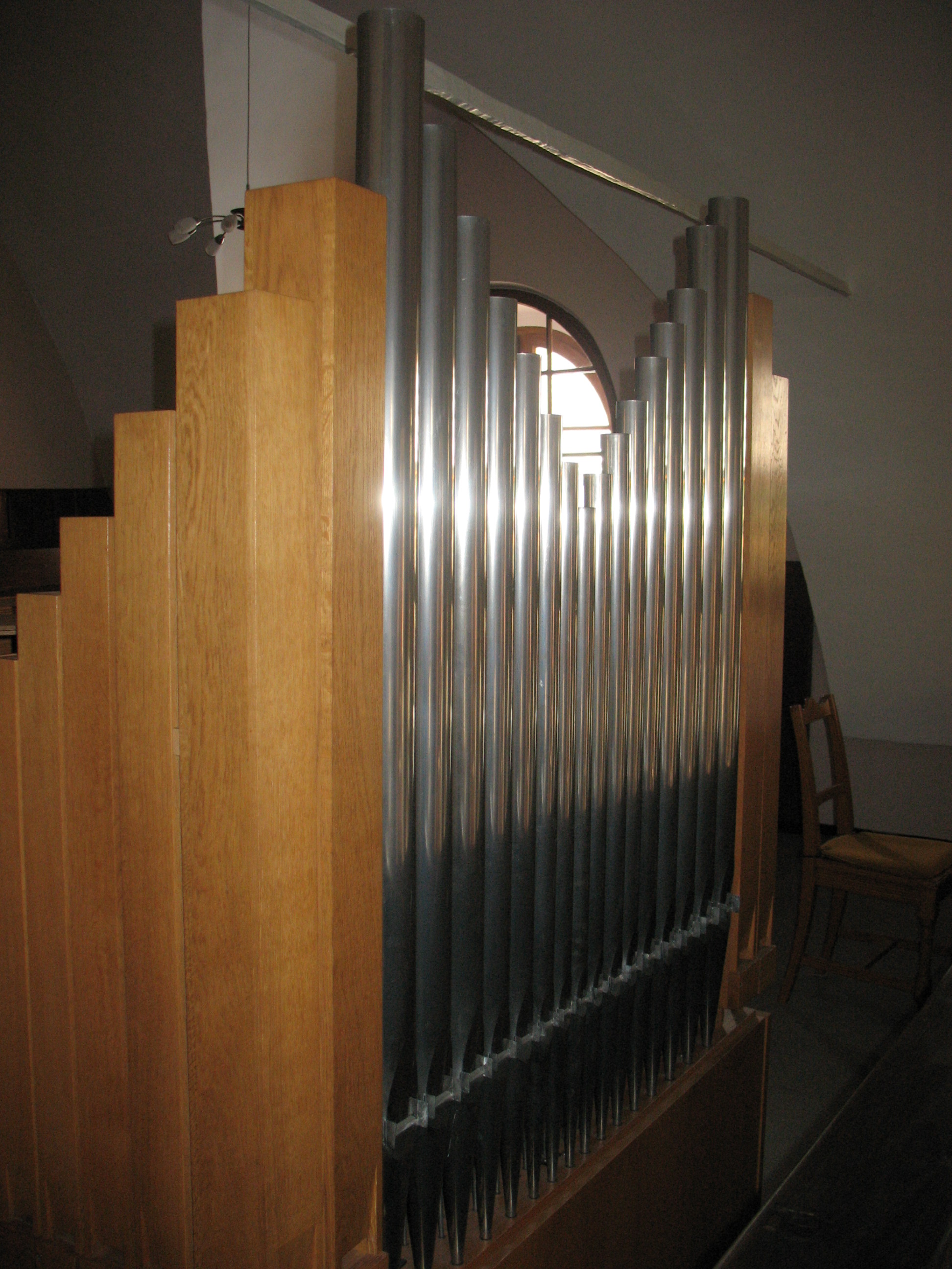 16 (Prinzipal 4') + 2 (Holzgedackt 8'); Pfeifenfeld flach.