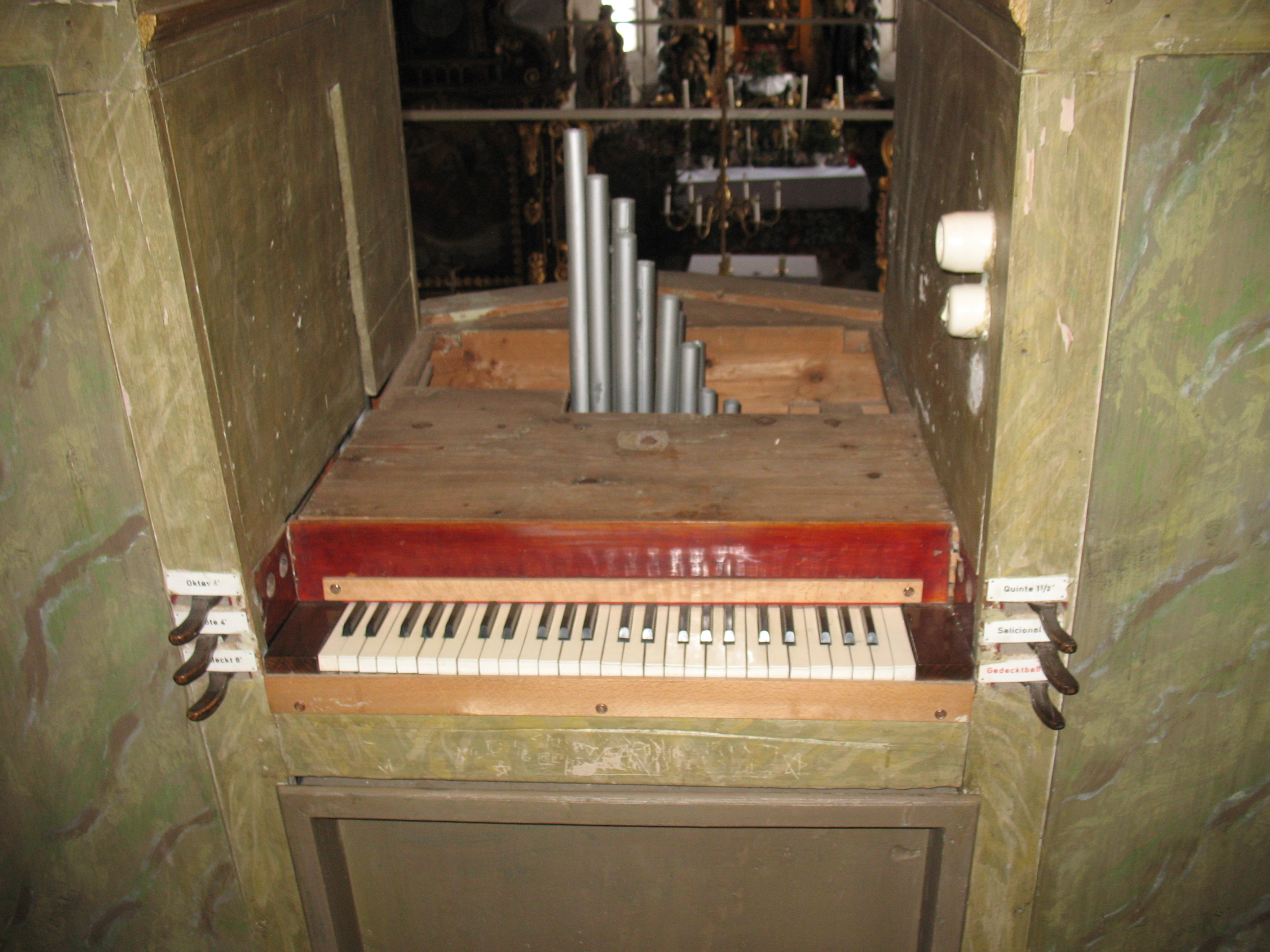 Nicht zum Originalbestand gehören das Register Salicional, die Klaviatur des Manuals samt Klaviaturrahmen und Klaviaturbacken (ursprünglich dürfte auch das Manual mit kurzer Unteroktave gebaut worden sein) und die Registerschilder
