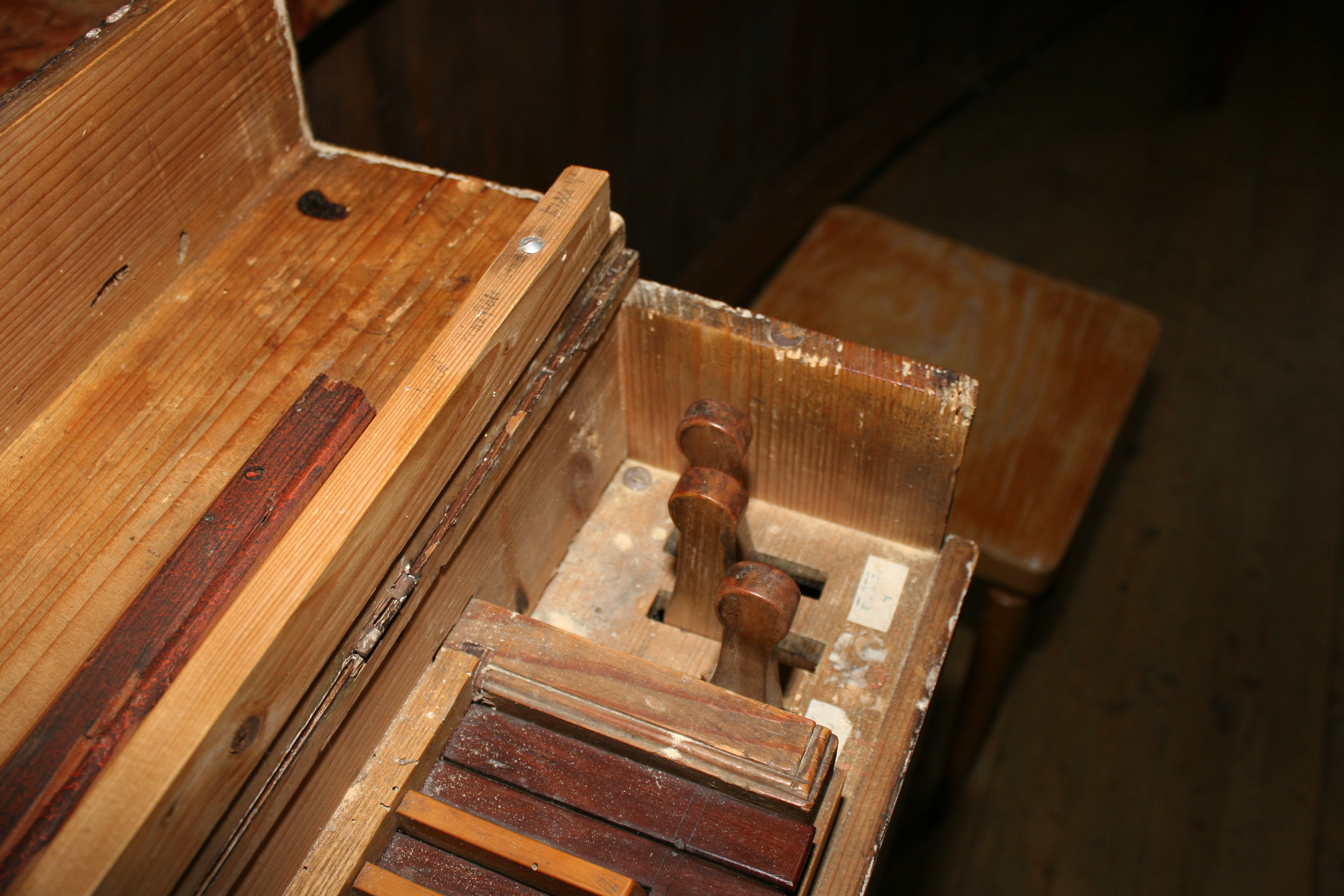 Die Traktur ist mechanisch, die Abstrakten sind aus Holz hergestellt; Tonkanzellenschleiflade, Schiede aus Nadelholz (Fichte); Spünde aus Nuß (?): Kanzellenrahmen aus Obstholz (Birne), gezinkt. Die Lade stammt mit Sicherheit aus einem älteren Instrument.