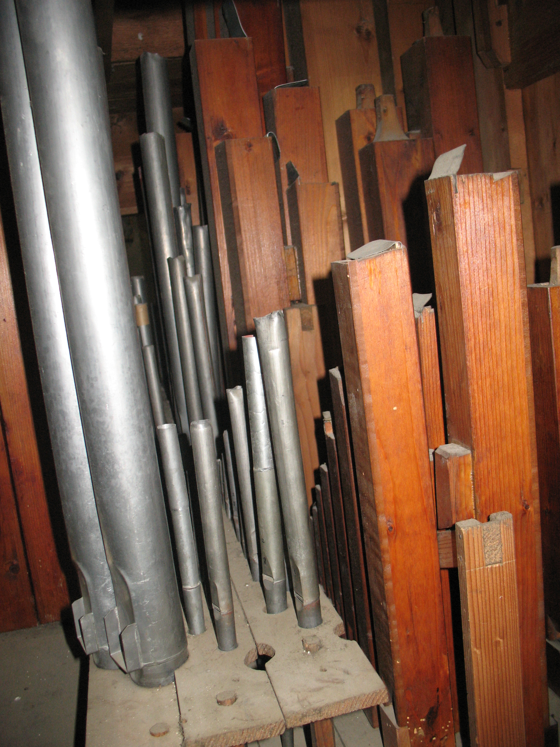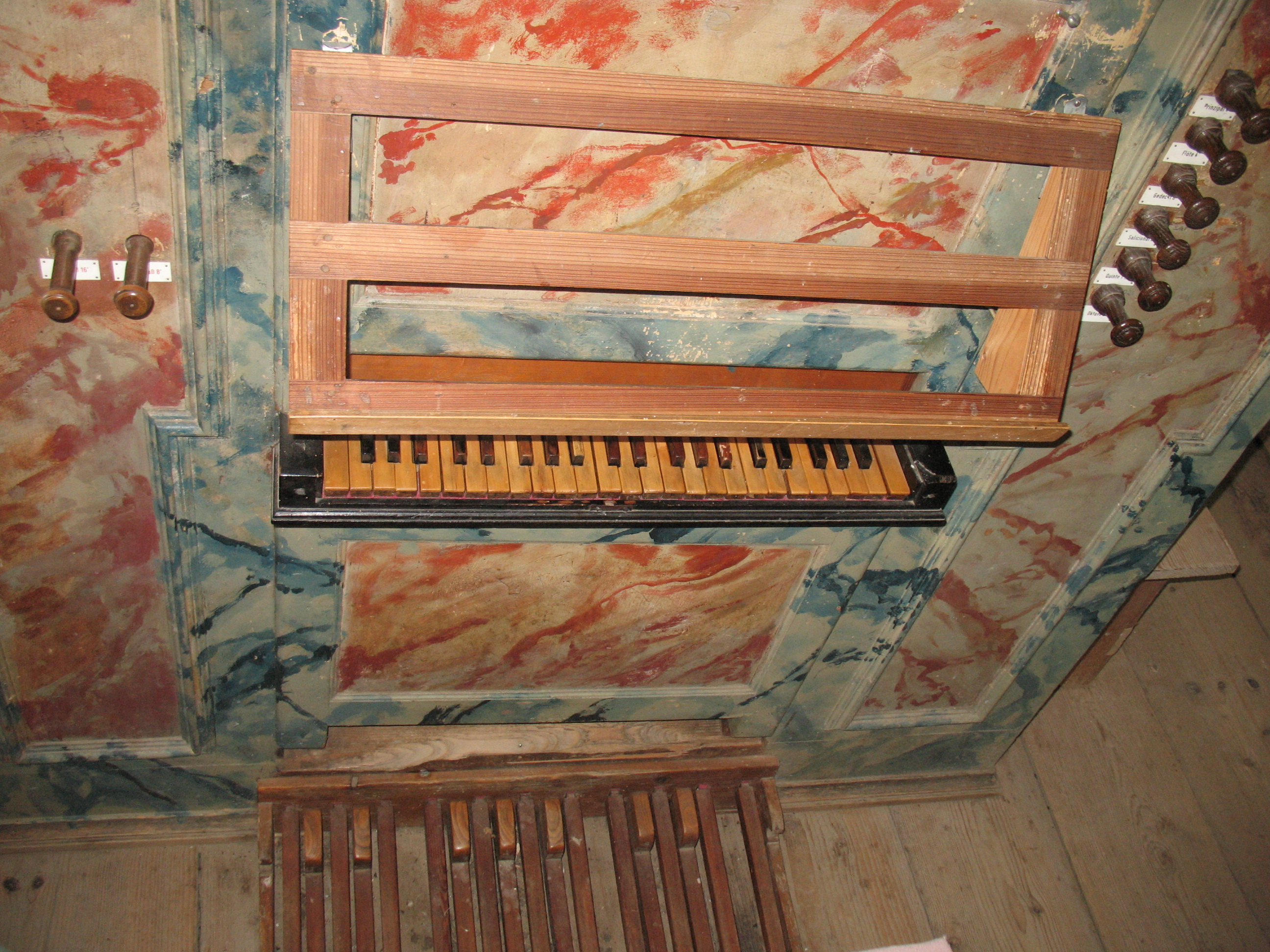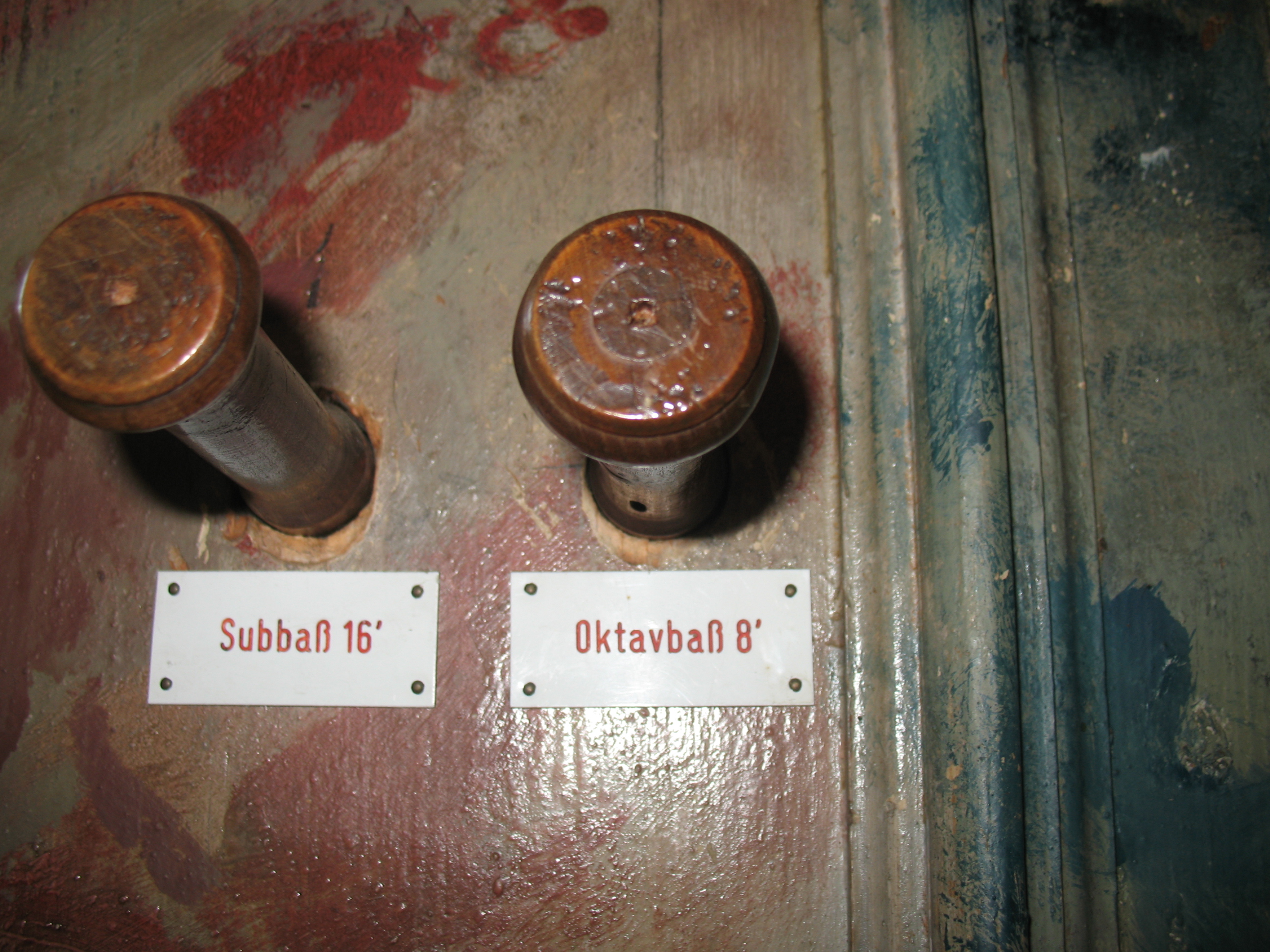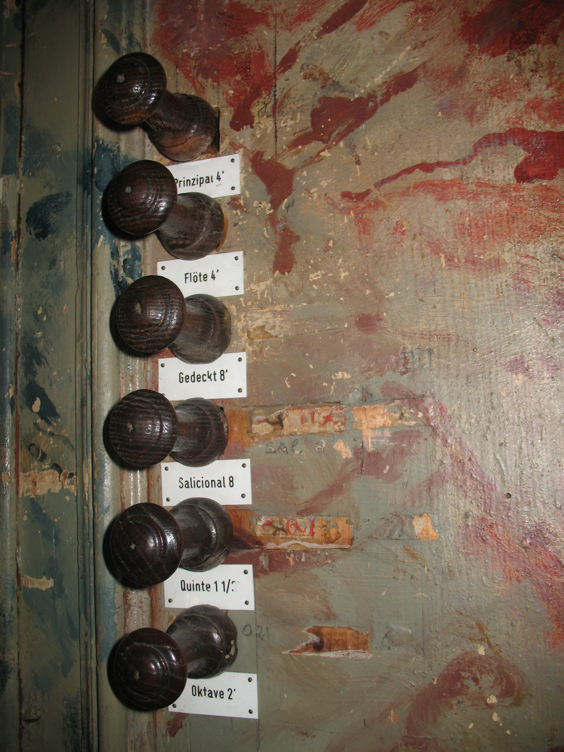 rechts: Prinzipal 4', Flöte 4', Gedeckt 8', Salicional 8' (urspr. Mixtur),