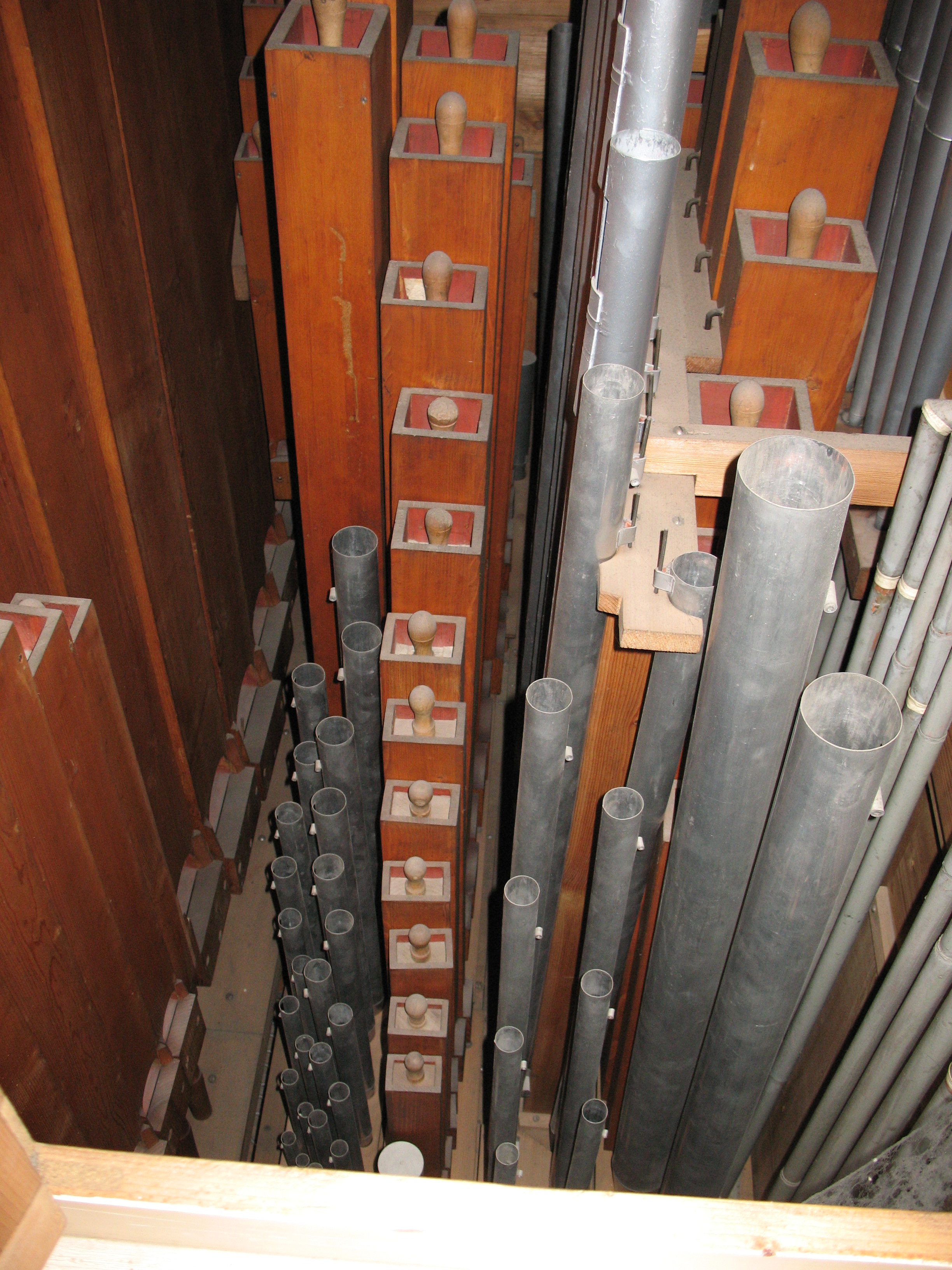 Die Registerwippen sind in einer Reihe über der Klaviatur angebracht.