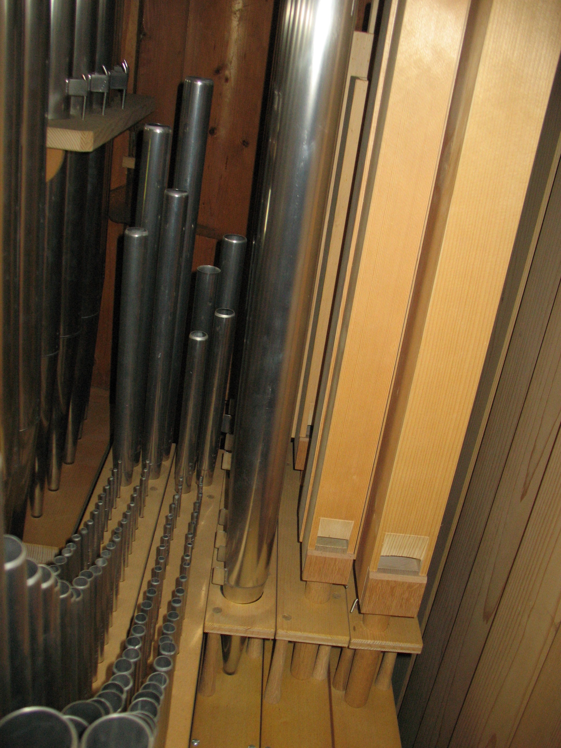 Die Mechanik "hängt". Die Windladen wurden um zwei Töne erweitert.