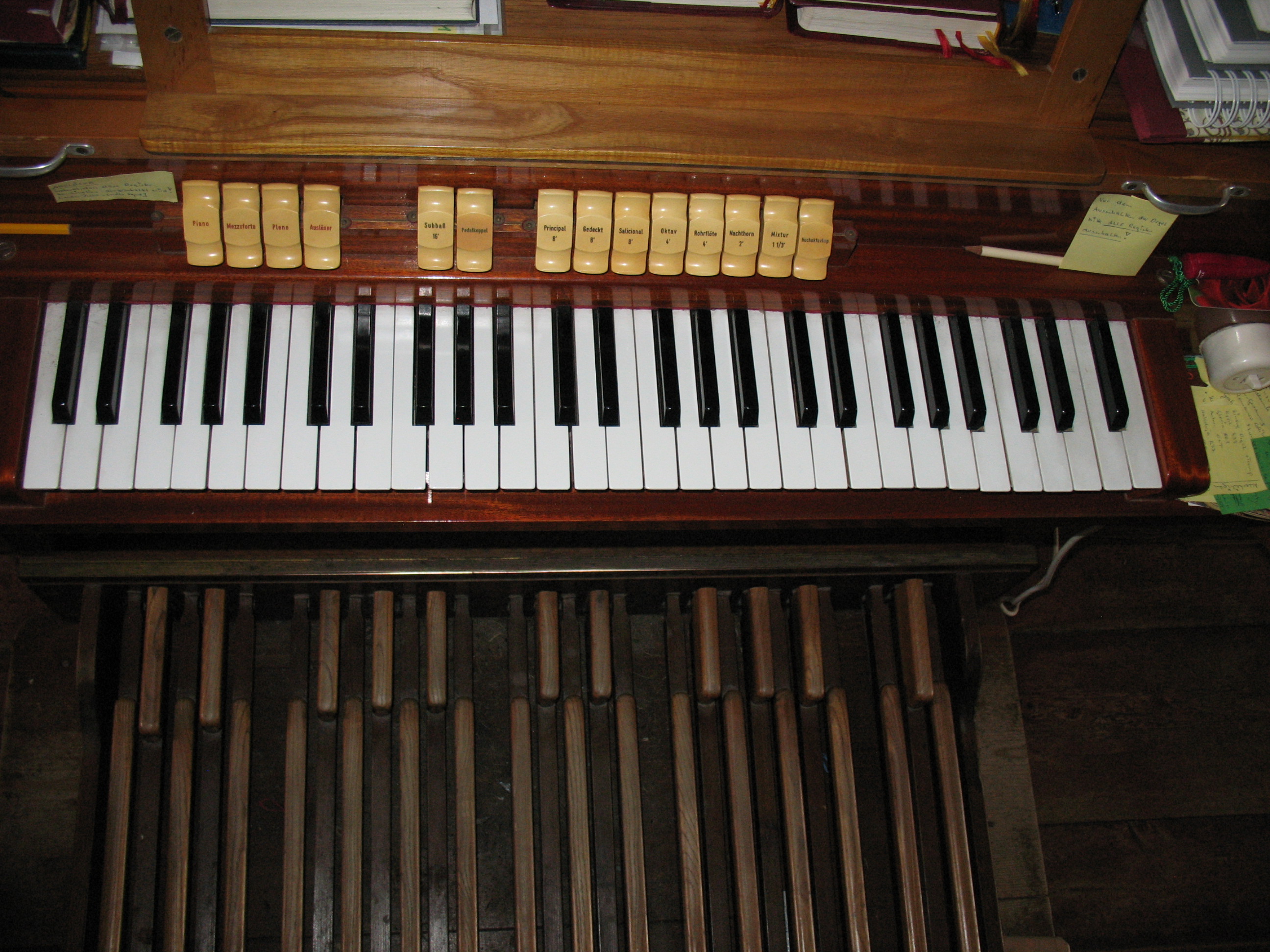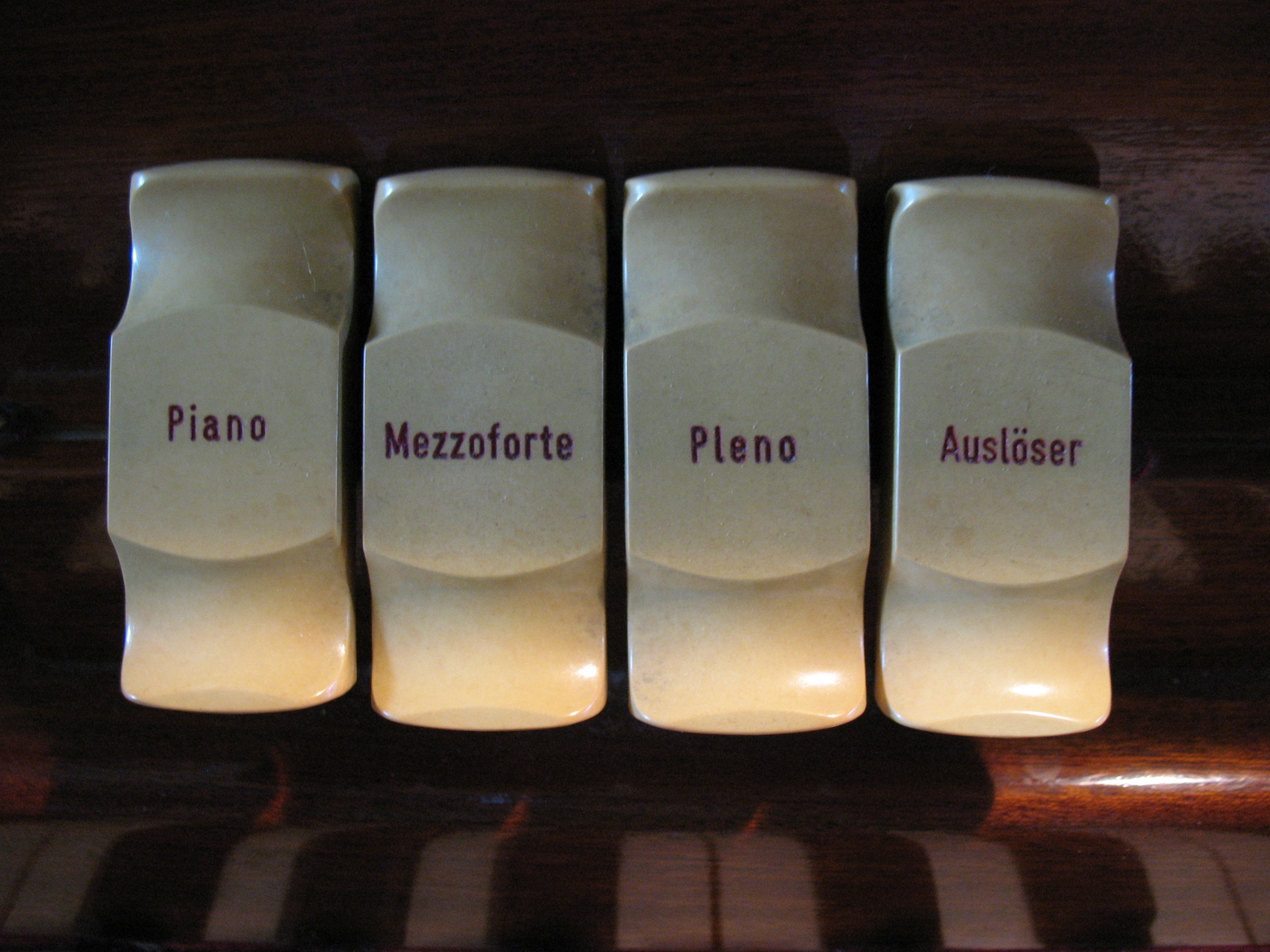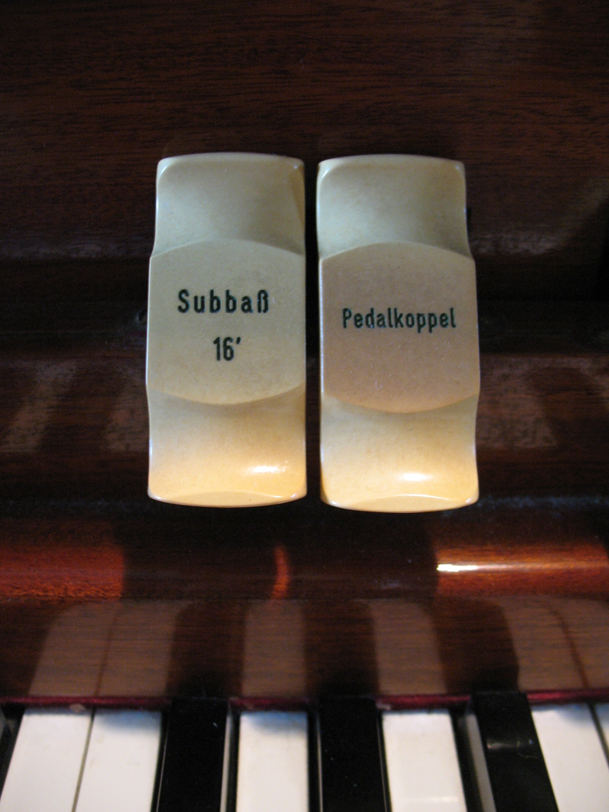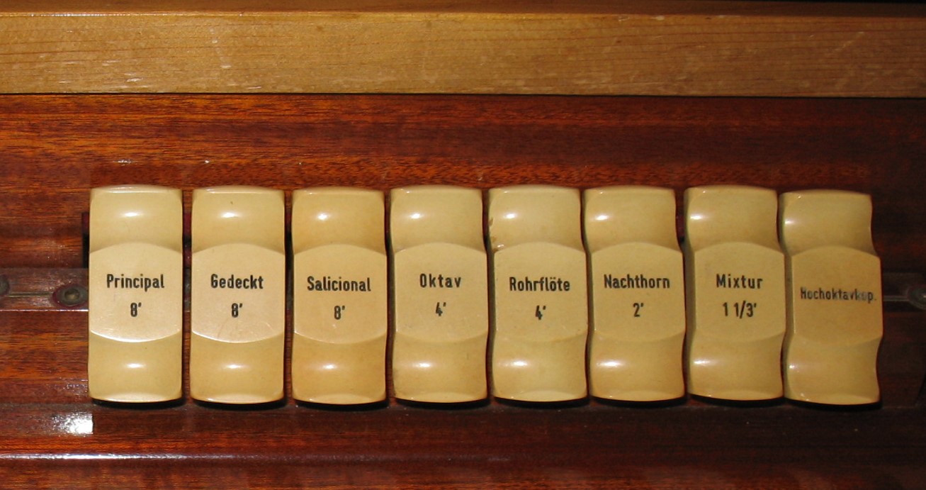 Die Registerwippen sind in einer Reihe über der Klaviatur angebracht.