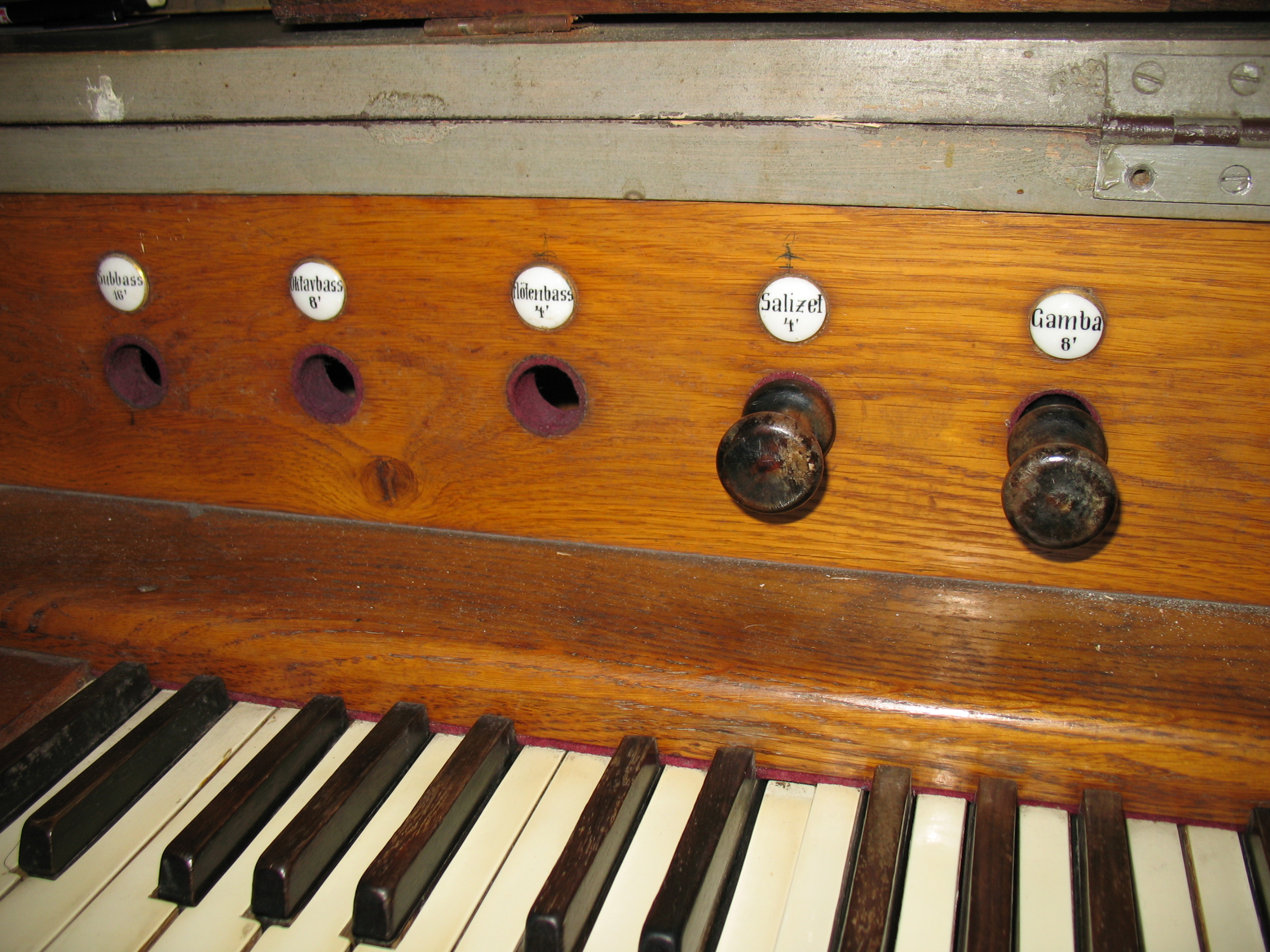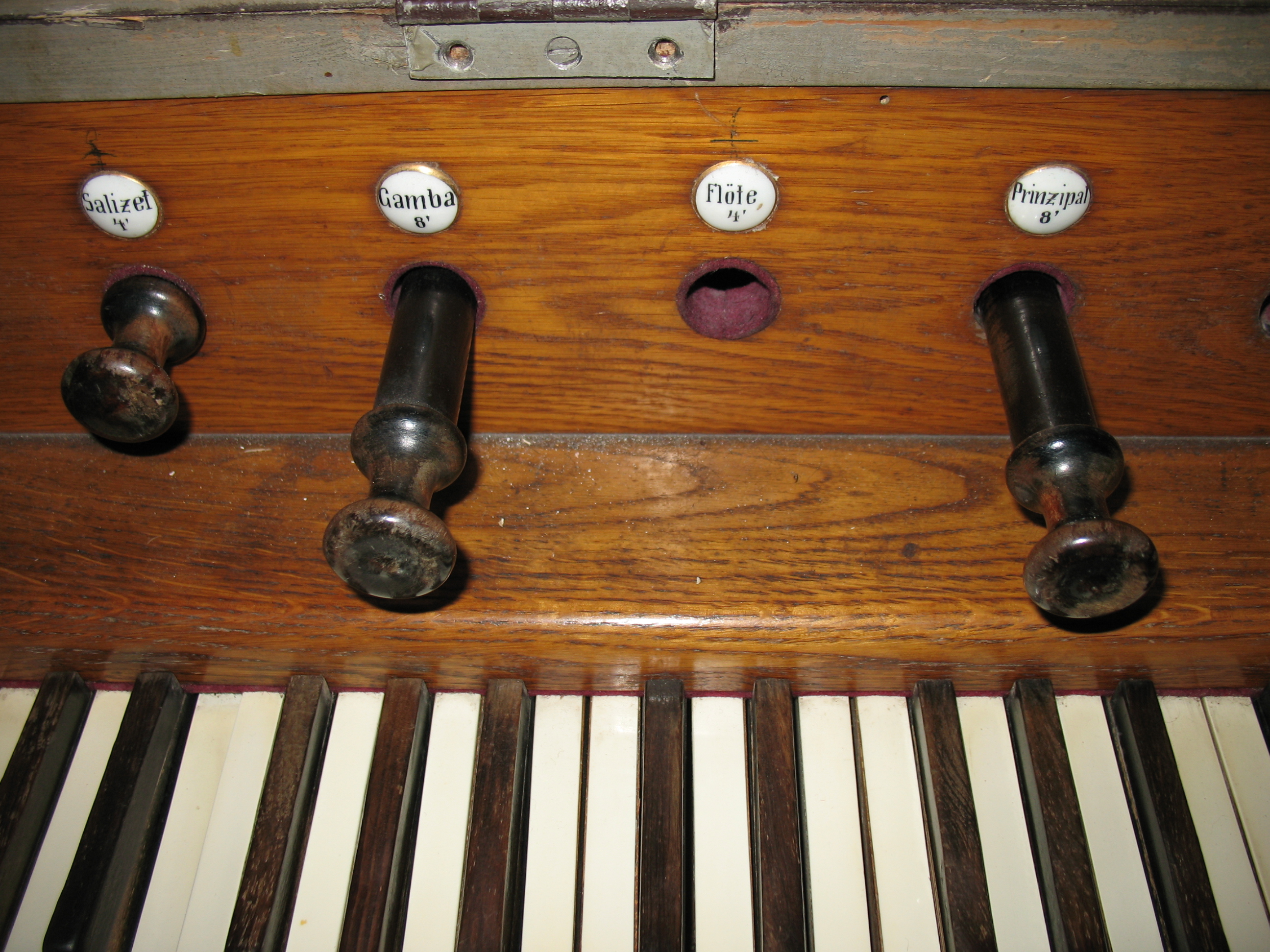 Die Registerzüge sind in einer Reihe über der Klaviatur angebracht.