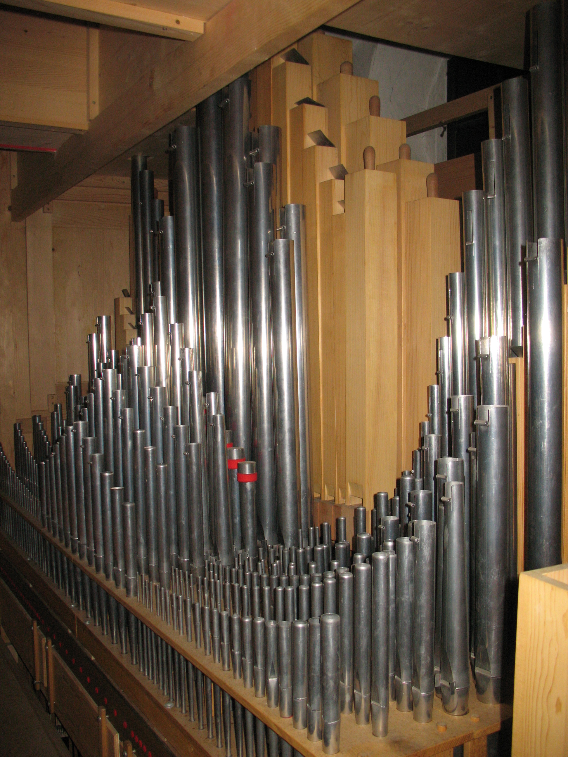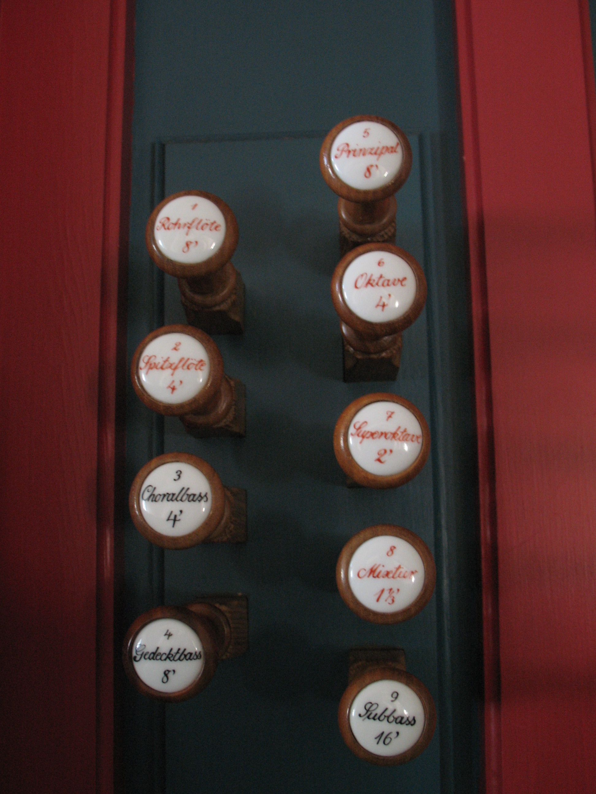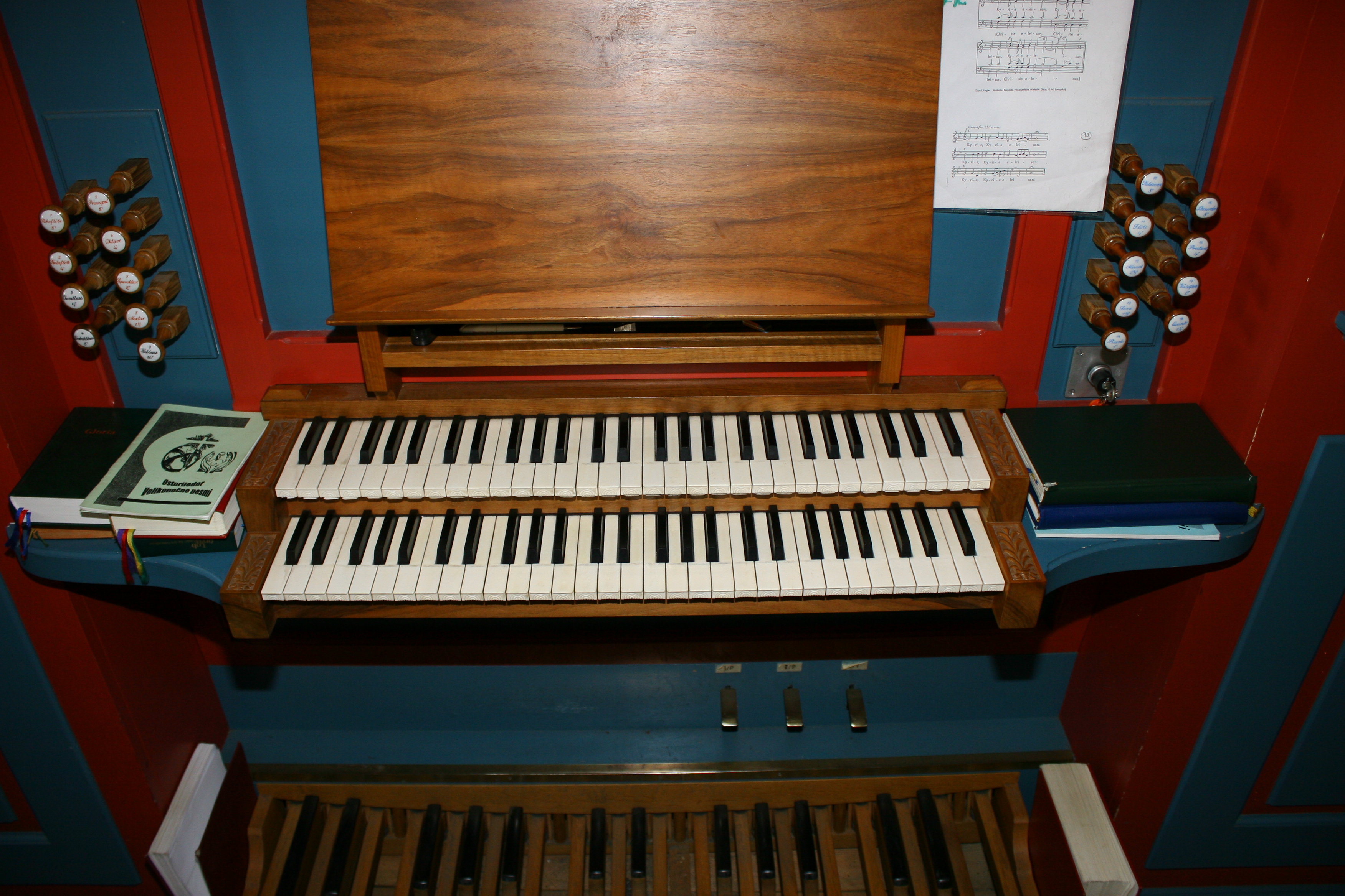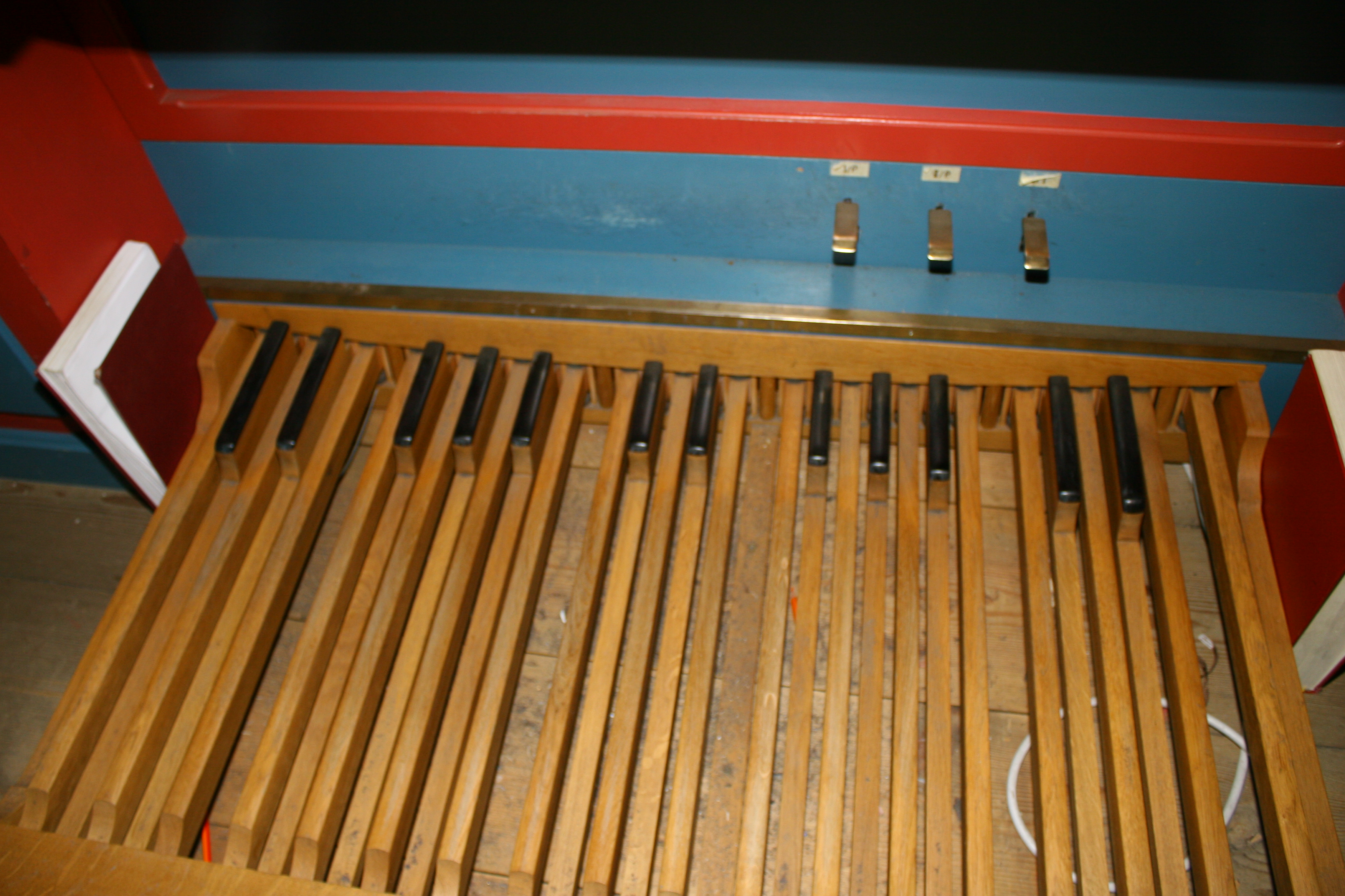 | Spielhilfen | Die Pedalkoppel ist als Tritt über der Pedalklaviatur ausgeführt |
