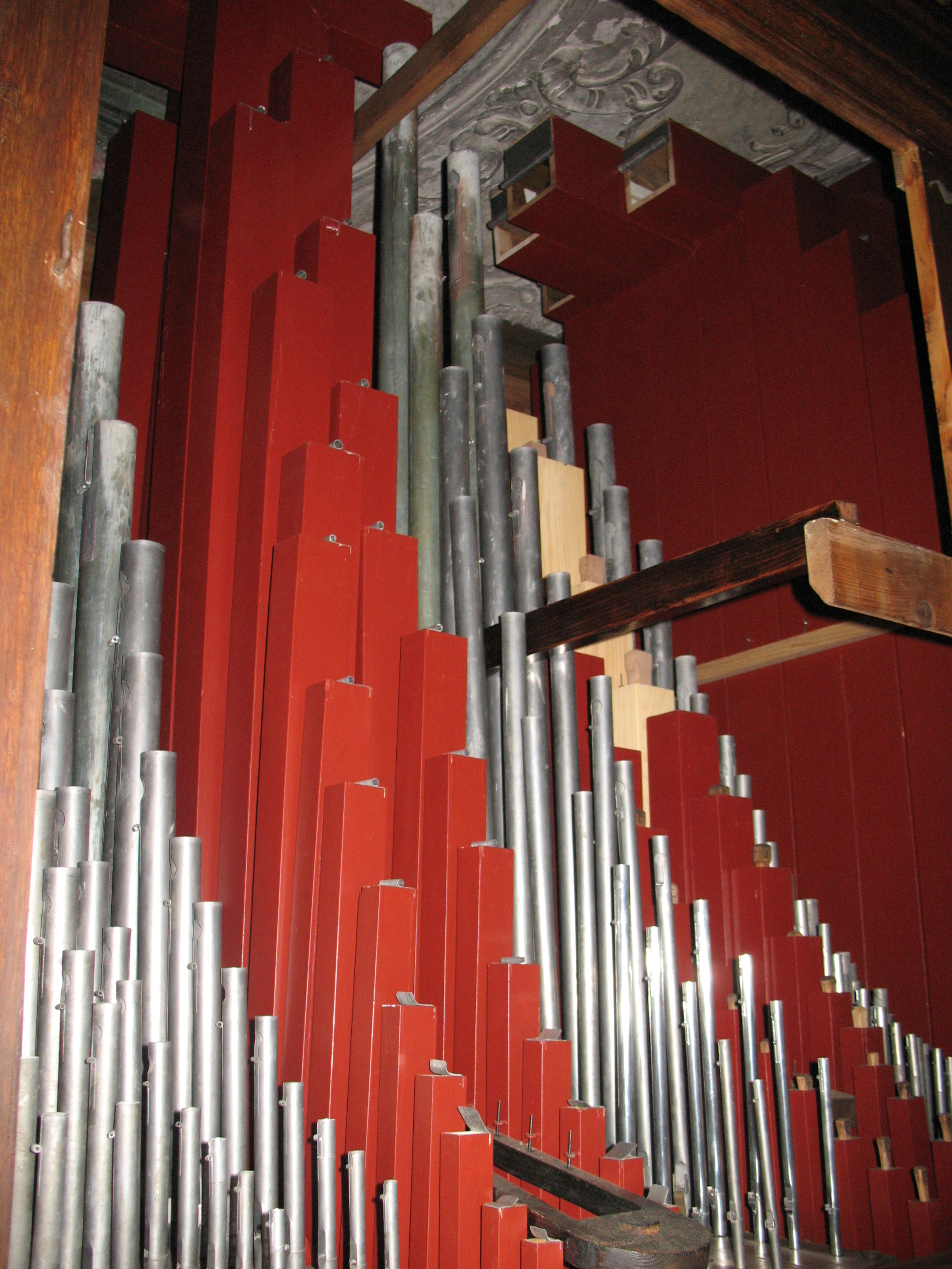 Prospekt "Rückpositiv": stumme Pfeifen in 4'-Länge (?)