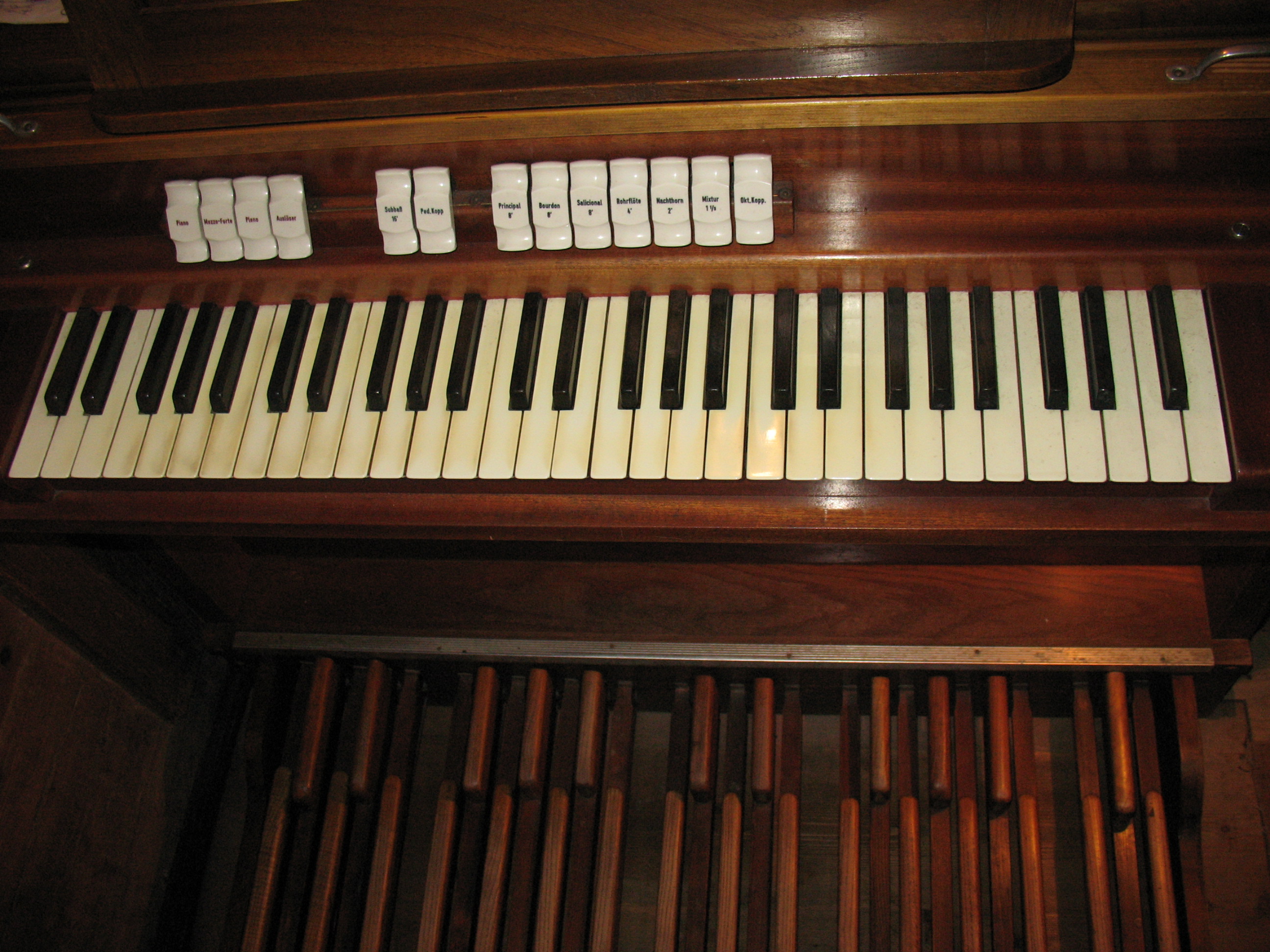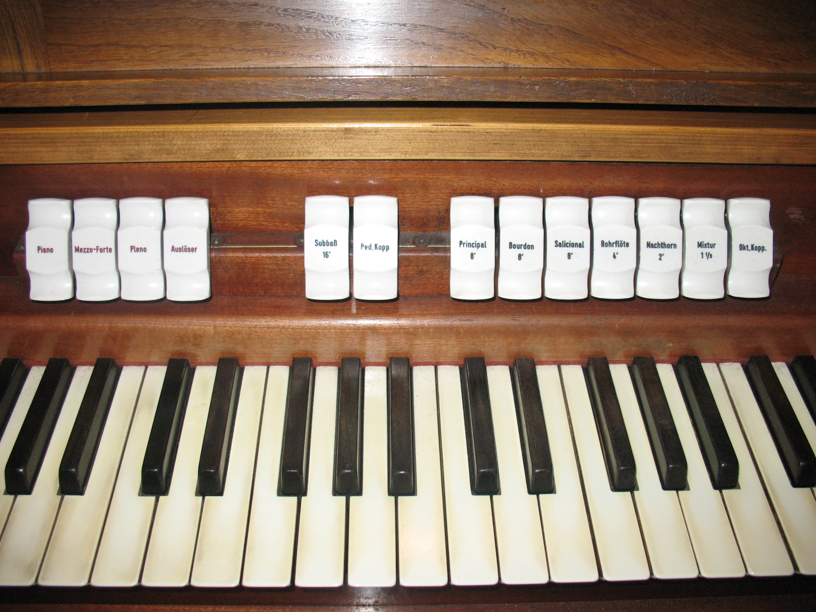 Die Registerwippen sind in einer Reihe über der Klaviatur angebracht.