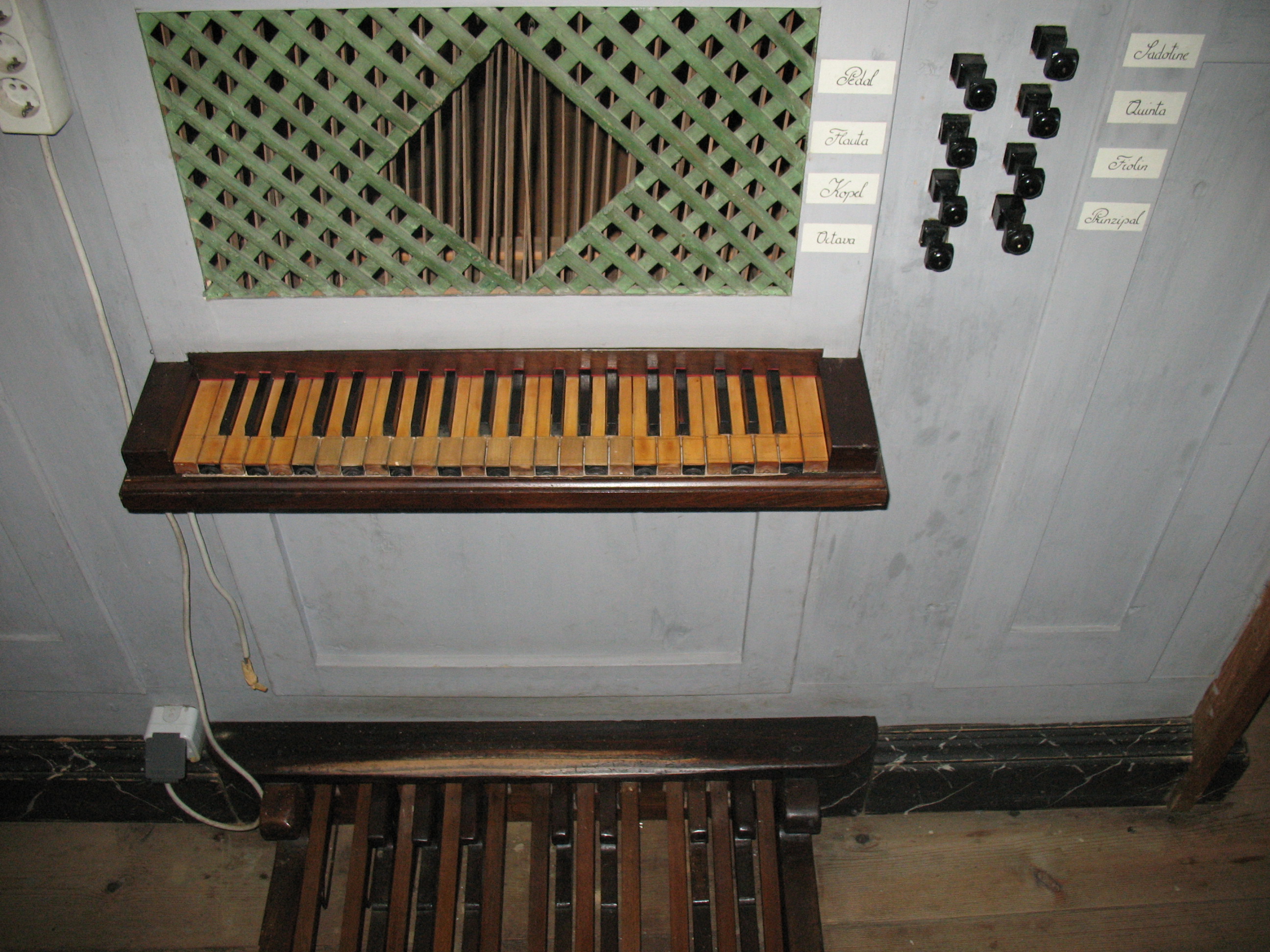 Die Klaviaturen sind an der Orgelrückwand angebracht.