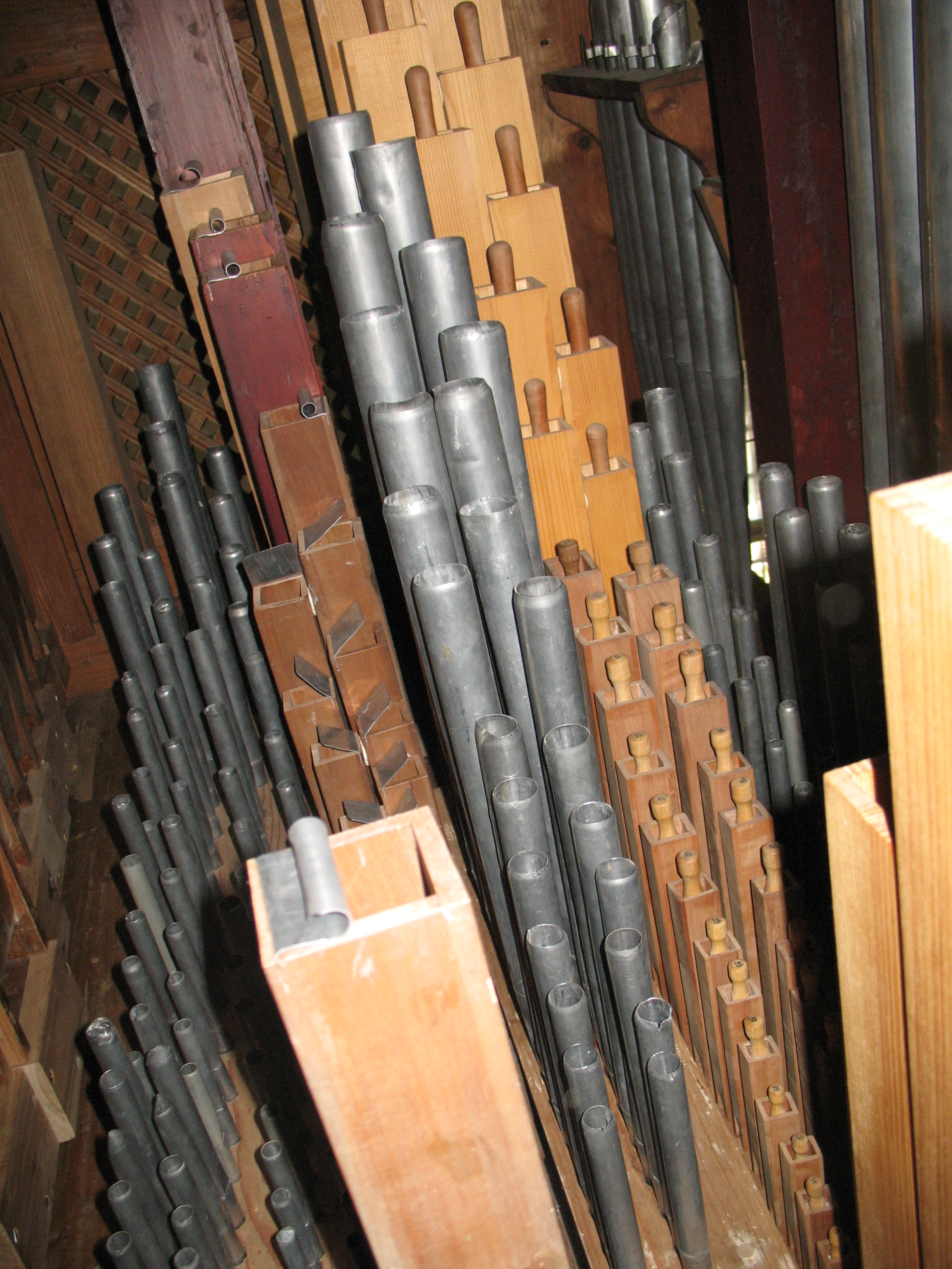 Das Pfeifenmaterial stammt zum Großteil aus dem 20. Jhdt. (Holzpfeifen haben geschraubte Vorschläge)