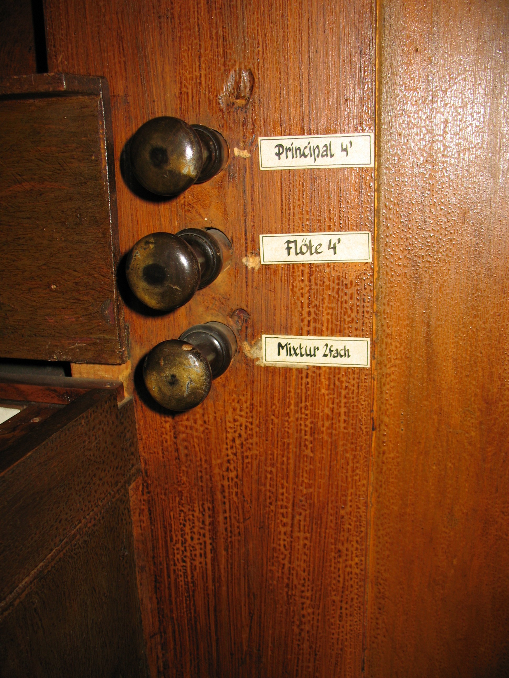 rechts: Principal 4', Flöte 4', Mixtur 2-fach