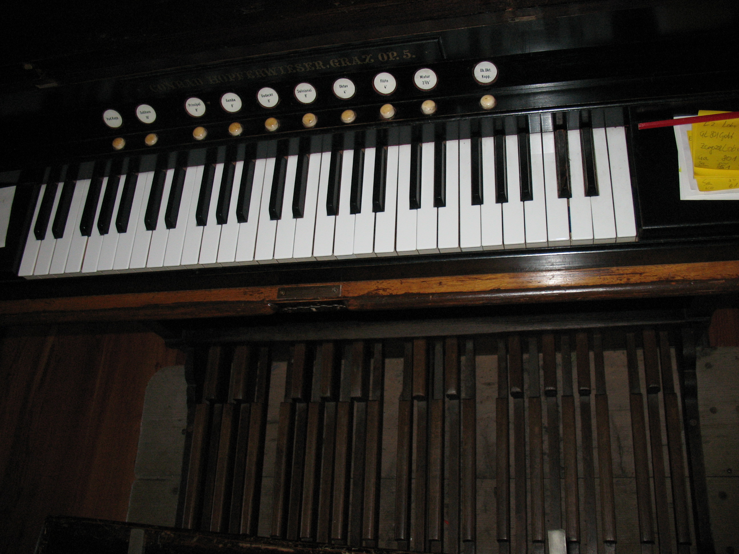 Die Orgel wurde im Jahre 1896 von Conrad Hopferwieser gebaut. Über der Klaviatur befindet sich ein längliches Holzschild: