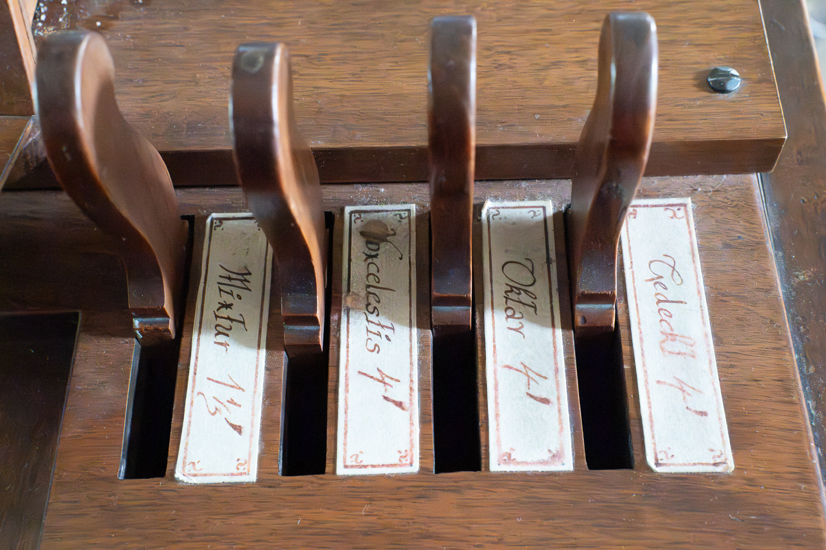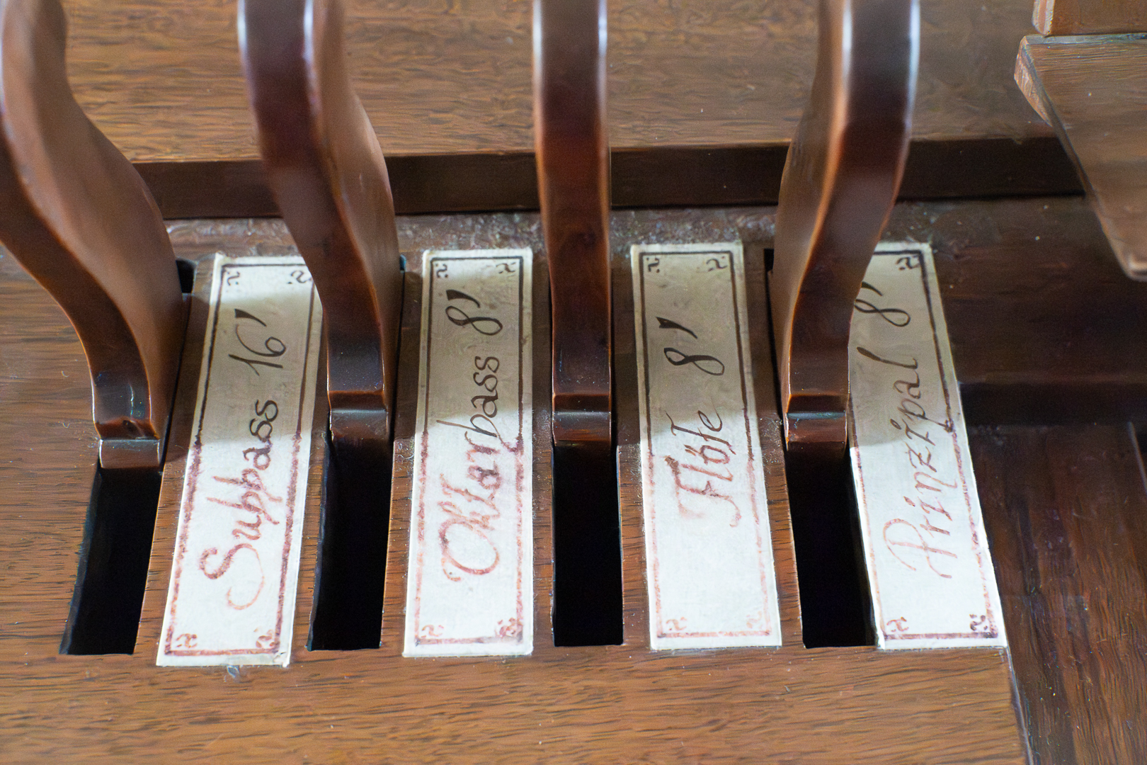 Prospekt; ein Feld mit 23 Pfeifen Prinzipal 8'