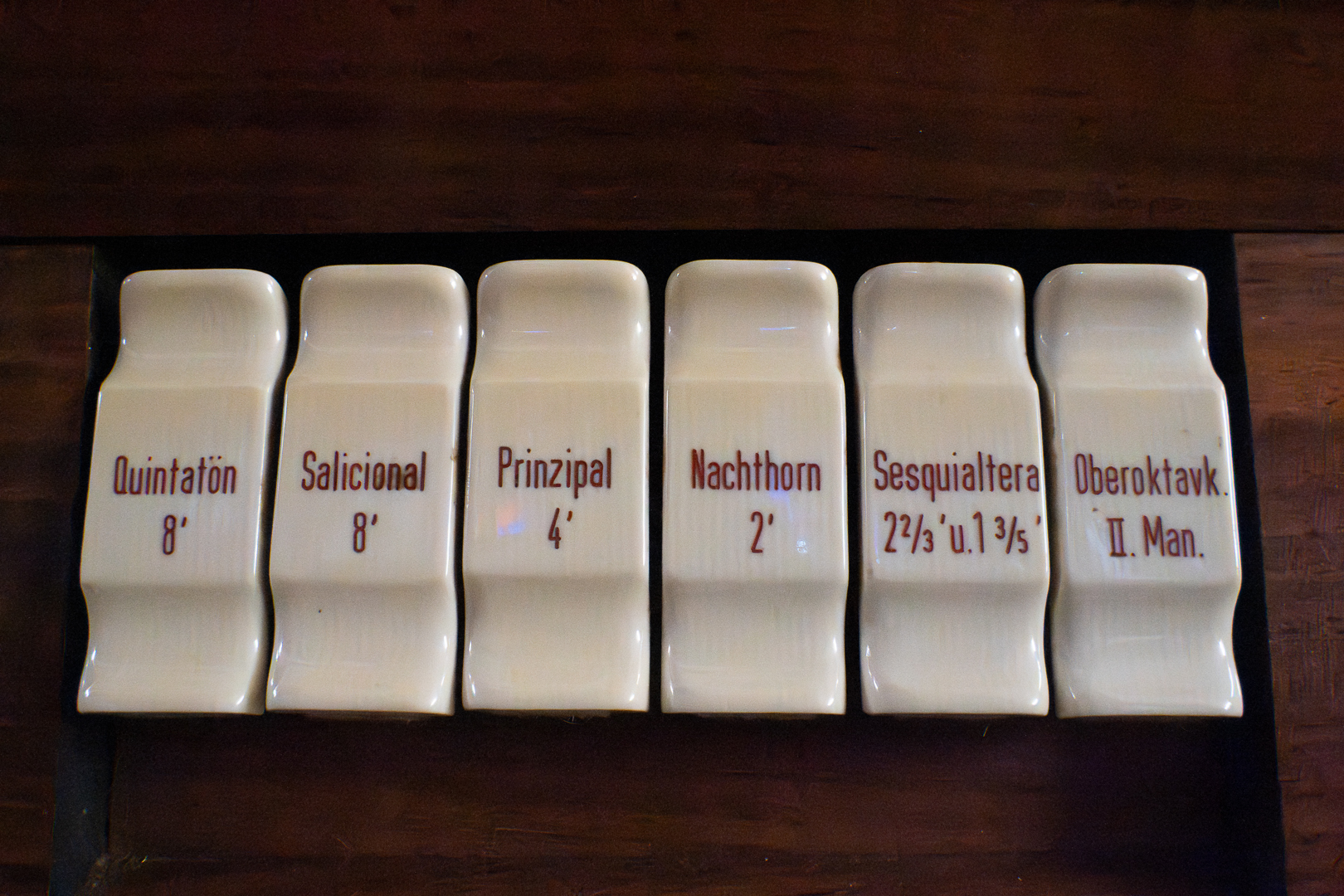 Prospekt: ein Feld mit 35 Pfeifen Principal 8'