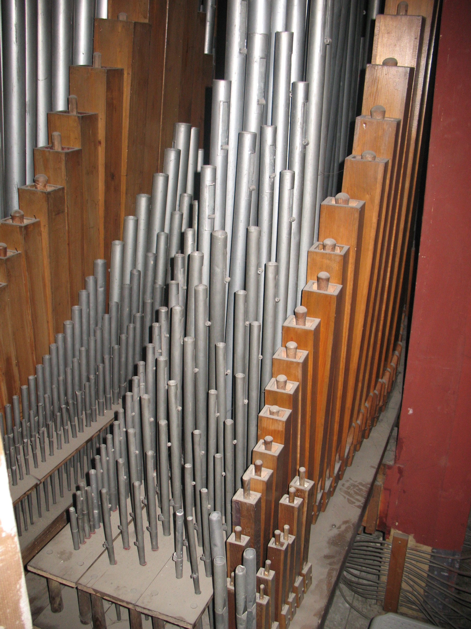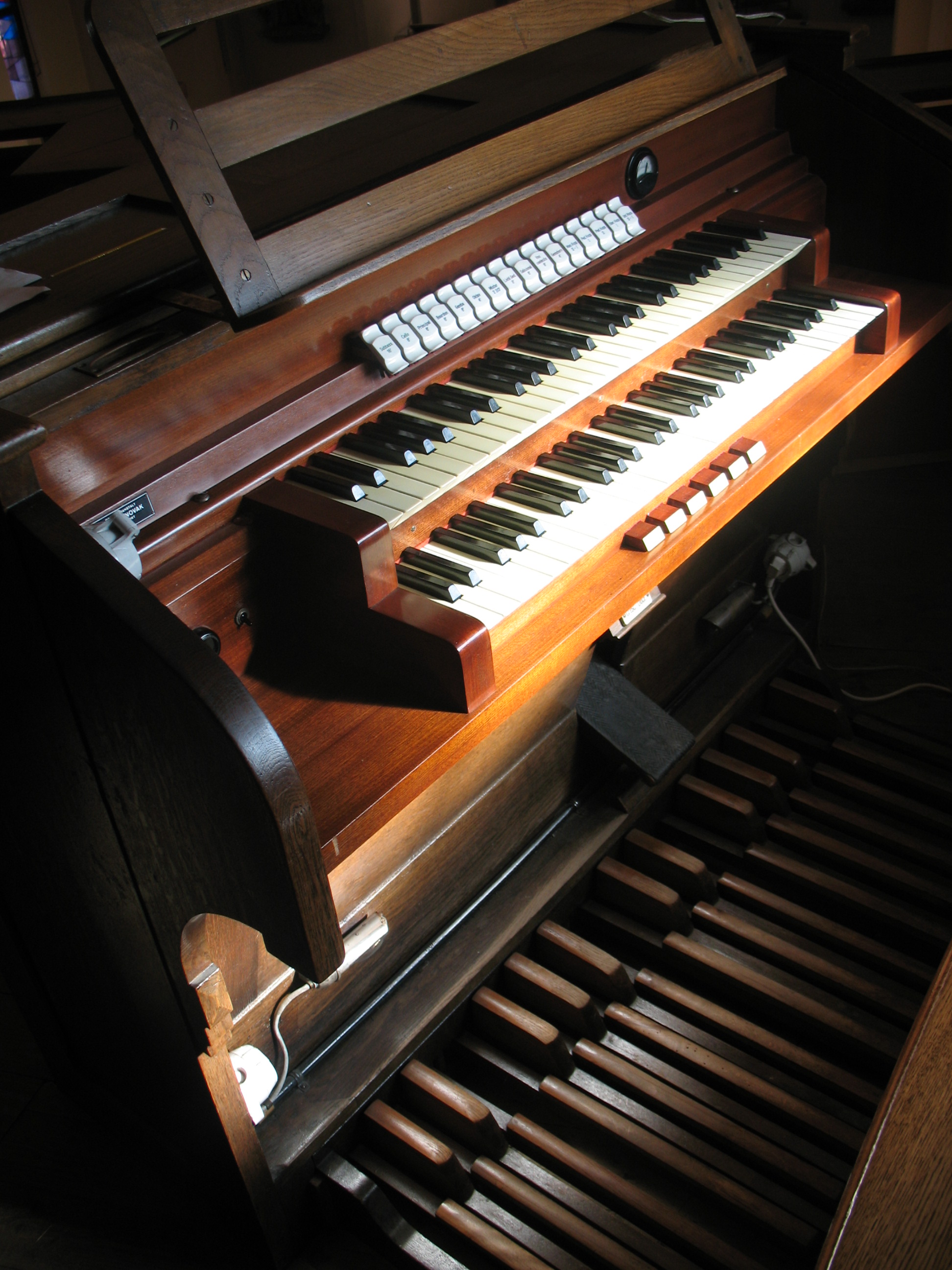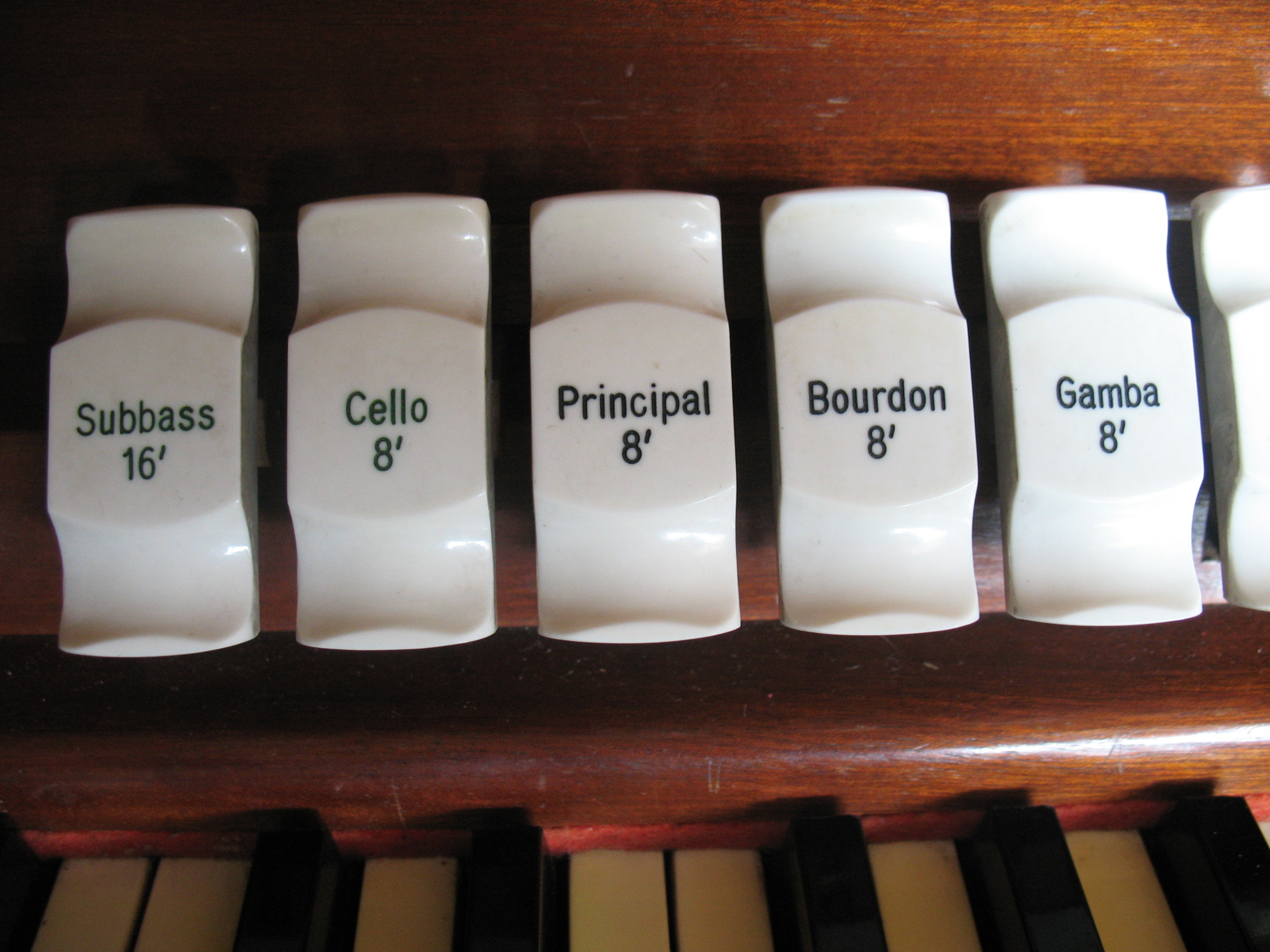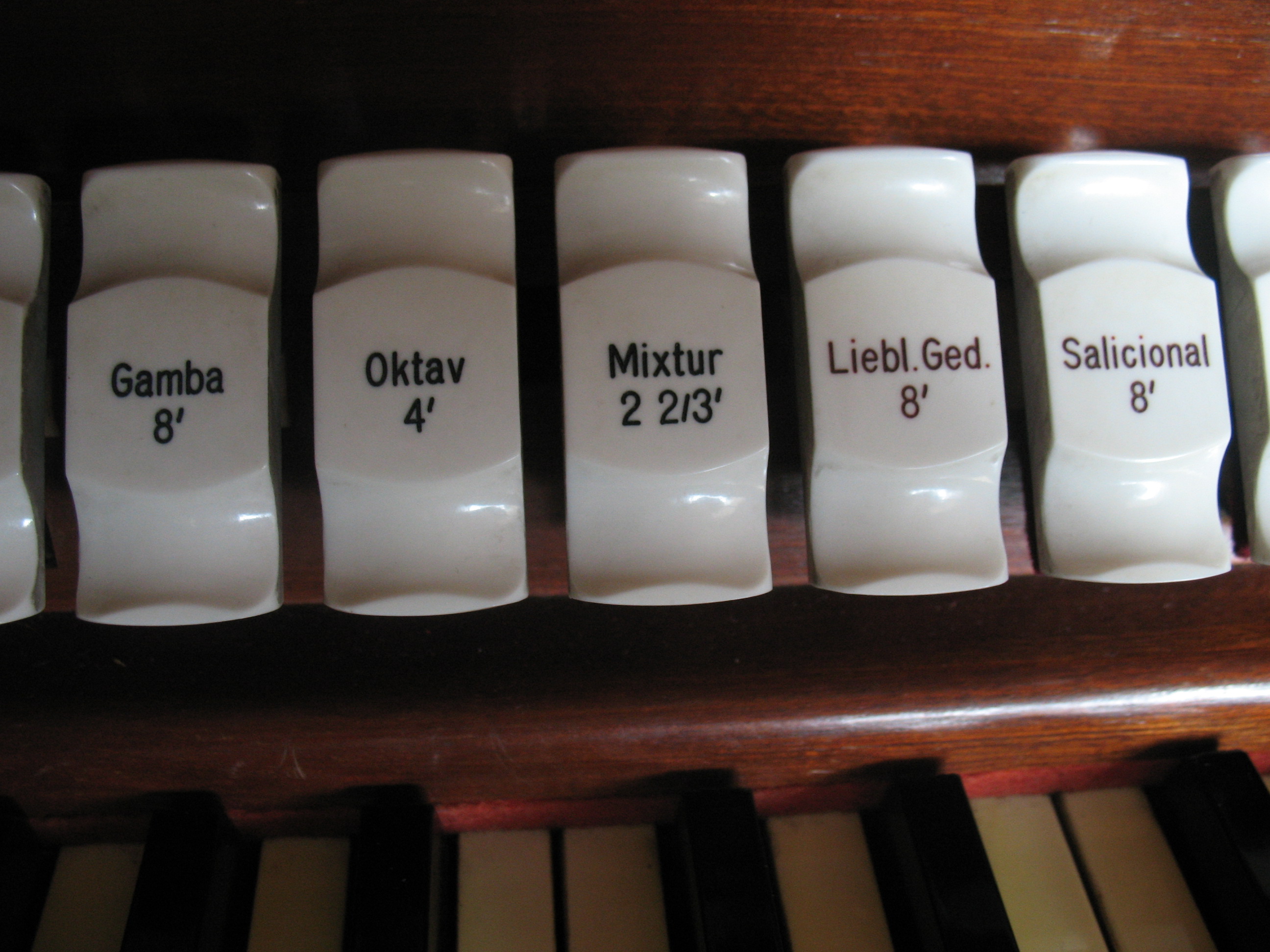 | Spielhilfen | Die Koppeln sind als Registerwippen über der Manualklaviatur ausgeführt. Die sonstigen Spielhilfen sind als Taster unter der Manualklaviatur ausgeführt. Crescendo ist als Tritt ausgeführt. |