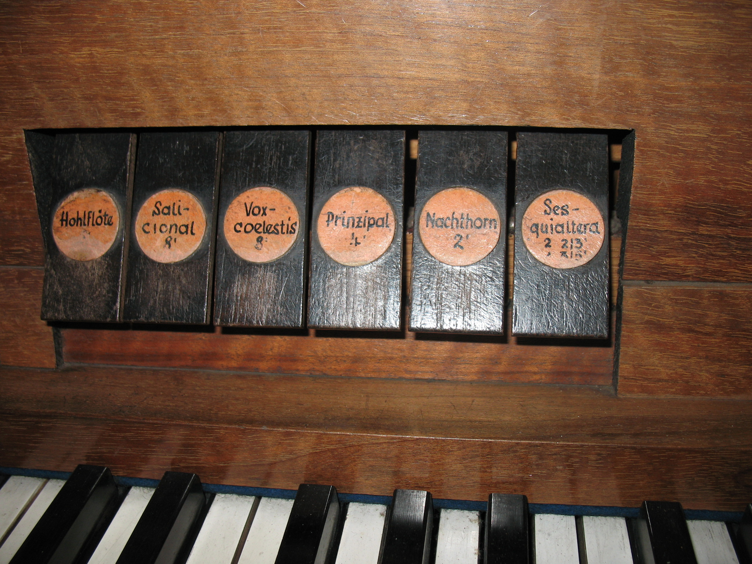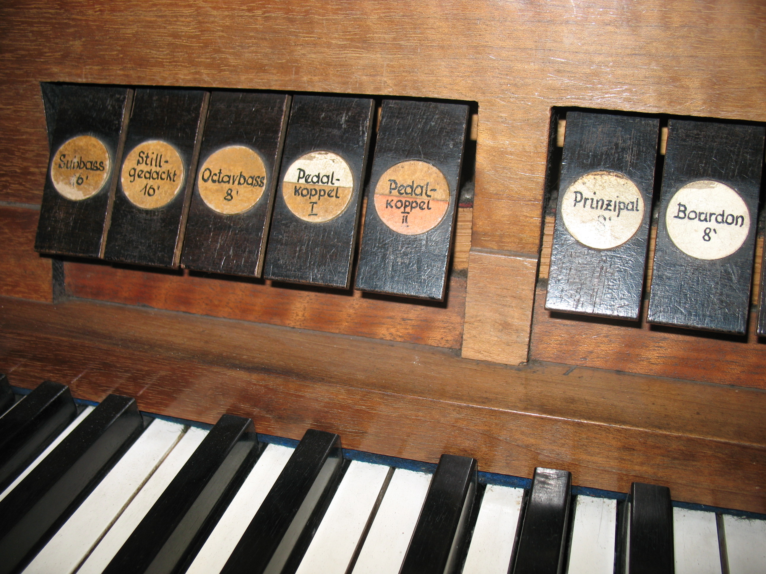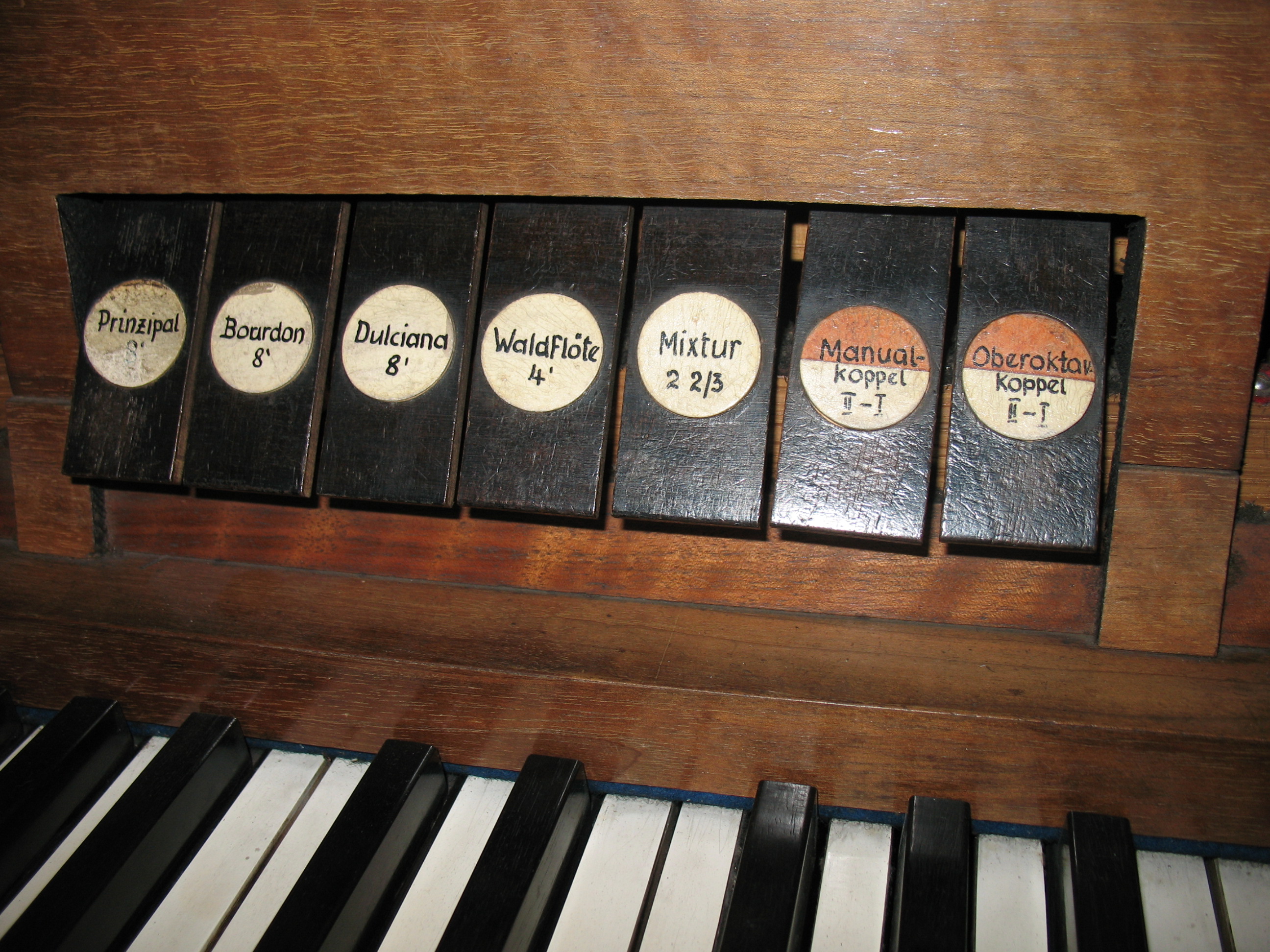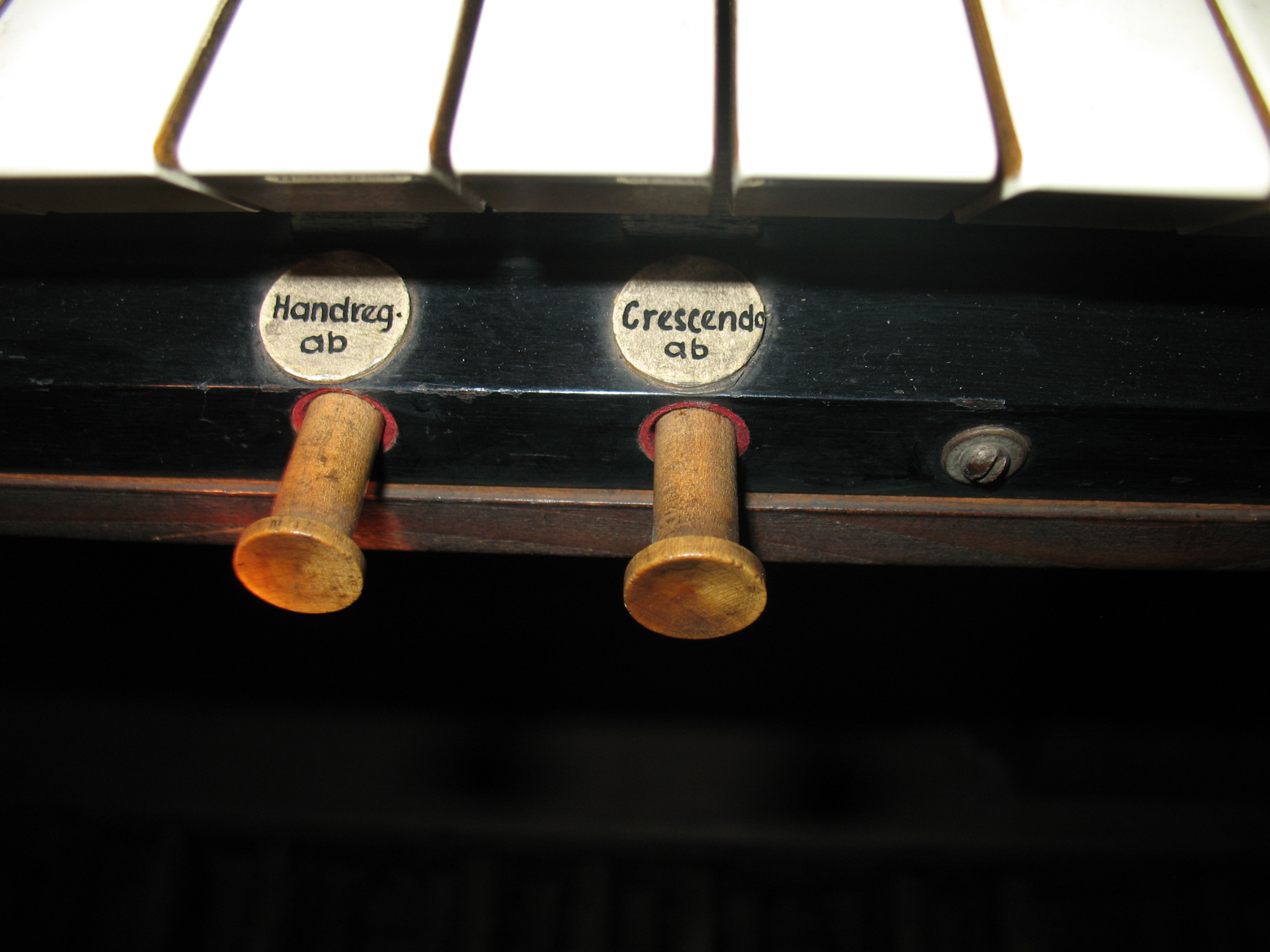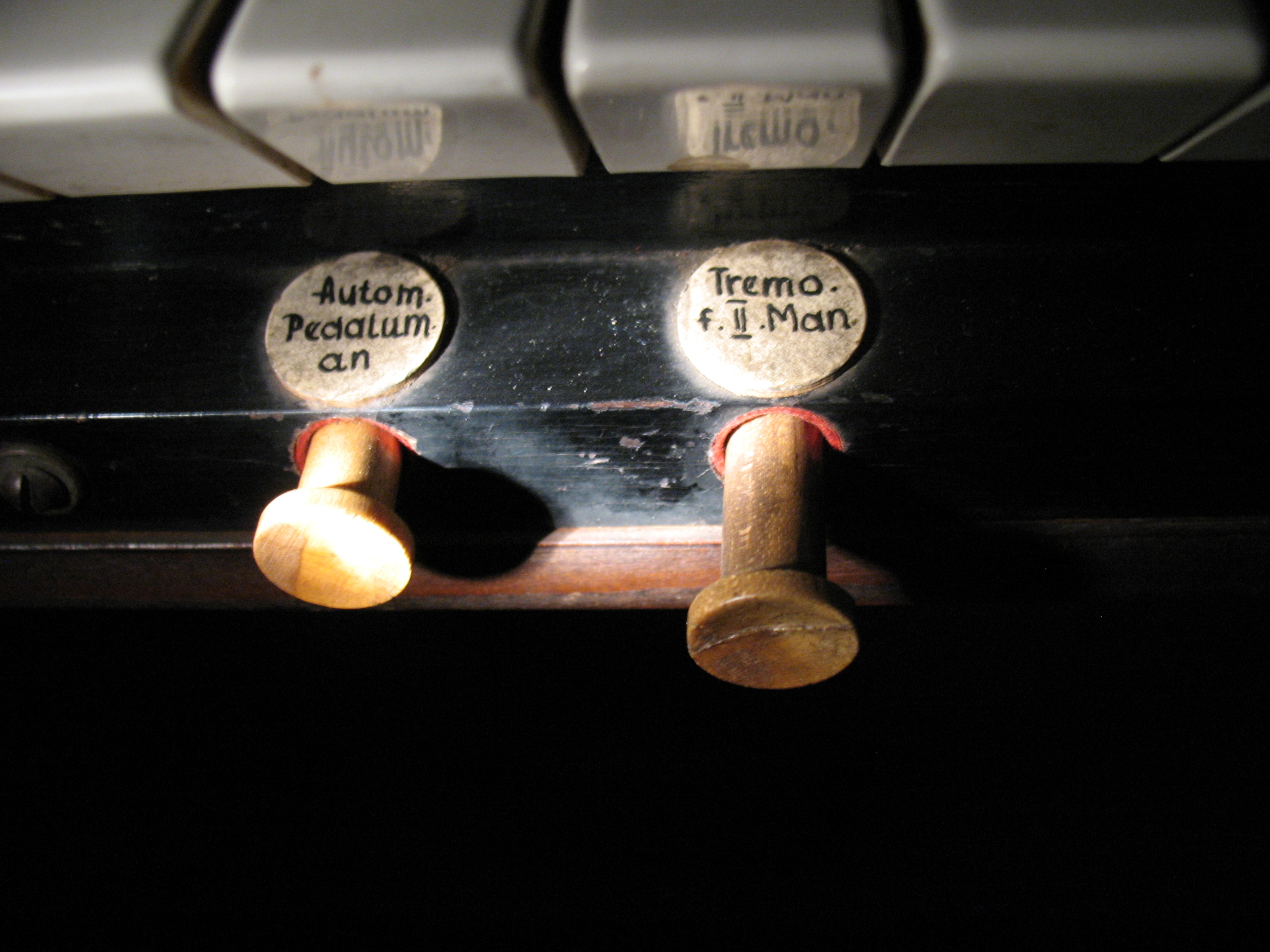 | Spielhilfen | Die Koppeln sind als Wippen über der Klaviatur ausgeführt. |