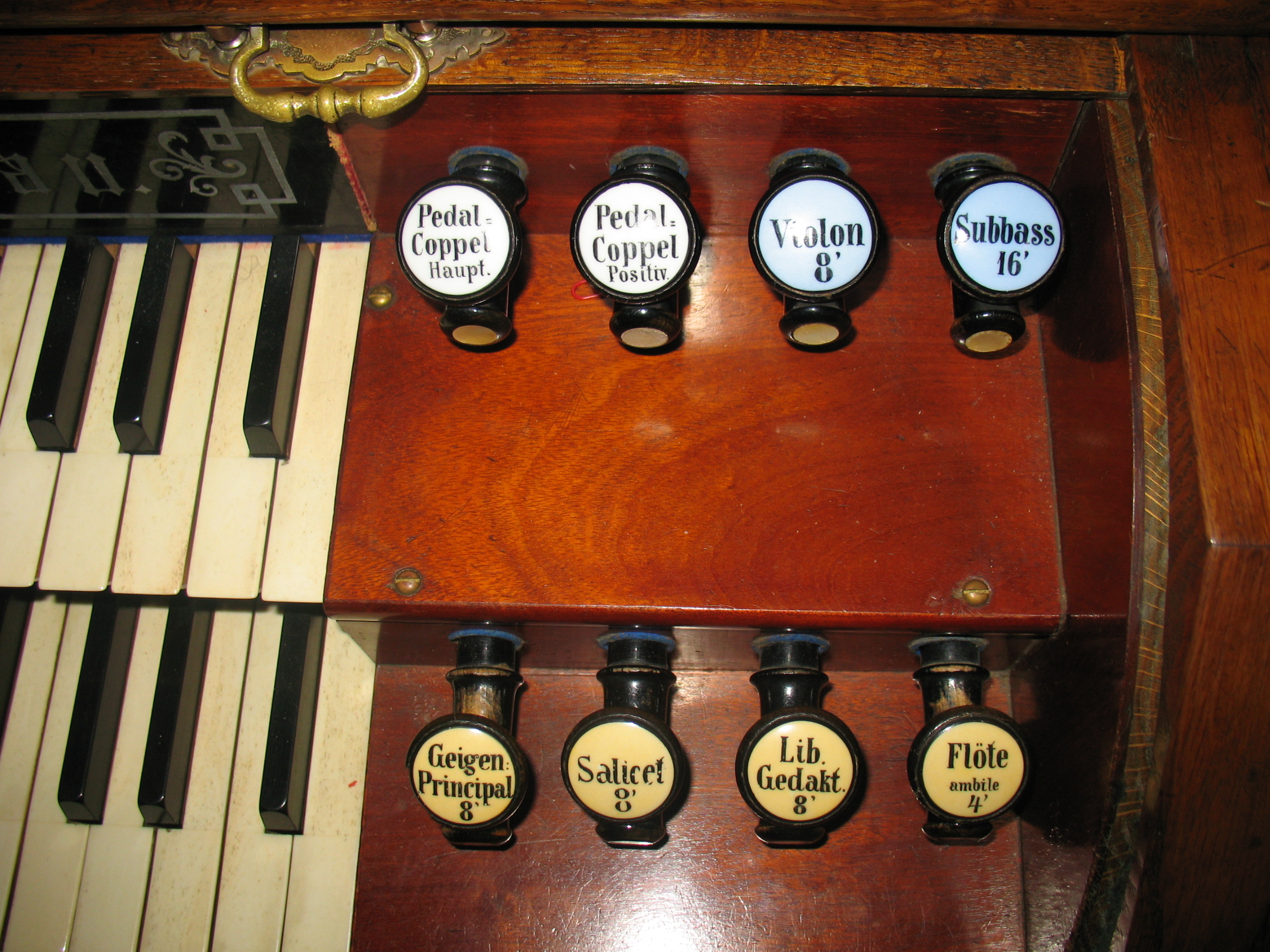 | Spielhilfen | Die Koppel sind als Registerzüge ausgeführt. |