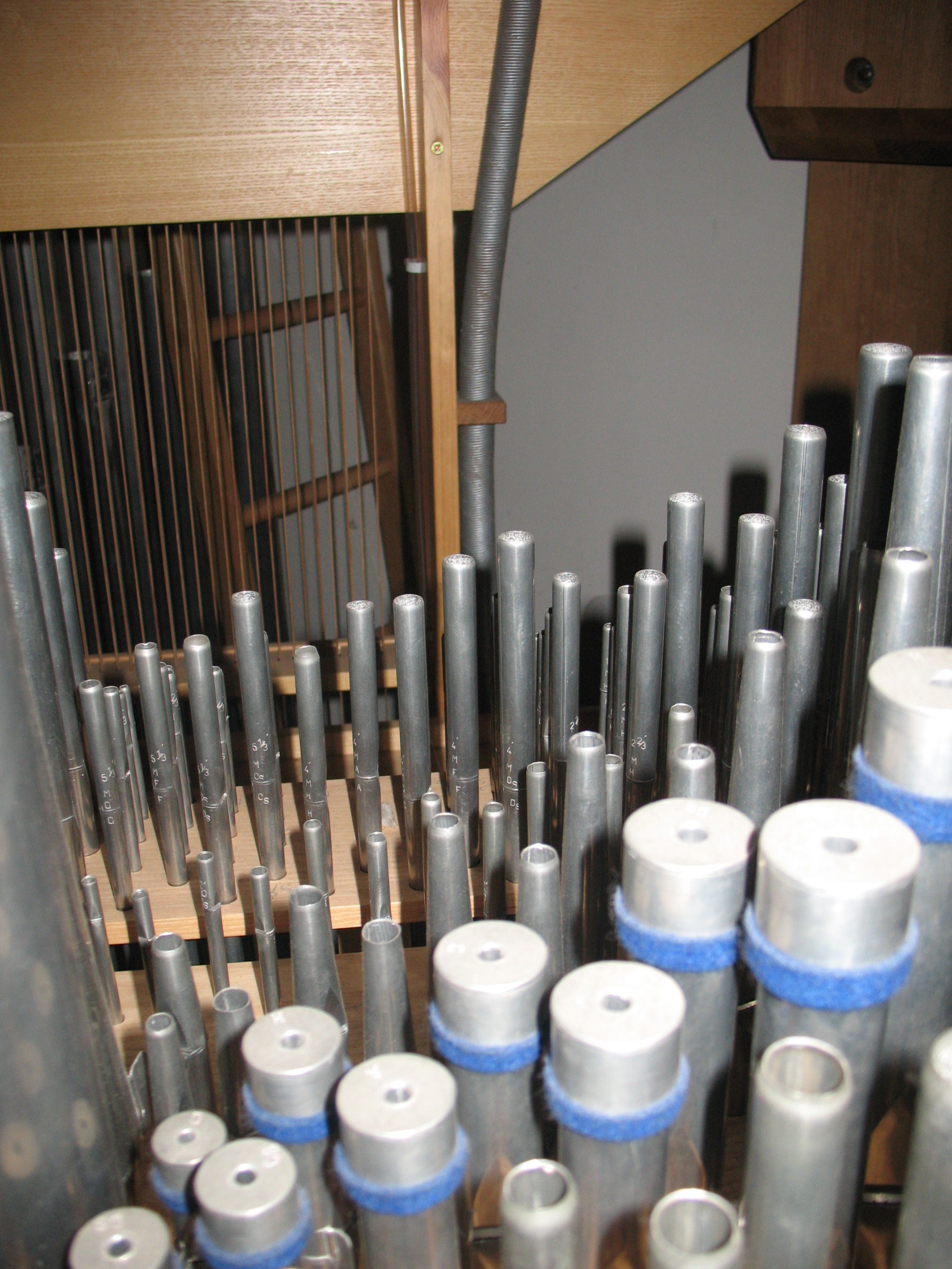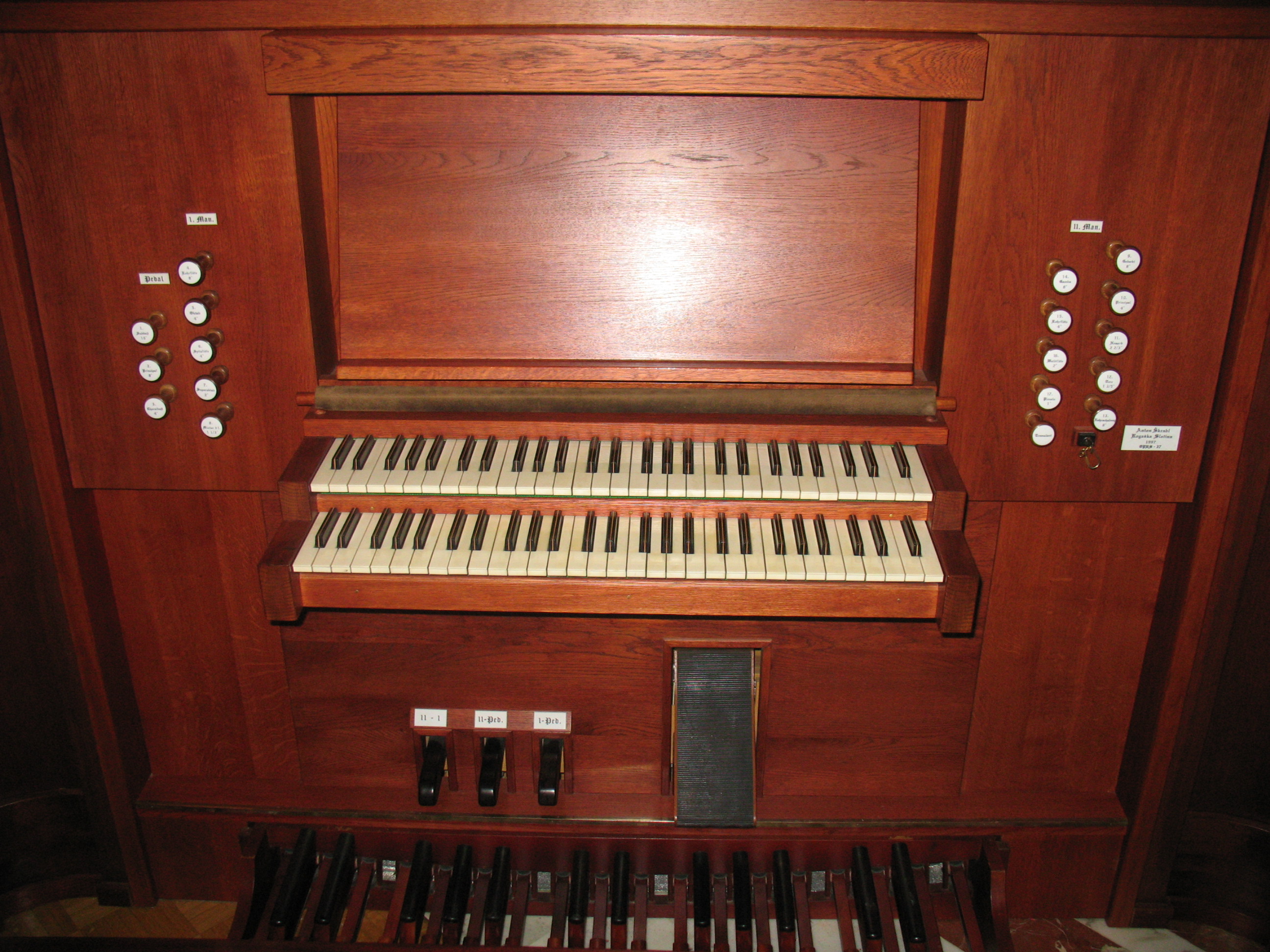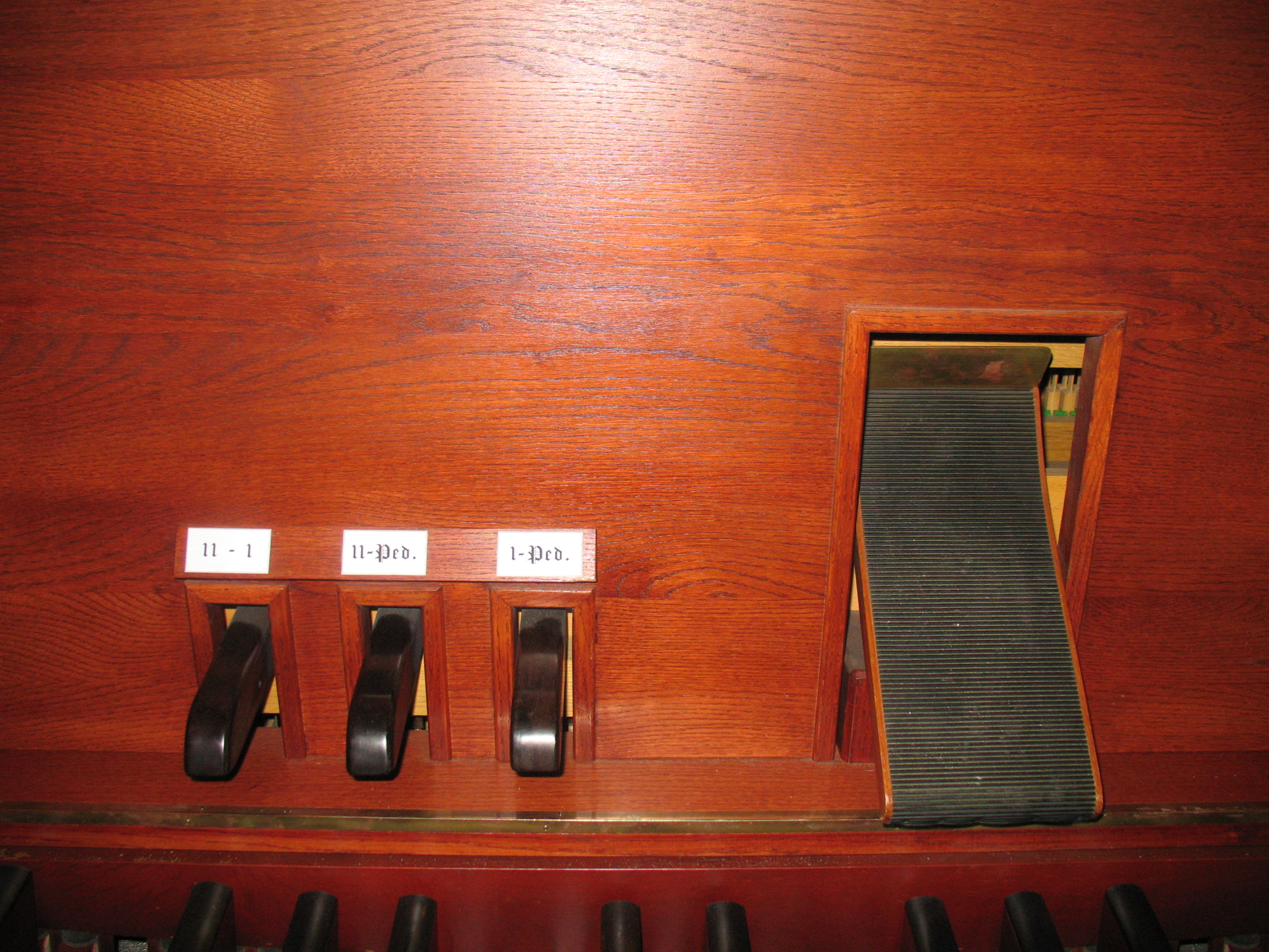 | Spielhilfen | Die Koppeln sind als Tritte über der Pedalklaviatur ausgeführt. Der Tremulant für das Schwellwerk ist als Registerzug ausgeführt. |