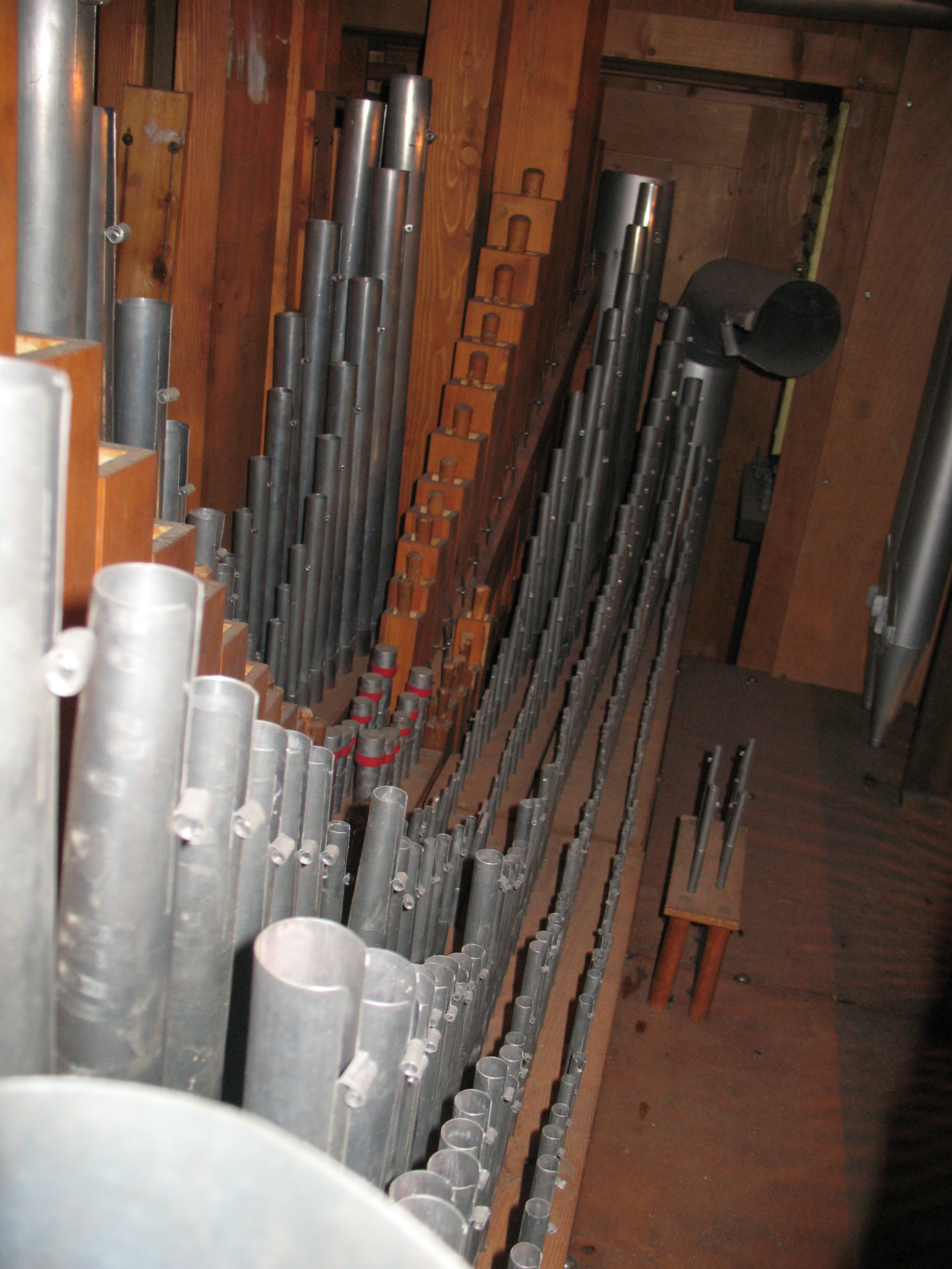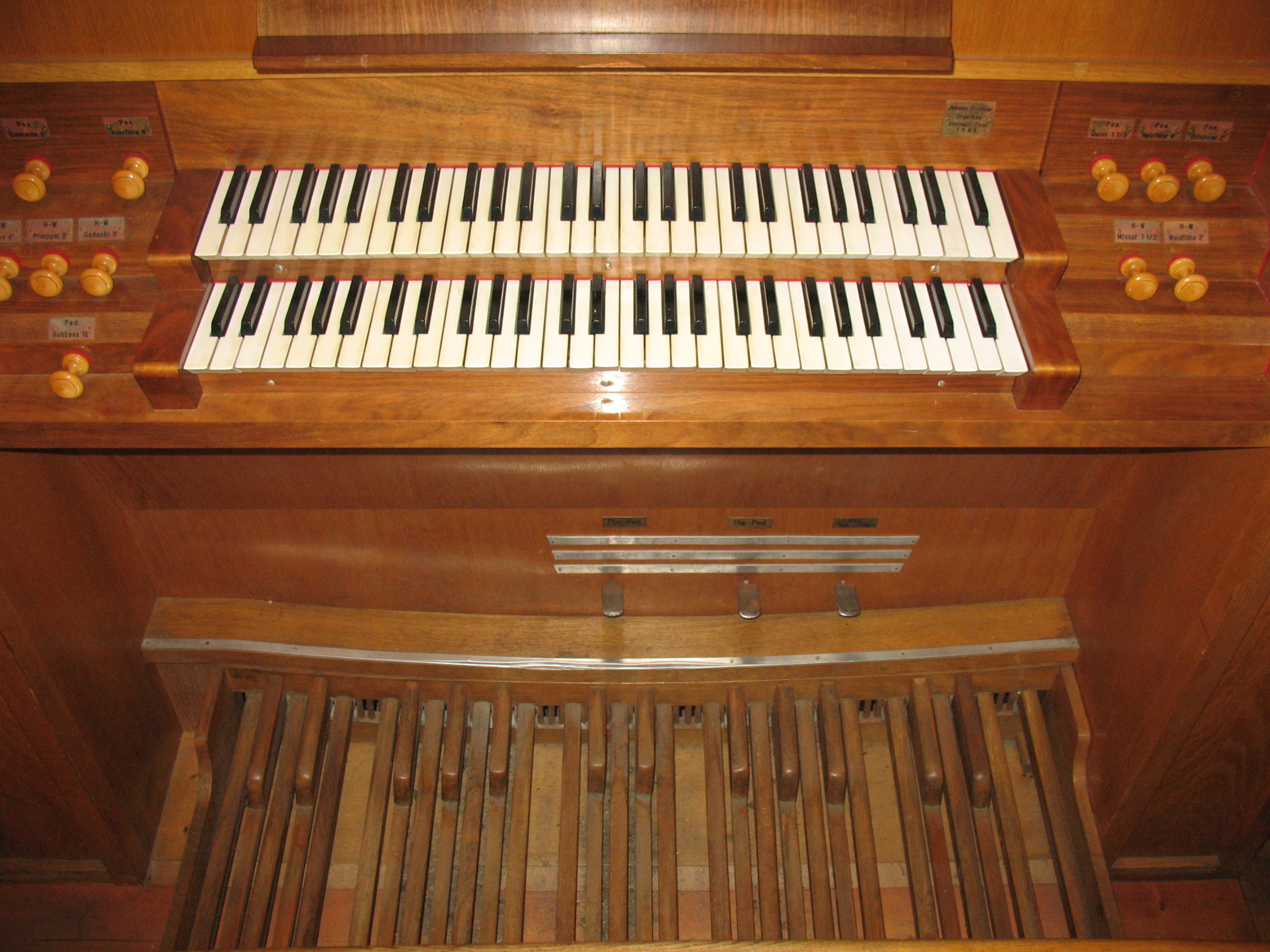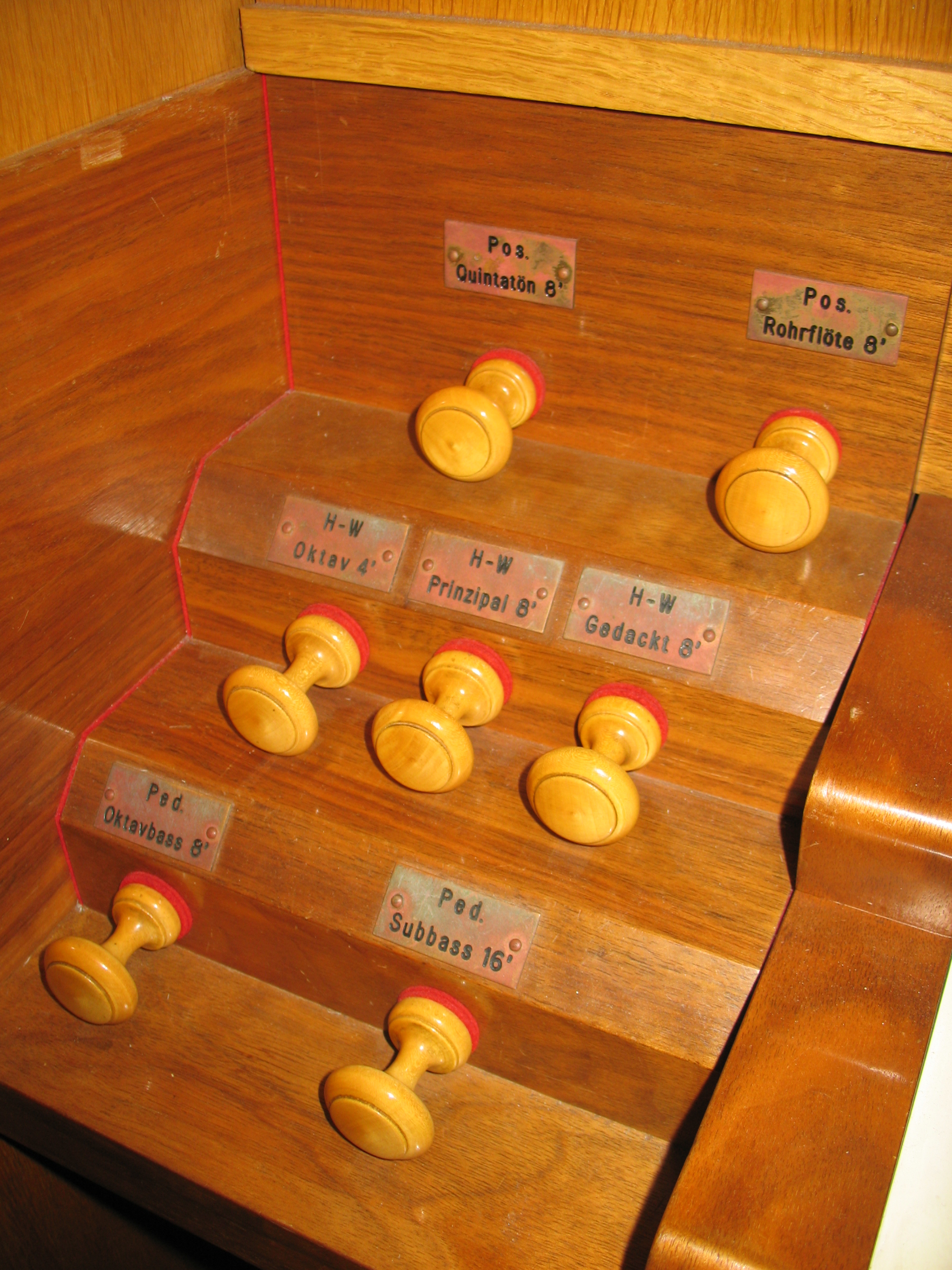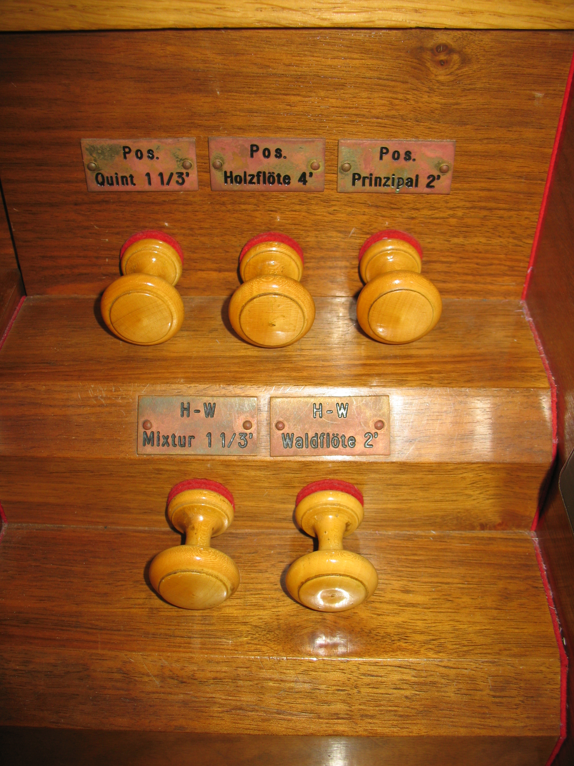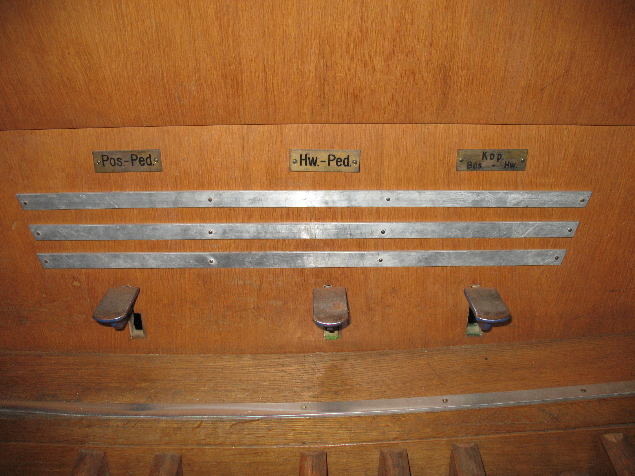 | Spielhilfen | Die Koppeln sind als Tritte zum Einrasten über der Pedalklaviatur ausgeführt. |