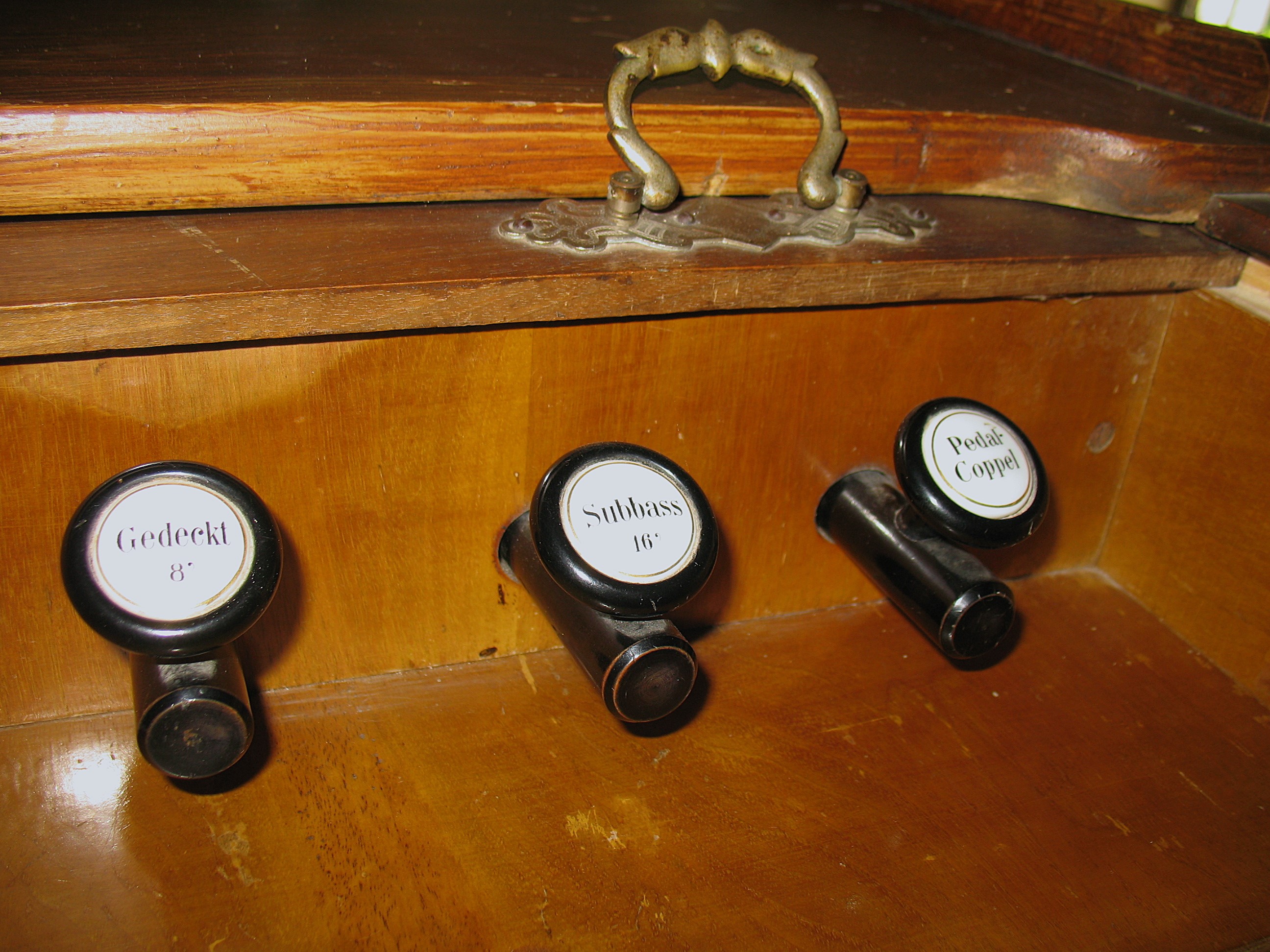 | Spielhilfen | Die Koppel ist als Registerzug ausgeführt. |