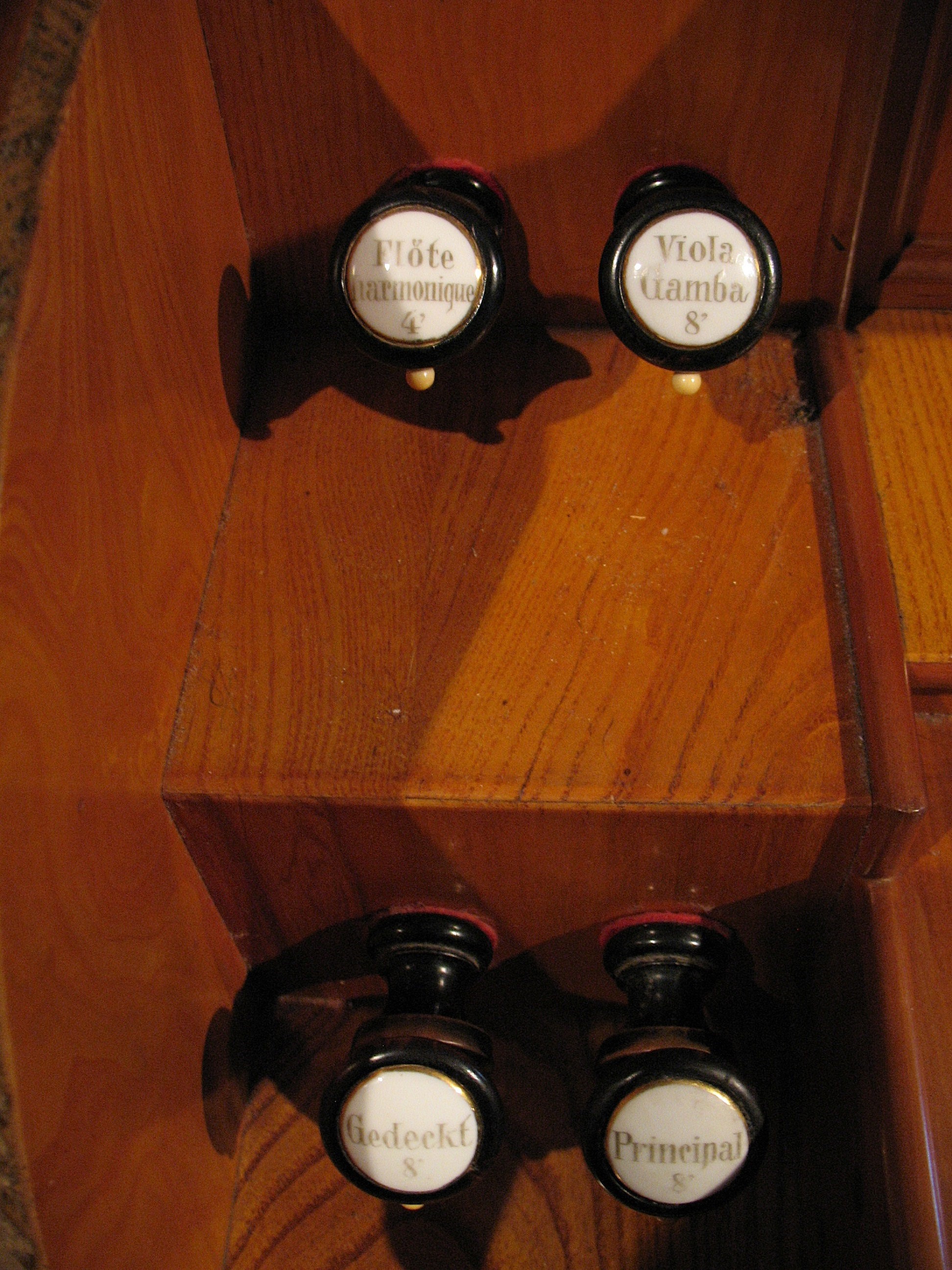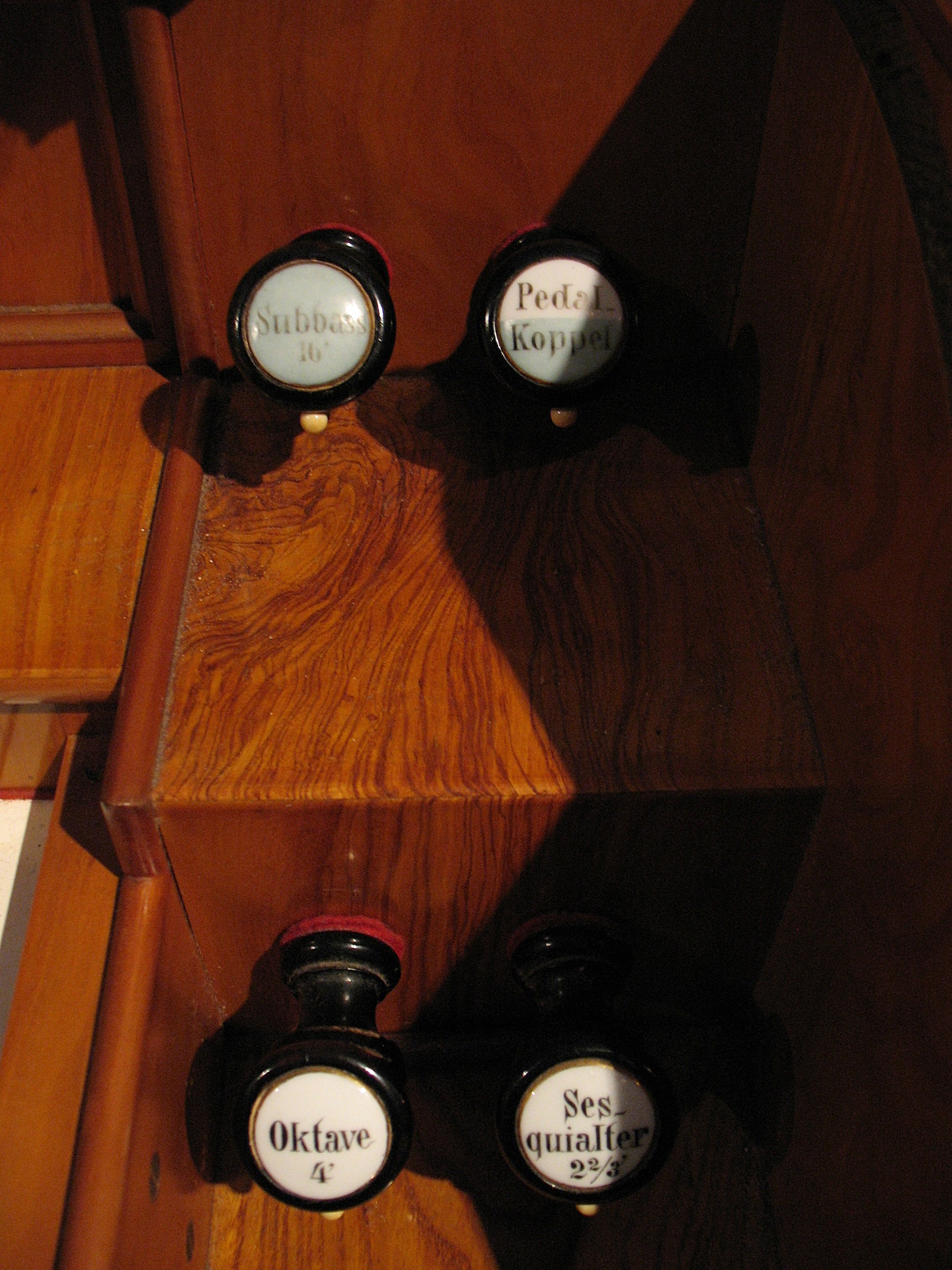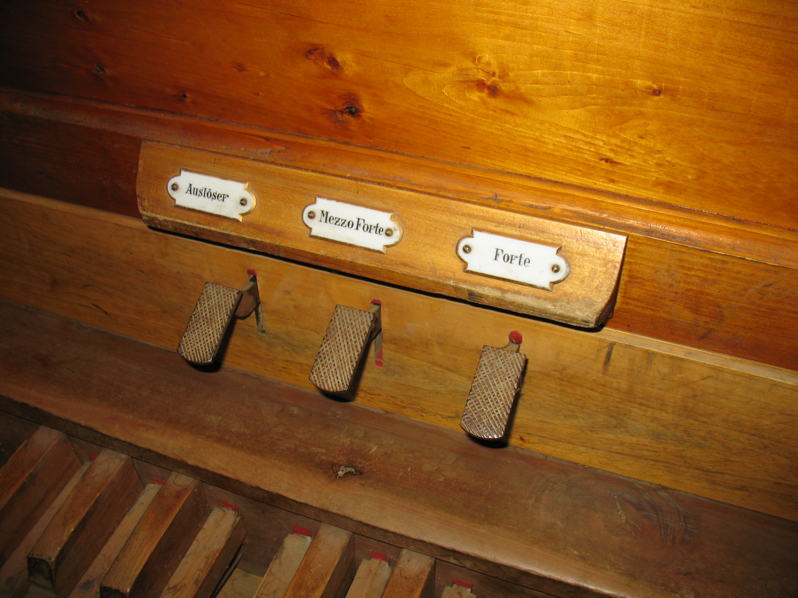 | Spielhilfen | Die festen Kombinationen sind als Tritt ausgeführt, die Pedalkoppel als Zug |